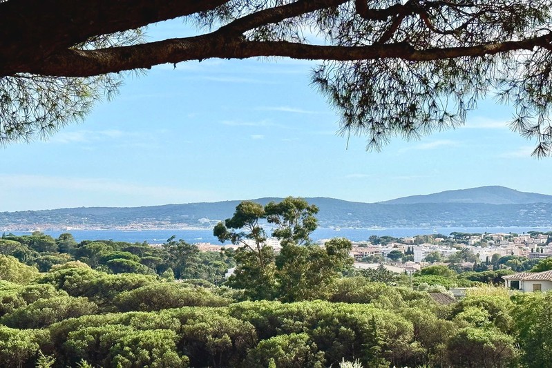 Sea view over the Gulf of Saint-Tropez, calm and green surroundings.