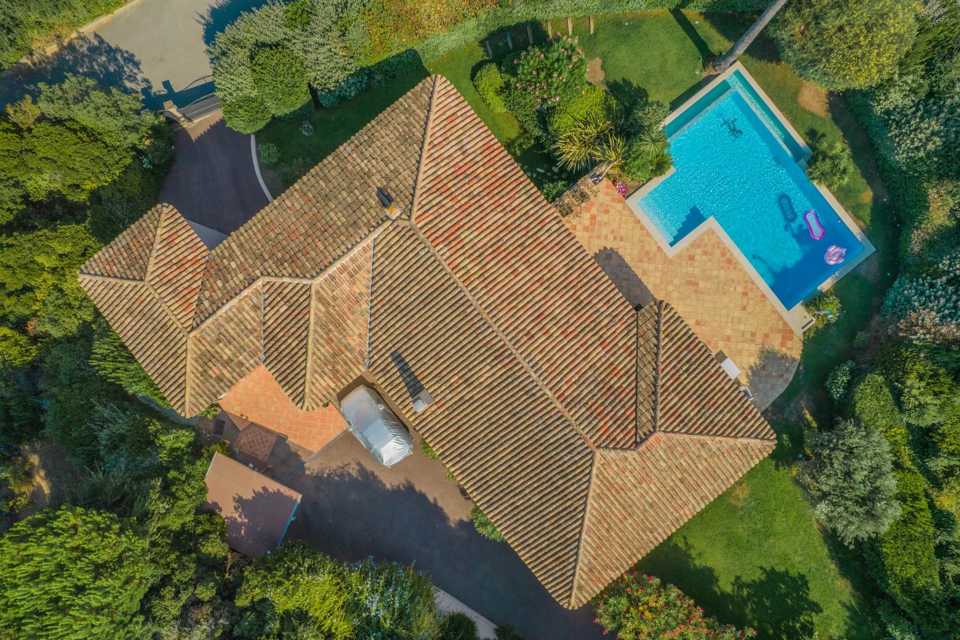 The villa also includes an independent studio, reversible air conditioning, electric shutters and gate, all completed by a carport and a double garage.