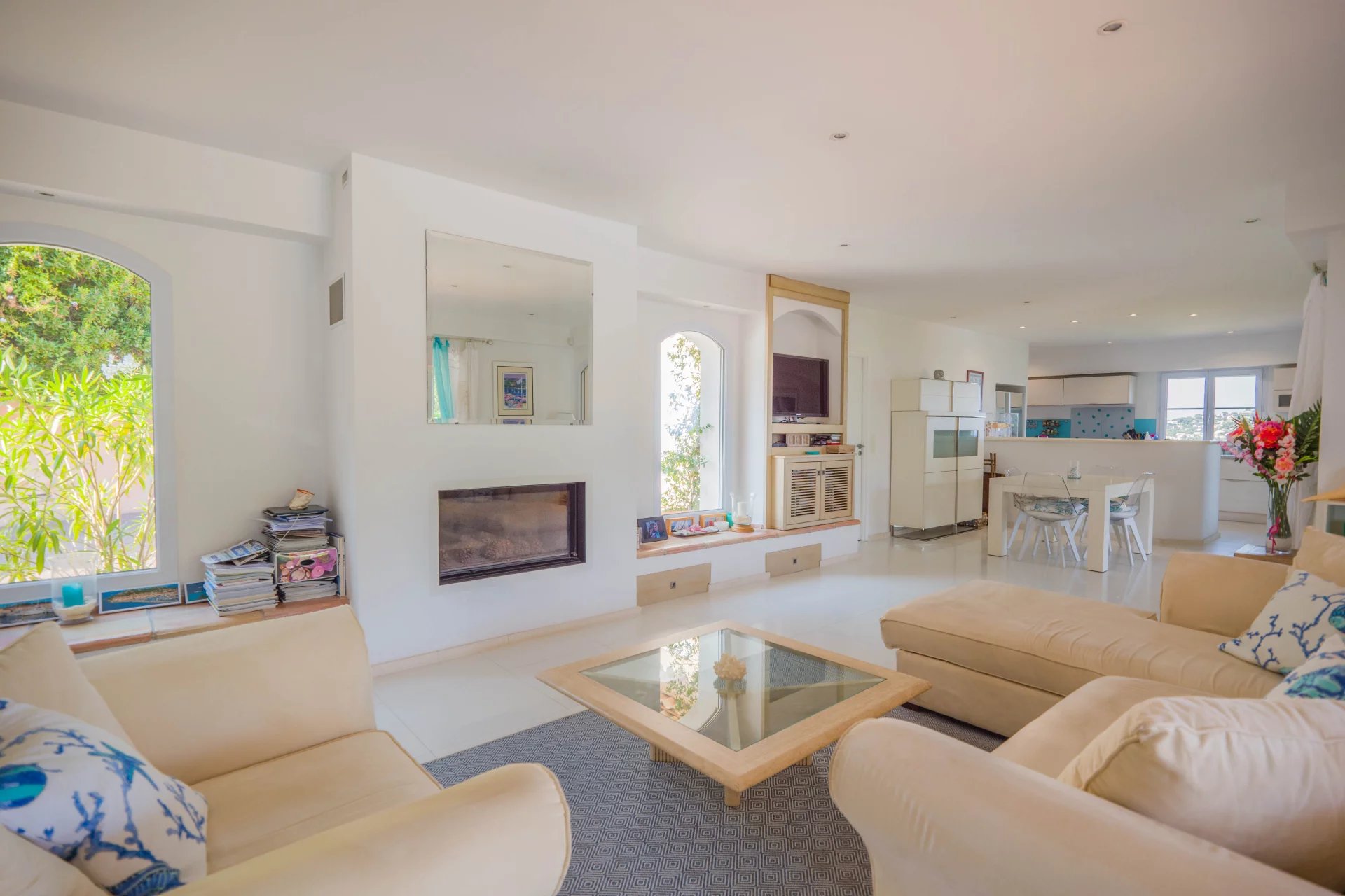 Nestled in a secure domain in the heart of a calm and green environment, with a beautiful sea view and close to the beaches, charming neo-Provencal style villa.