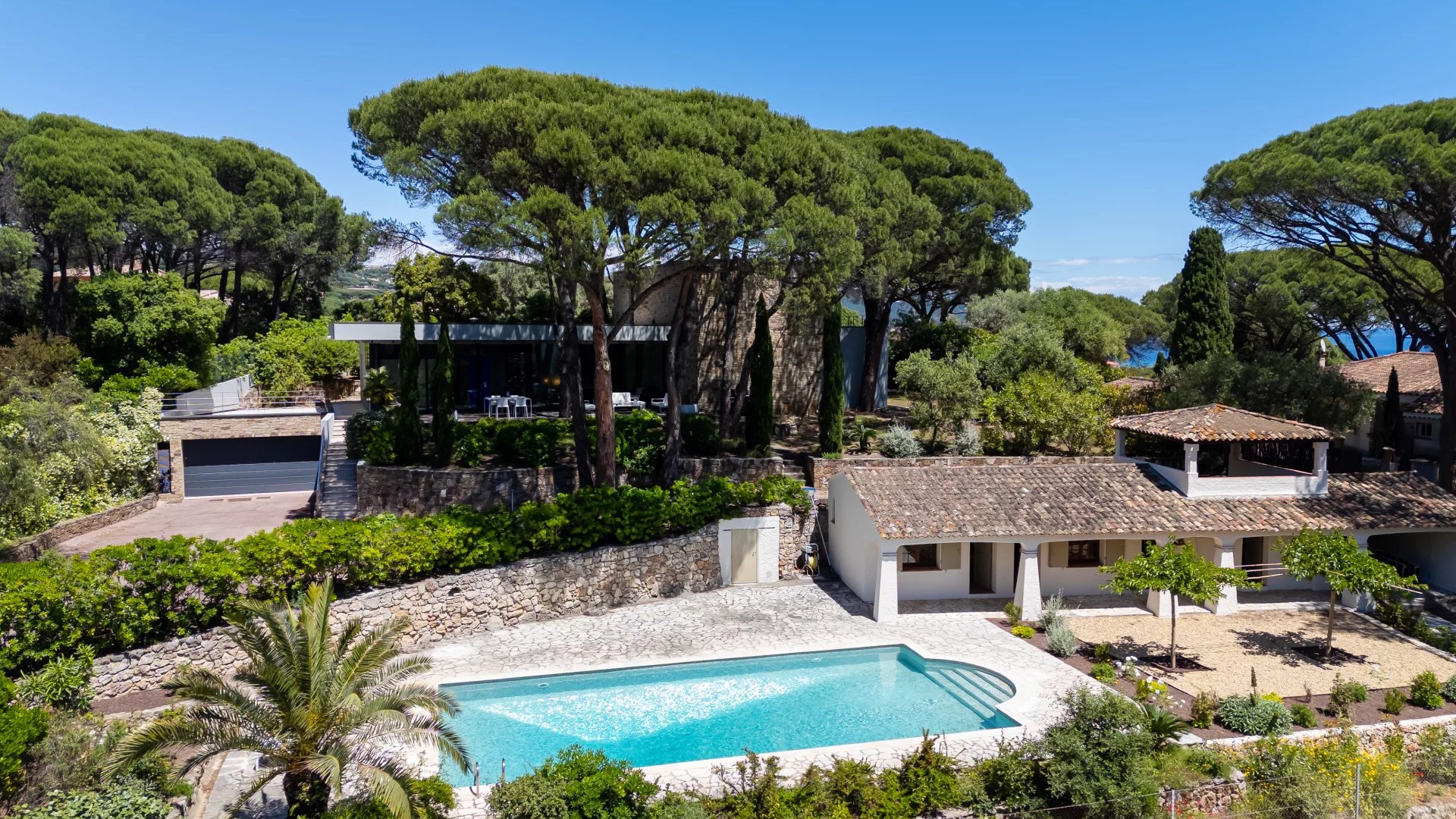 Set in the heart of a magnificent 3,200 m2 landscaped park, this contemporary property boasts spacious volumes bathed in light. The vast living room with fireplace opens onto the terraces and garden, the modern kitchen is fully equipped, and two en suite bedrooms are on the same level. Upstairs, the master suite features a bathroom, dressing room and private terrace.