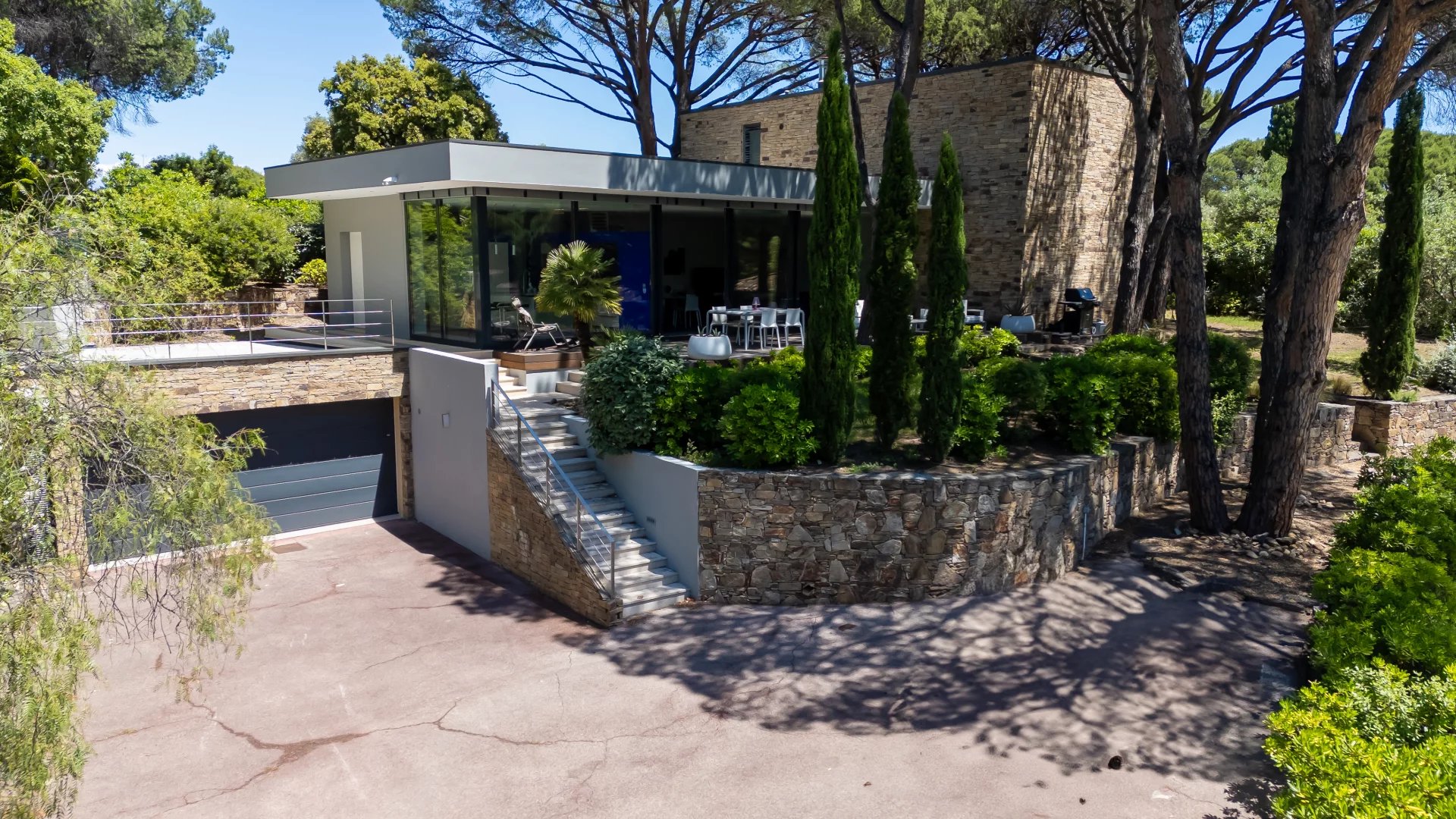 Close to the beaches of La Nartelle, this architect-designed villa seduces with its clean lines, luminosity and privileged natural setting.