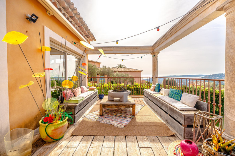 In a quiet and residential area close to the golf course, superb villa enjoying a beautiful sea view.