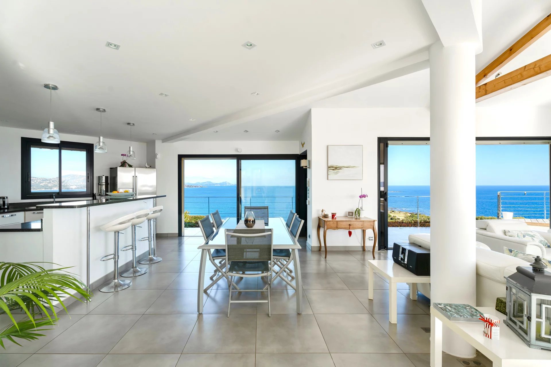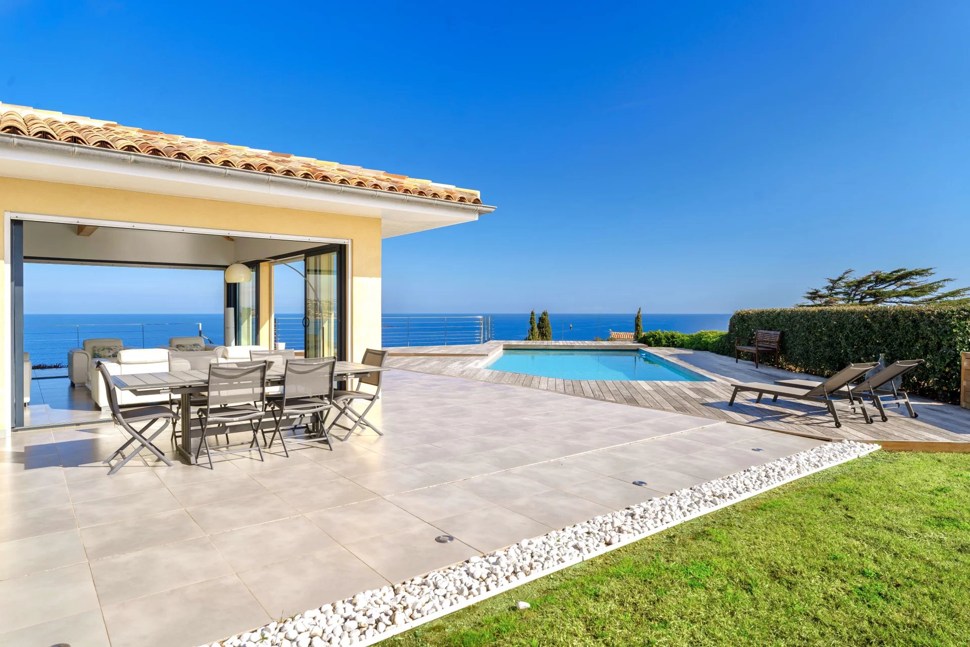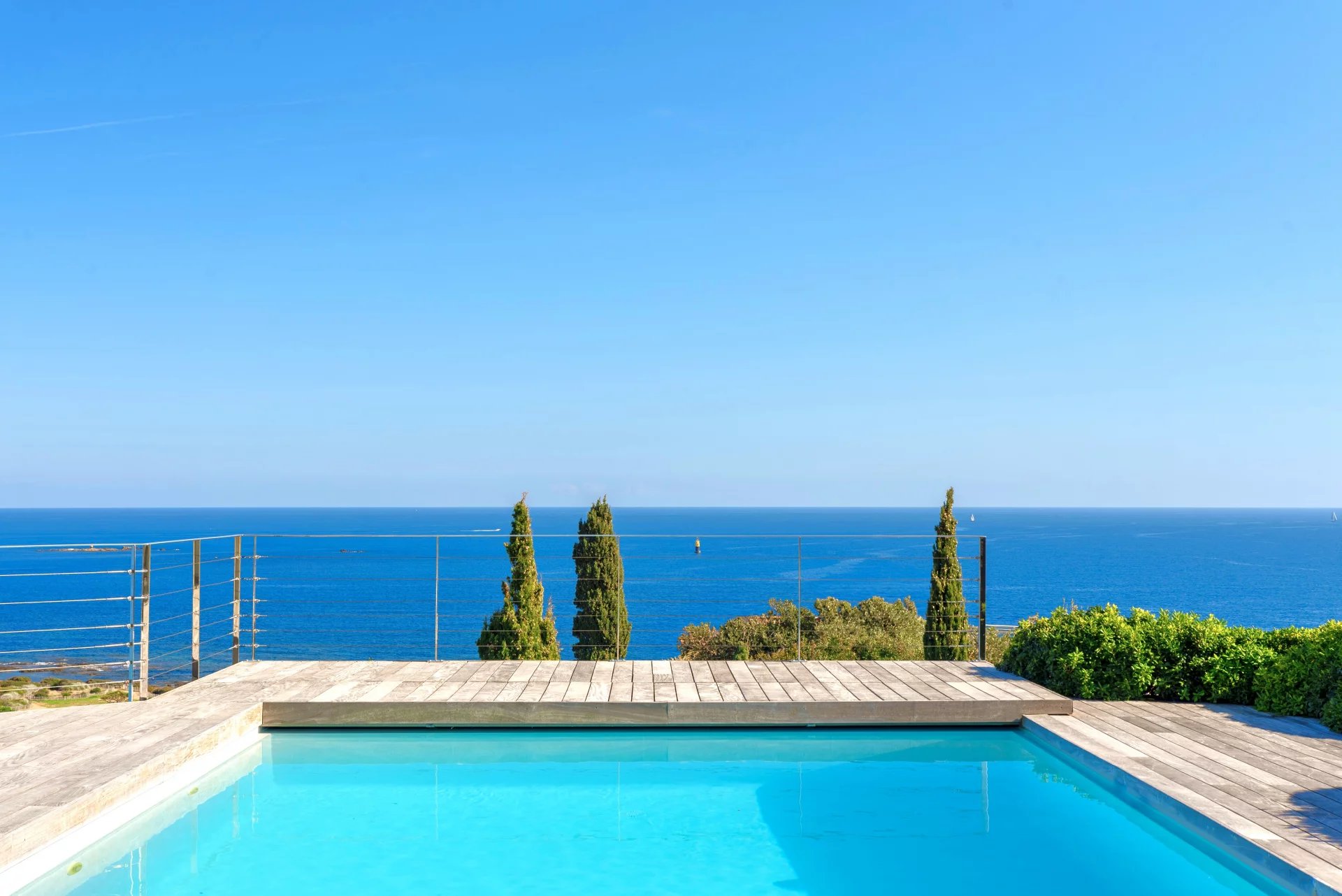 Set in a commanding position with private access within a secure estate, this property offers a unique 300 degree panorama over the fiery reflections of the Estérel hills, the azure waters of Les Issambres, the open sea, the beaches of La Nartelle, the Pointe des Sardinaux, and the entire Gulf of Saint-Tropez.