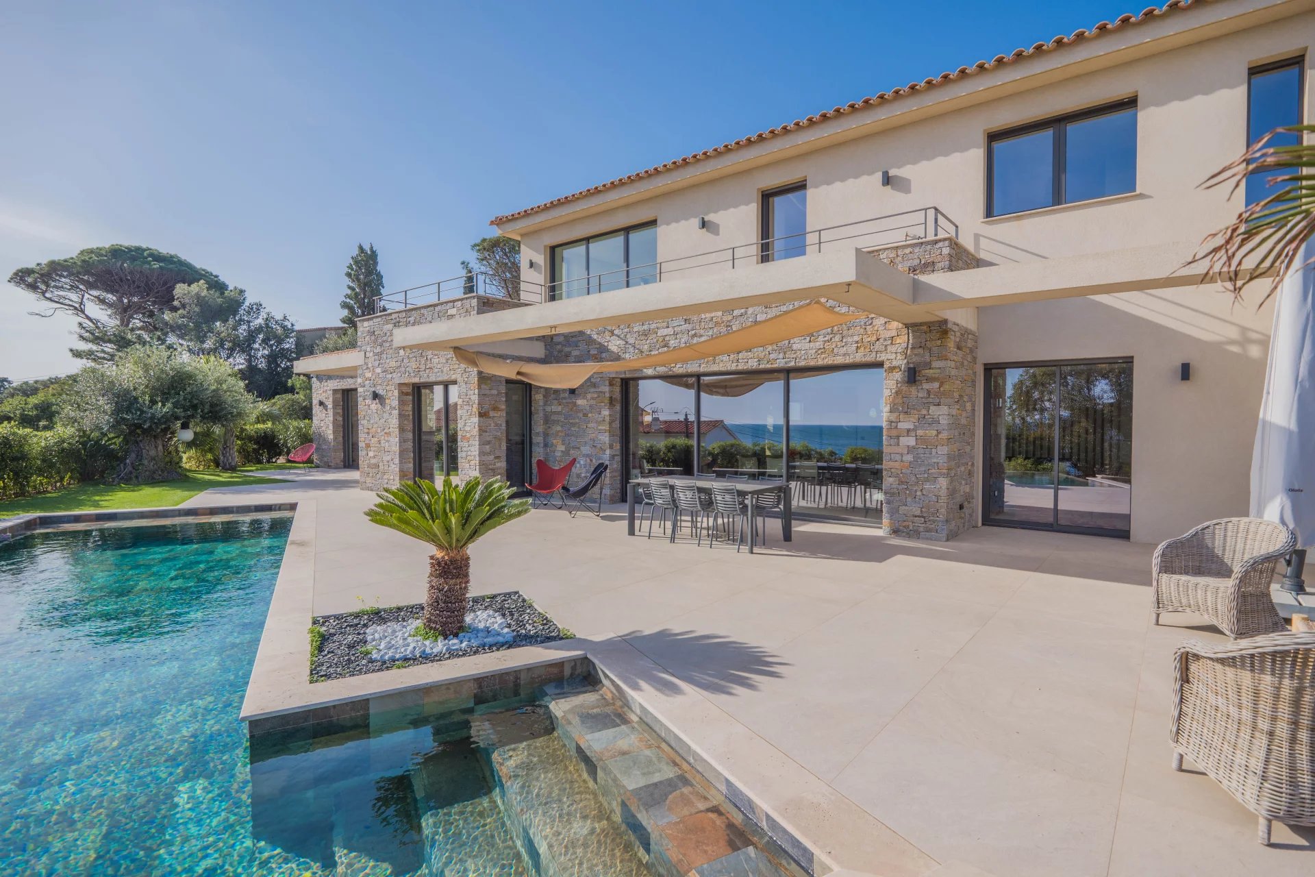 This beautiful new villa with stunning sea views is just a few steps from the sea and restaurants.