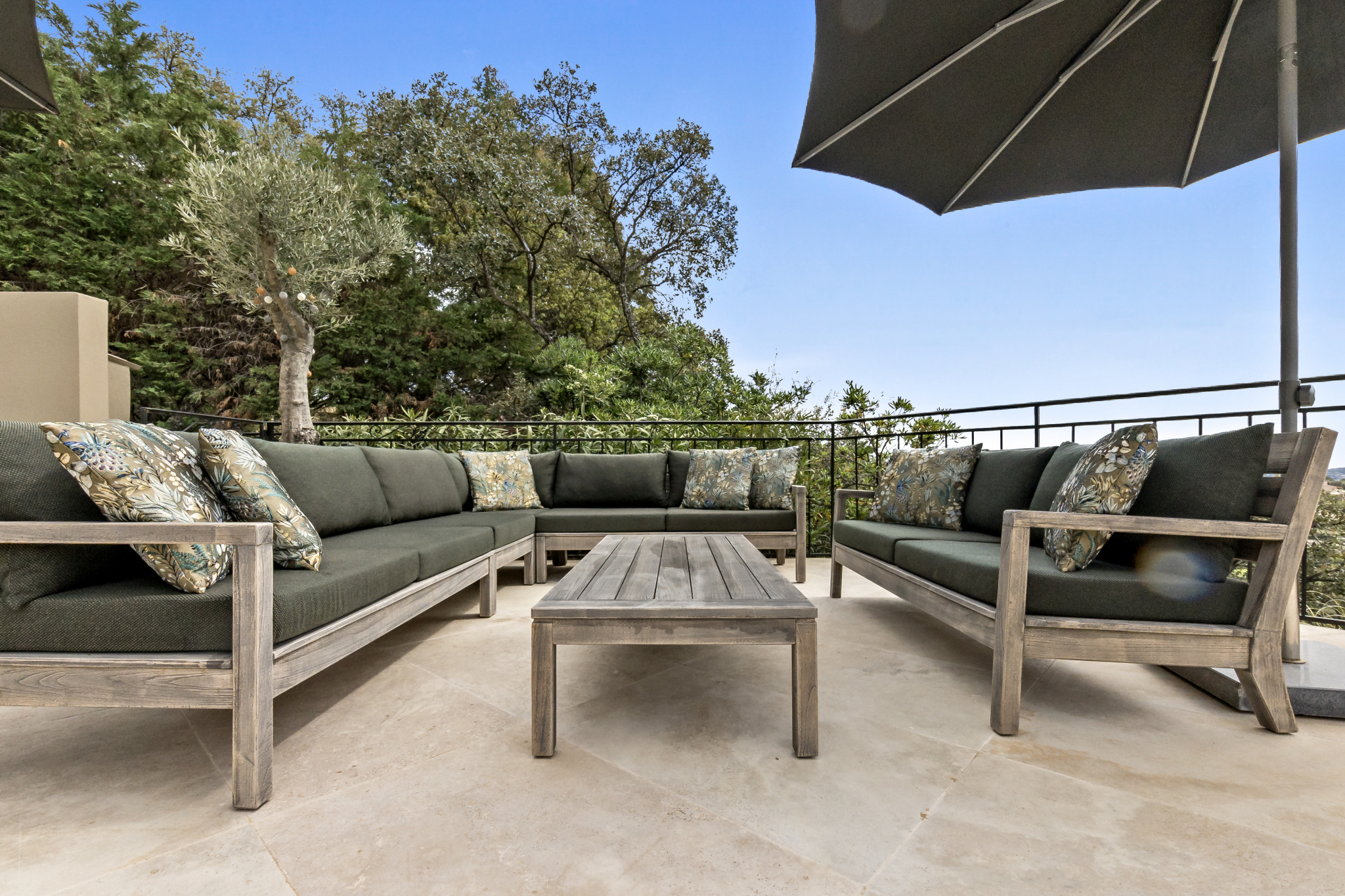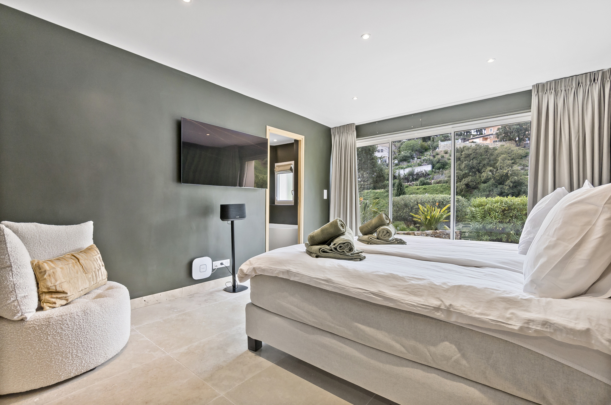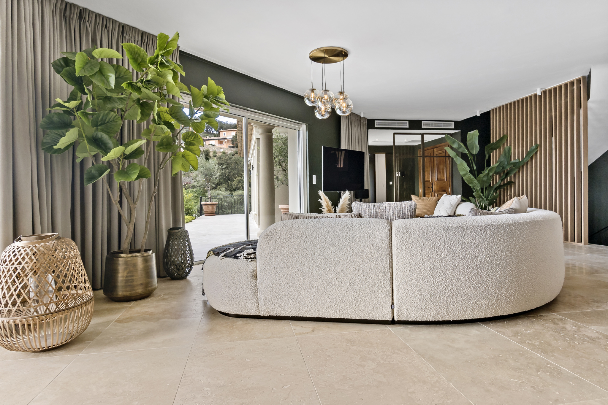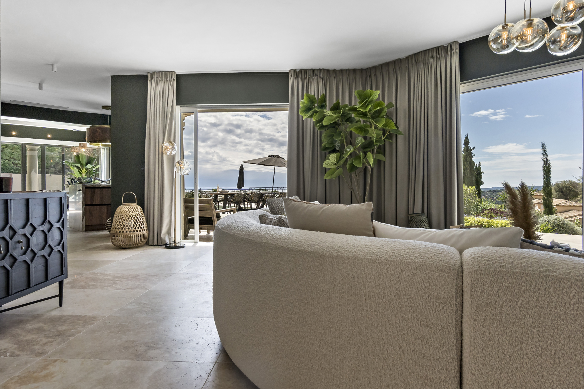 Beautiful villa, fully renovated in 2023, with excellent amenities on a large enclosed plot of 4170 m2, located on a golf course, in a quiet area with unobstructed views of the hills and the sea.