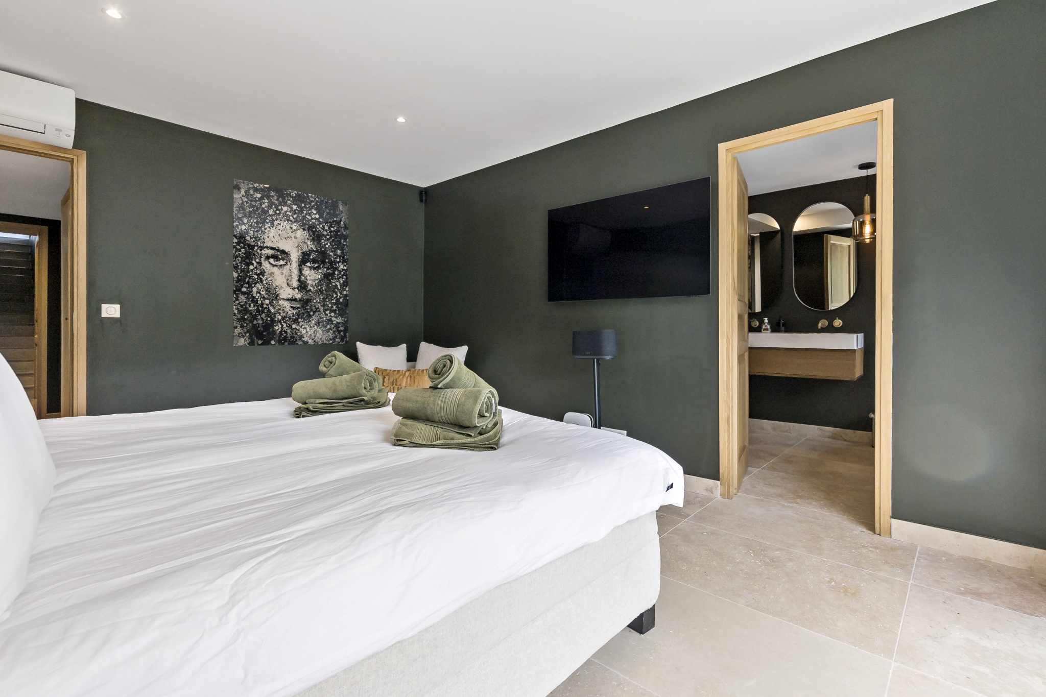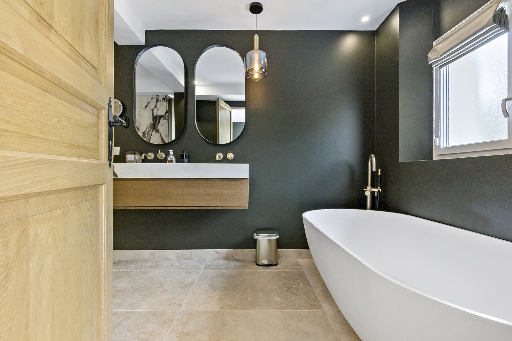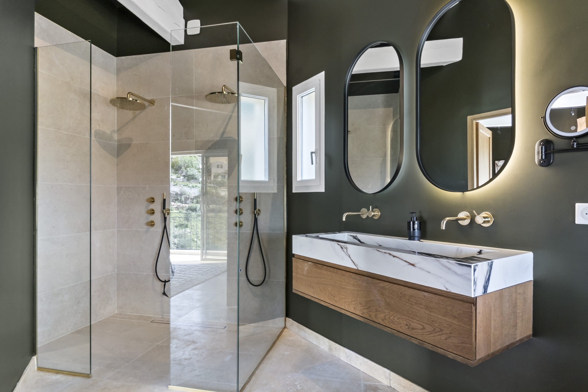 This 300 m2 villa includes two independent bedrooms with two shower rooms and WC. The main villa features a welcoming entrance, a living room with a fireplace, and a superb kitchen/dining room opening onto a covered terrace. The swimming pool and its terraces offer an ideal relaxation space. On the ground floor, there are two bedrooms with a shower rooms. Upstairs, a master suite with a bathroom, dressing room, and private terrace awaits you. On the garden level, there is a beautiful bedroom with a shower room and a laundry room, completing this property. There are parking spaces for several cars.