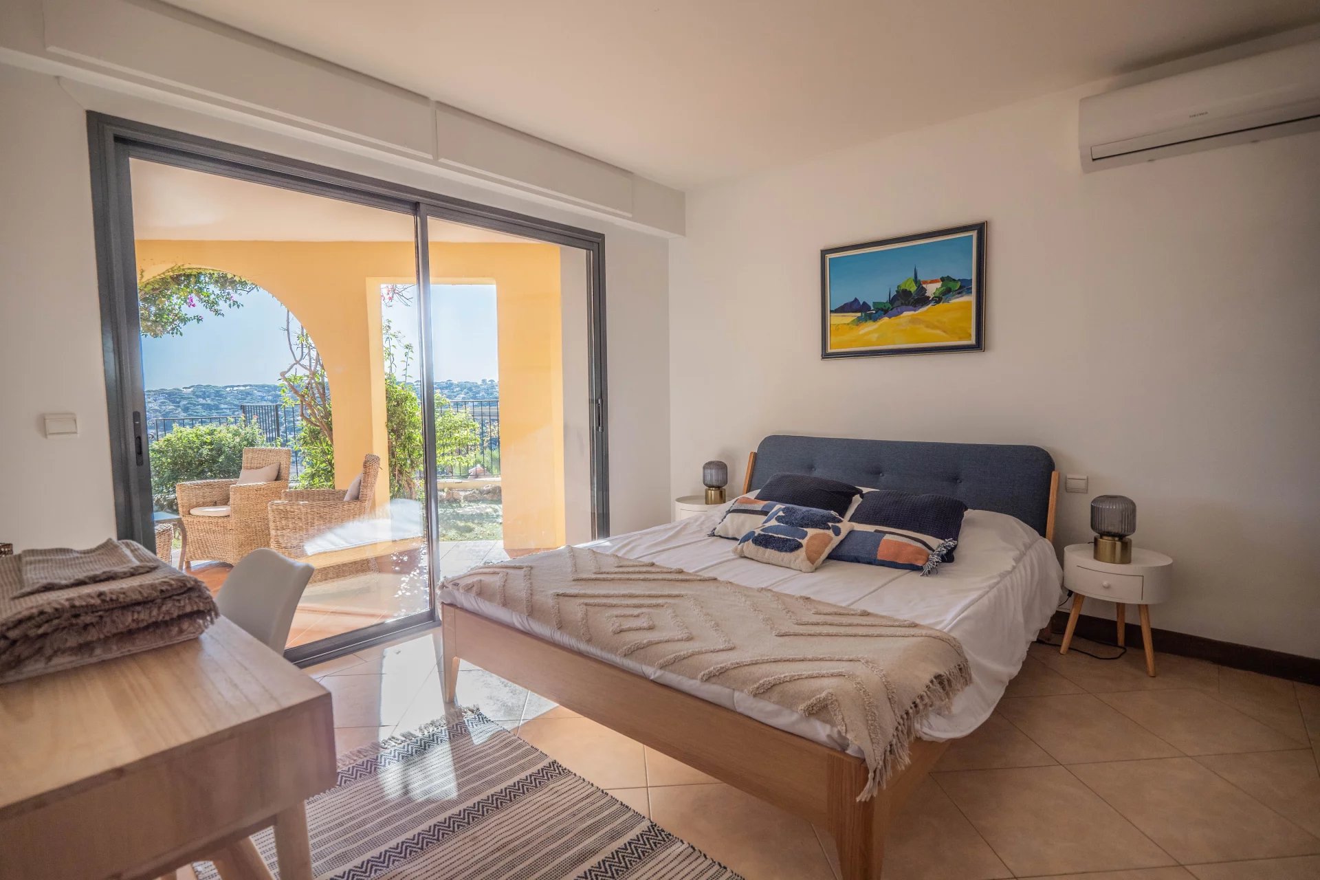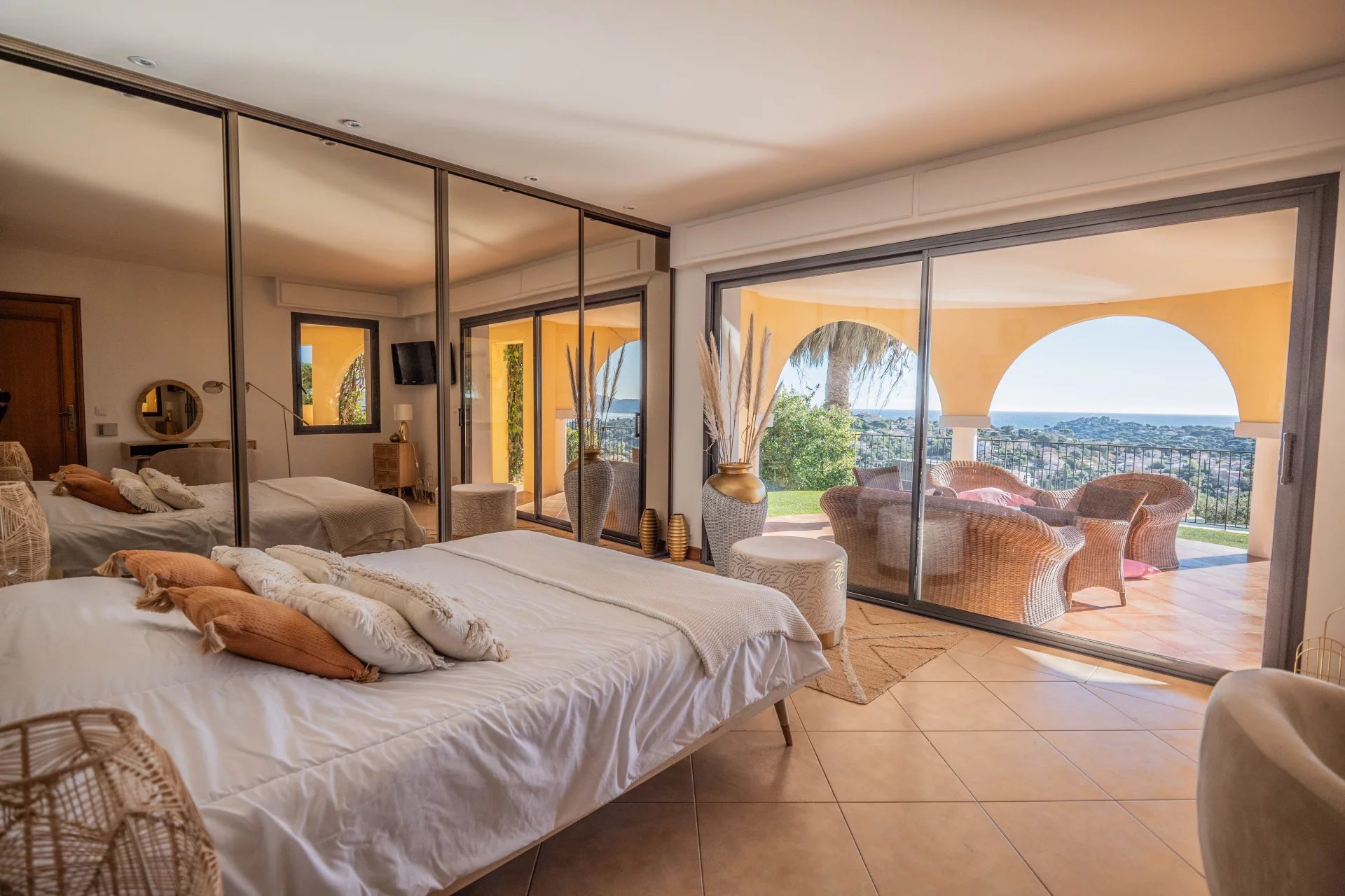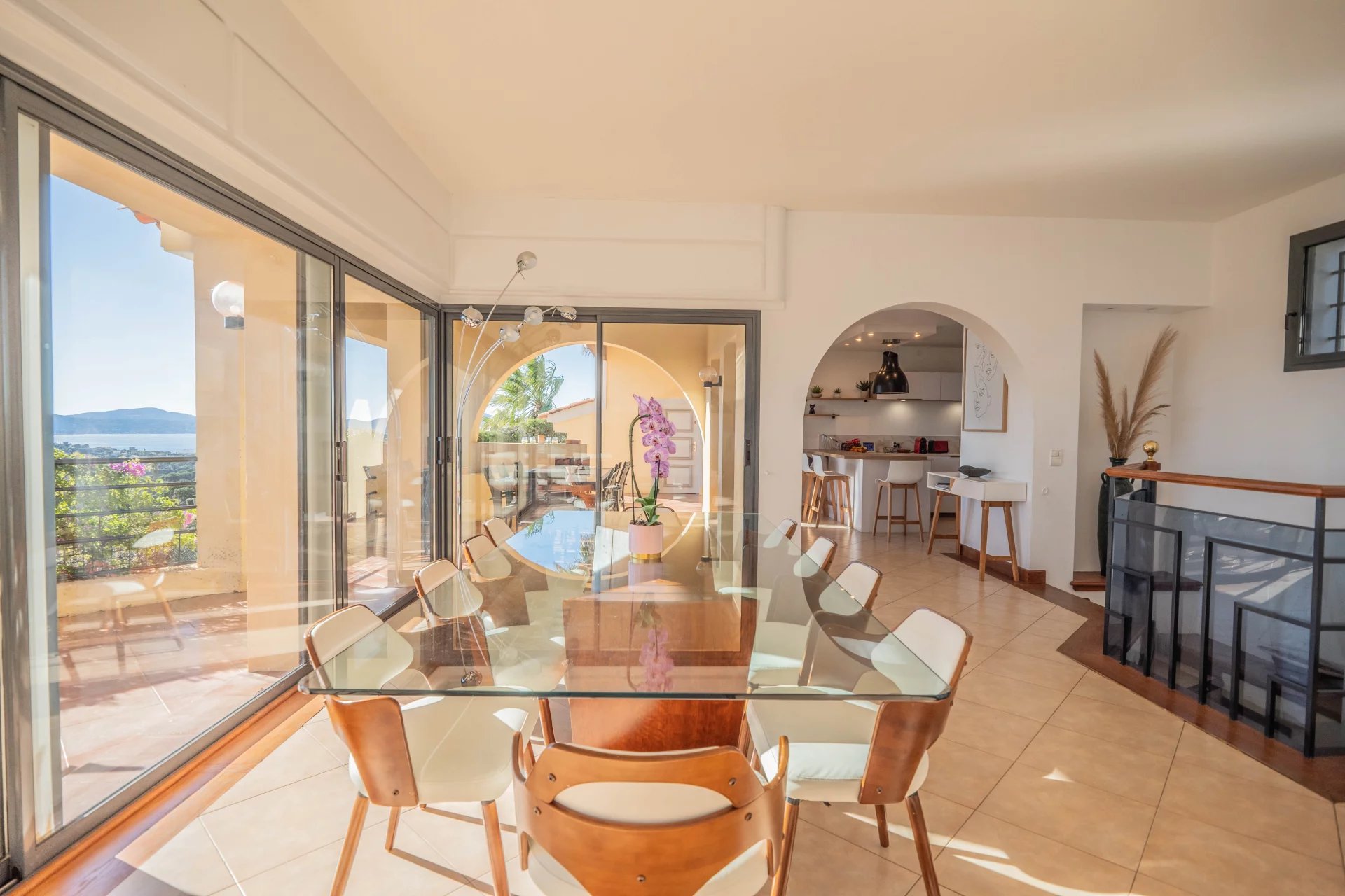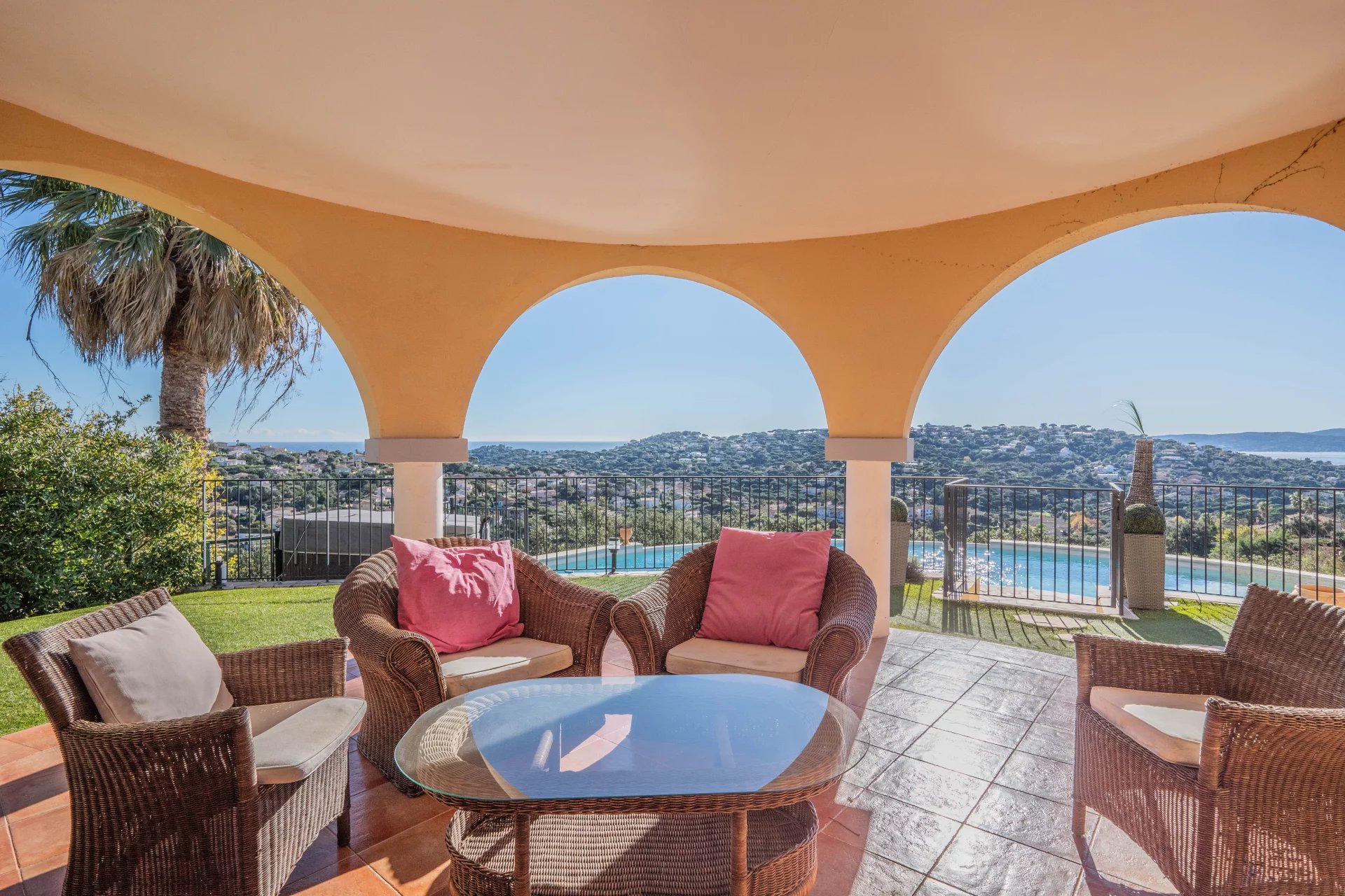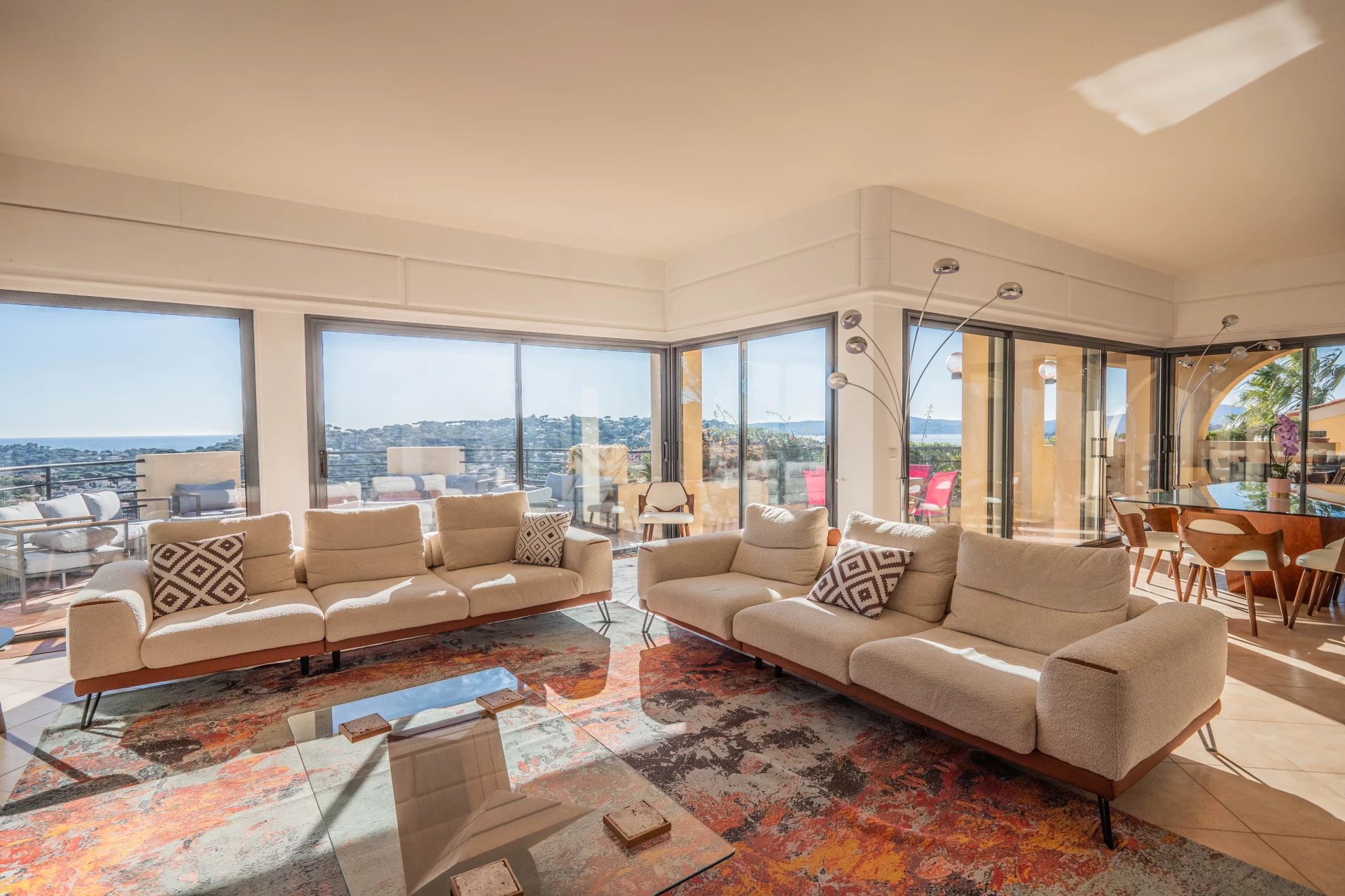 In the prestigious domain of the Sainte-Maxime golf course, elegant villa built in a dominant position facing the hills and the Gulf of Saint-Tropez.