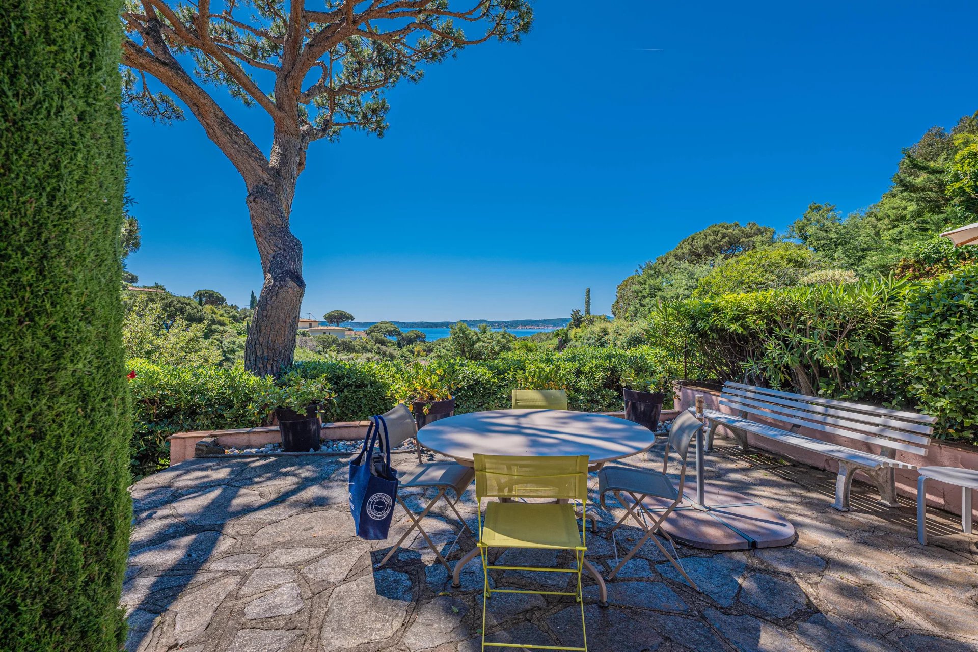 It offers a relaxing, unoverlooked living environment. Views of the sea and Saint-Tropez create a unique, soothing atmosphere.