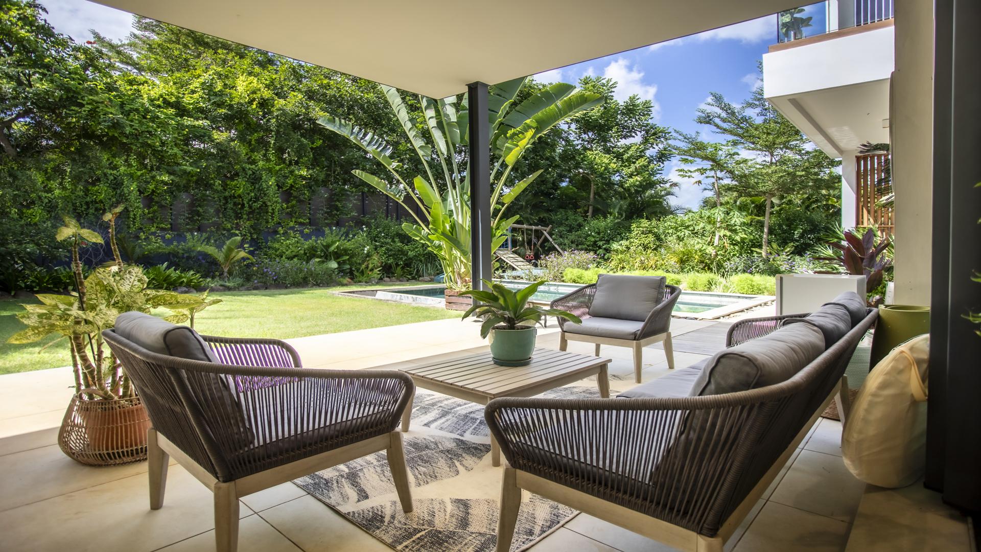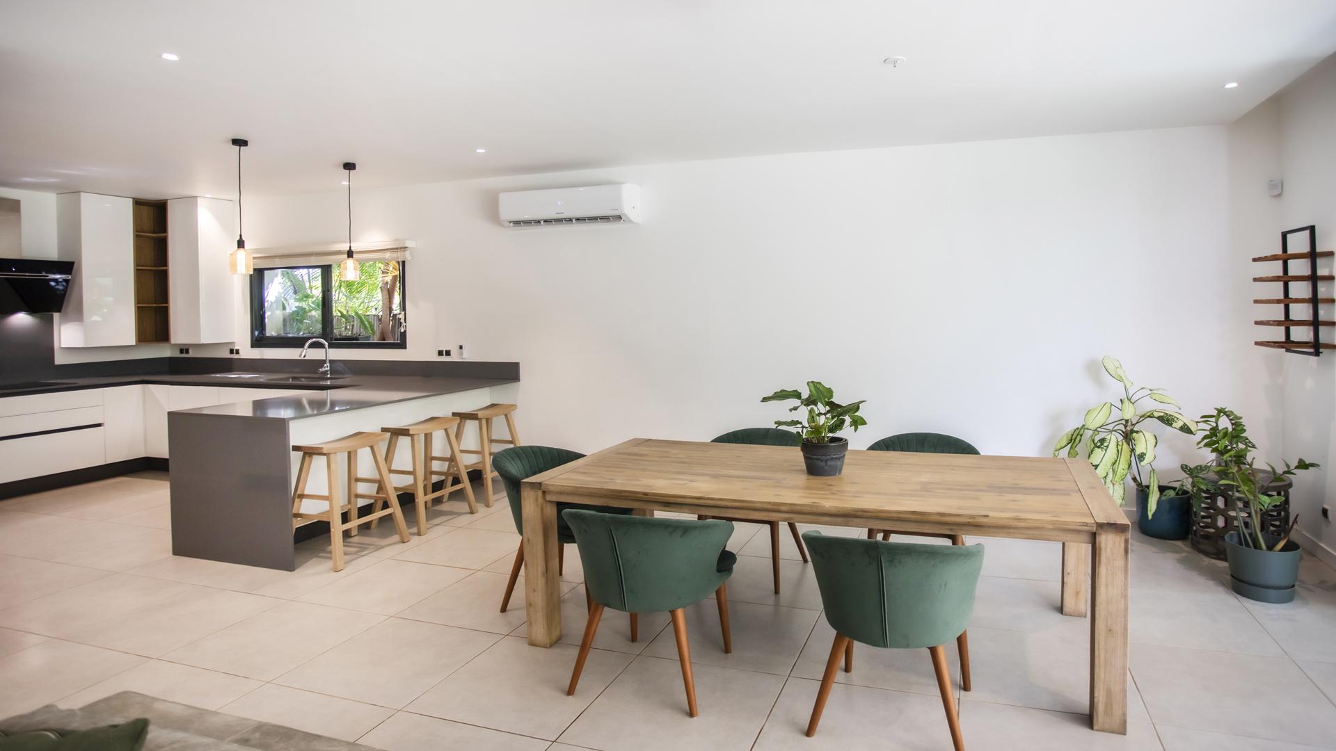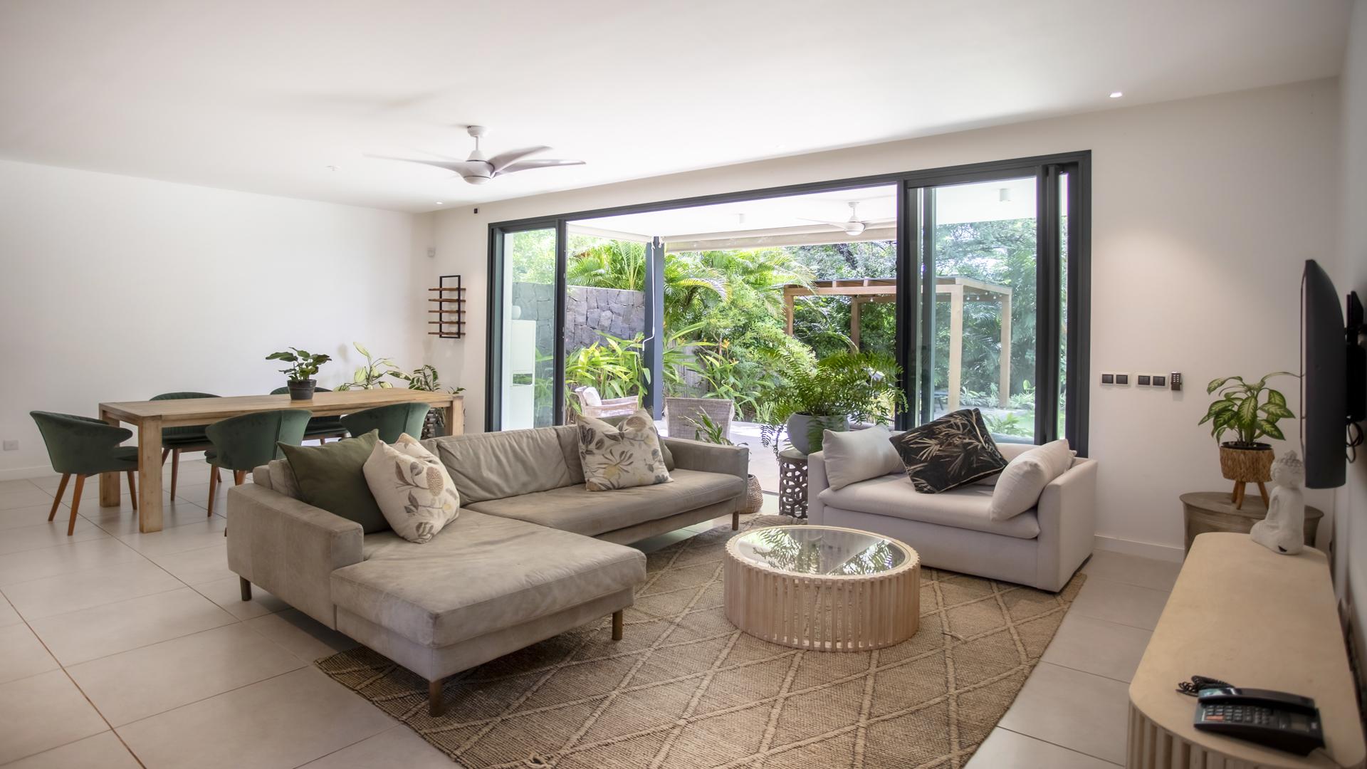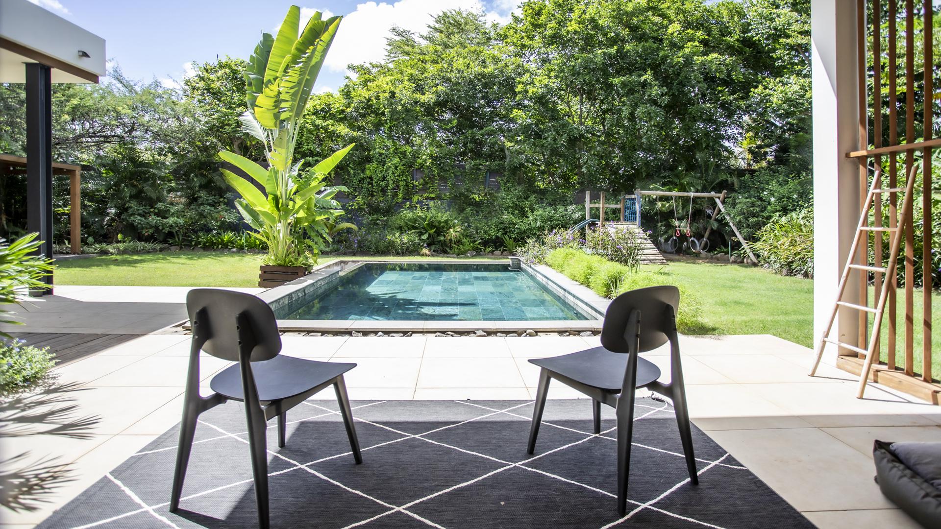 Set within the exclusive Akasha Villas estate, this contemporary 3-bedroom villa offers refined living, in nature, on the West Coast. Positioned on a 683 m² plot with a 217 m² built area, the property combines space, light, and high-end finishes throughout, in harmony with the natural landscape of Akasha.The home features en-suite bedrooms, a study, and a seamless open-plan lounge and dining area with high ceilings and large windows, creating a bright and airy atmosphere. The modern kitchen is fully equipped and complemented by a scullery and separate laundry room, with ample storage throughout.The living area opens onto a spacious covered patio, overlooking a private pool, landscaped garden, and gazebo, ideal for entertaining and relaxed outdoor living. Not least, the home is fully air-conditioned, includes a water tank, and benefits from approved plans for additional storage or a garage.Located just minutes from Cap Tamarin and the renowned Tamarina Golf Club, residents enjoy easy access to shops, restaurants, schools, medical facilities, golf, and the beach of Tamarin.A perfect opportunity for a primary residence or investment in one of Tamarin’s most sought-after gated estates.Contact us for a visit.