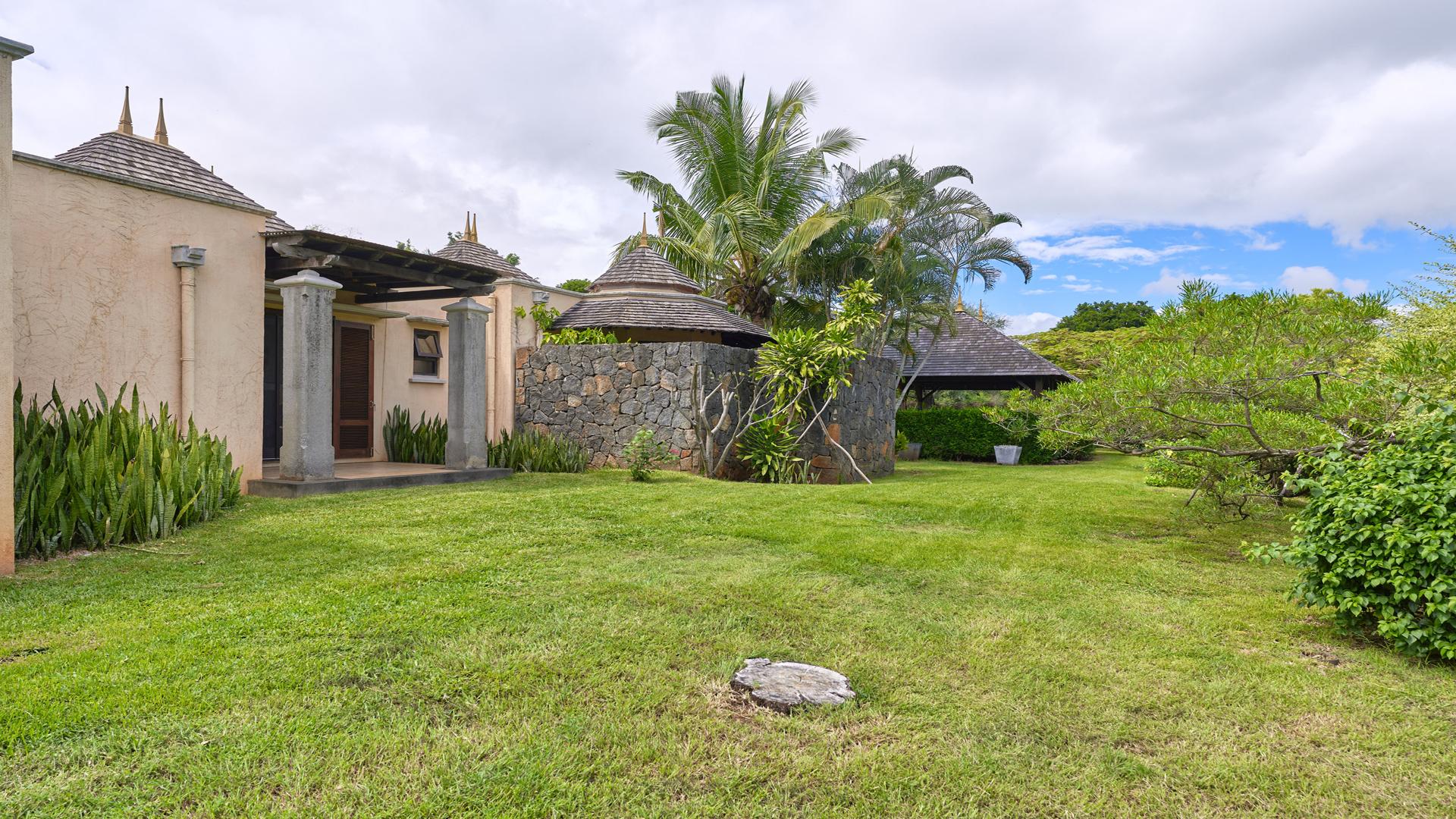 Perfectly positioned on a magnificent 3,170 m² plot in one of Tamarin’s most exclusive golf estates, this, 4-bedroom, colonial-style villa combines refined architecture with tropical serenity. Offering 400 m² of elegant indoor living, this home is ideal for those seeking space, privacy, and the charm of a plantation-style retreat.Step inside to discover a warm, expansive living room under high ceilings, flowing seamlessly into a spacious dining area, all opening onto a generous terrace with views over a manicured lawn and lush vegetation. The villa’s interiors are bathed in natural light, with wide openings inviting the outdoors in.Each of the bedrooms features an en suite bathroom, air conditioning, mosquito shutters, and direct access to a private terrace. 2 bedrooms include walk-in closets while the others offer built-in wardrobes, ensuring comfort and practicality for all.The villa also boasts a fully equipped kitchen with an adjoining scullery, store, and linen room, ideal for easy daily living. Outside, enjoy 2 charming thatched kiosks for lounging or al fresco dining, and a striking infinity pool. Enjoy access to the golf course, and other on-site facilities.This villa is more than just a home, it’s a lifestyle of elegance, nature, and leisure, just minutes from Tamarin’s golf, beaches, and vibrant coastal life.