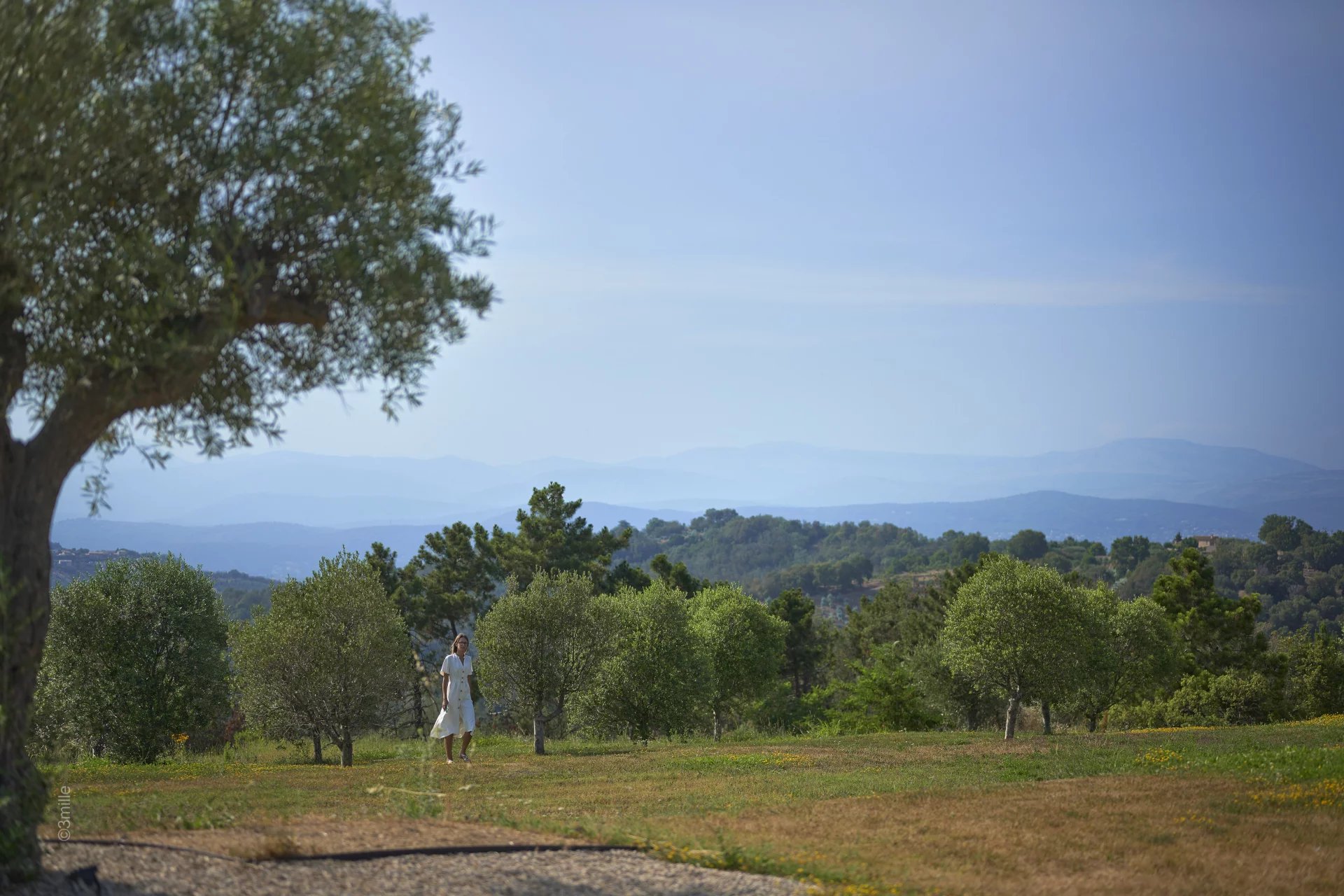 The villa is in the heart of a preserved natural setting and enjoys a splendid panorama on the Provencal hinterland hills as well as the peaks of the Alps whose colors change with the seasons