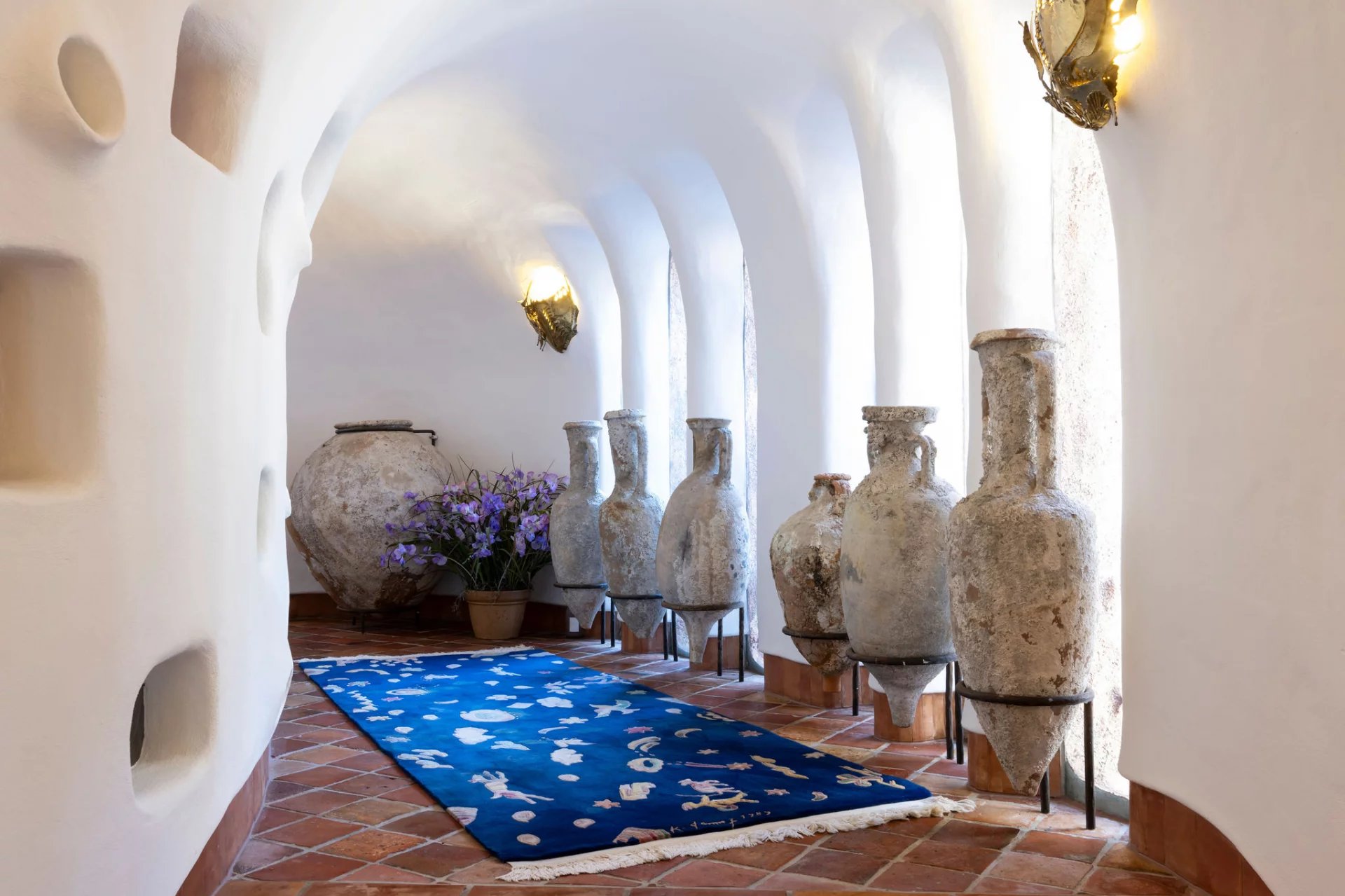 A dedicated wellness wing houses a gym and spa, leading to the remarkable indoor-outdoor pool, where water mirrors the sky and the surrounding stone forms a natural amphitheatre of calm.