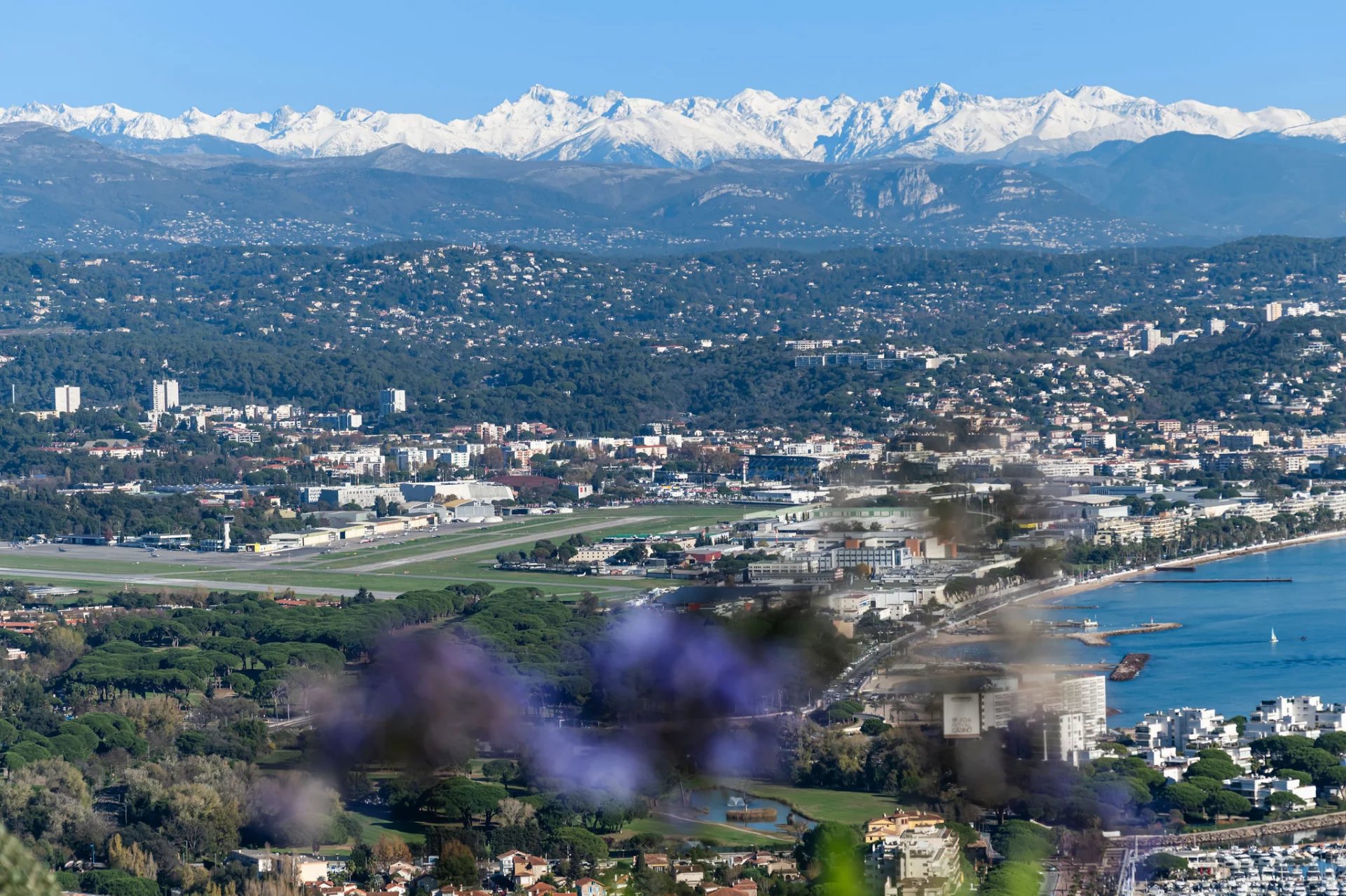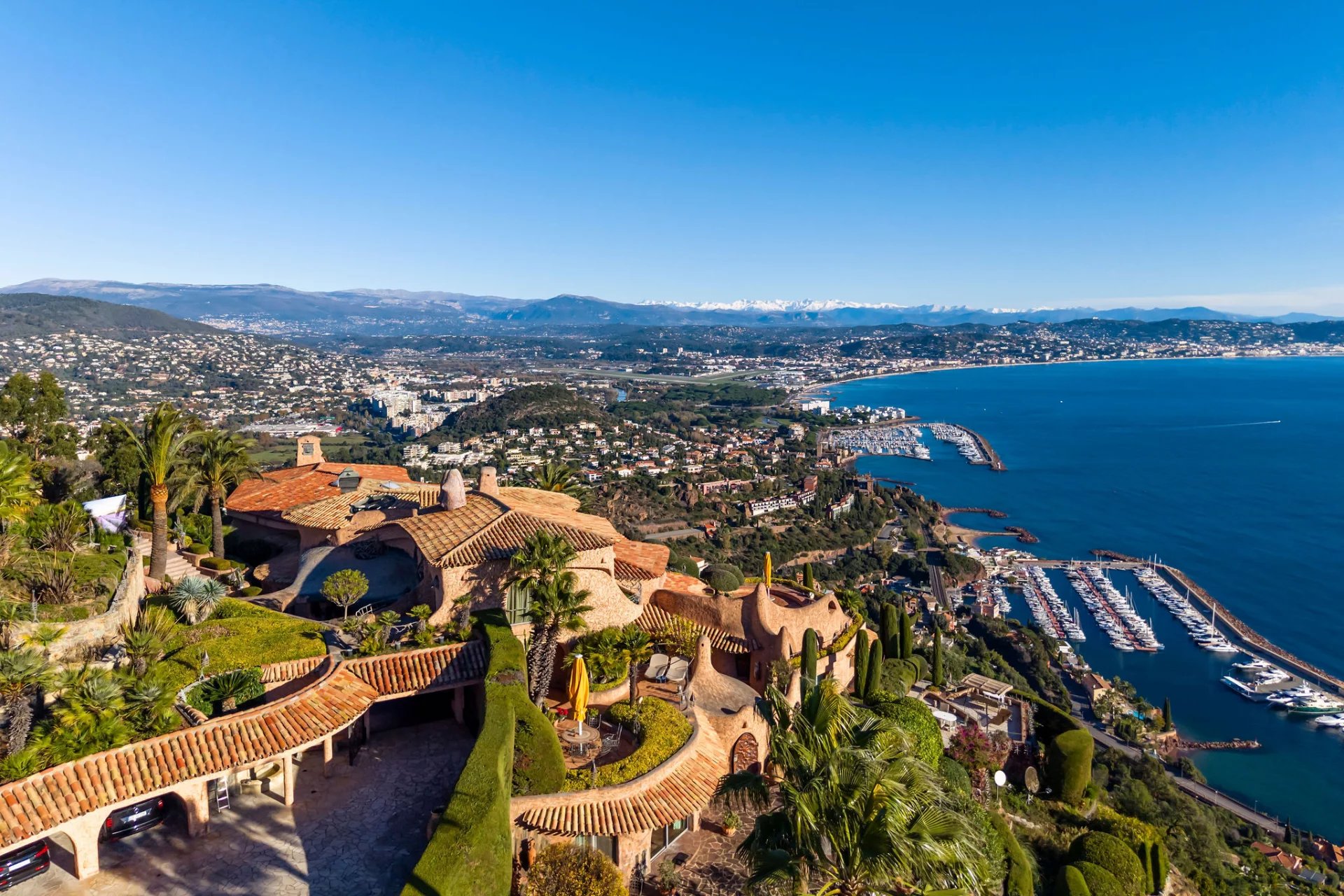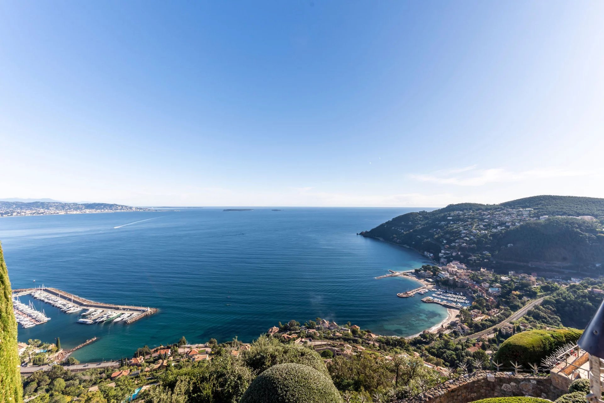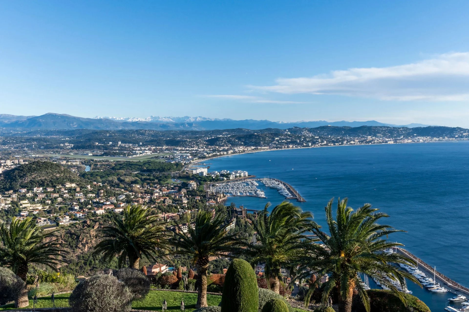 the glittering Mediterranean on one side and the dramatic sweep of the Esterel mountains on the other.
