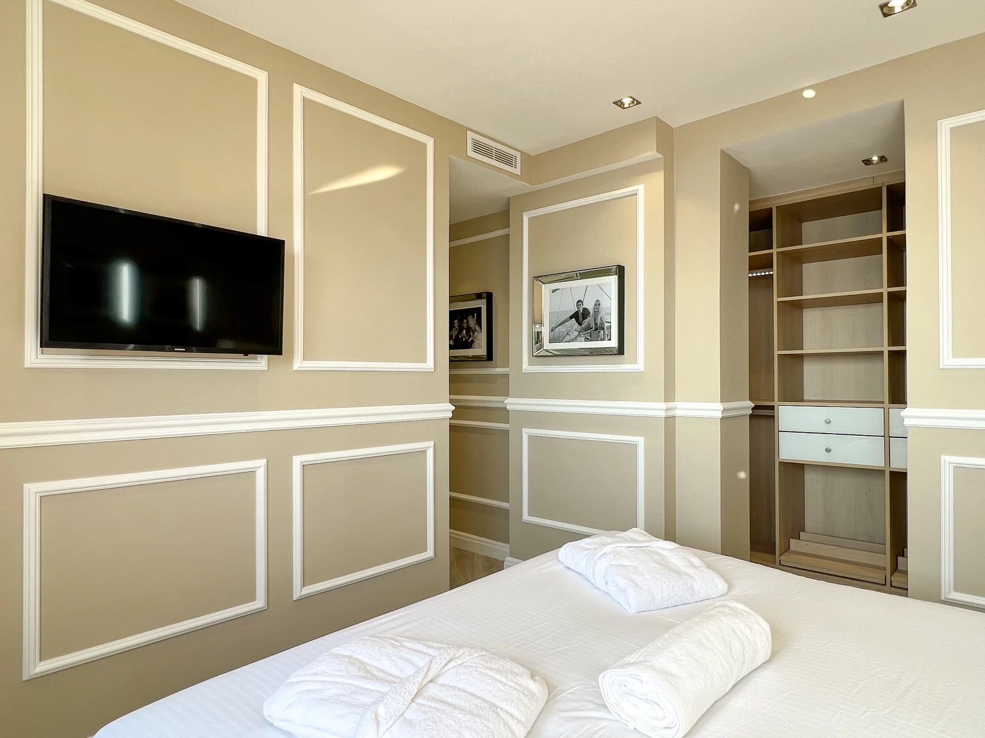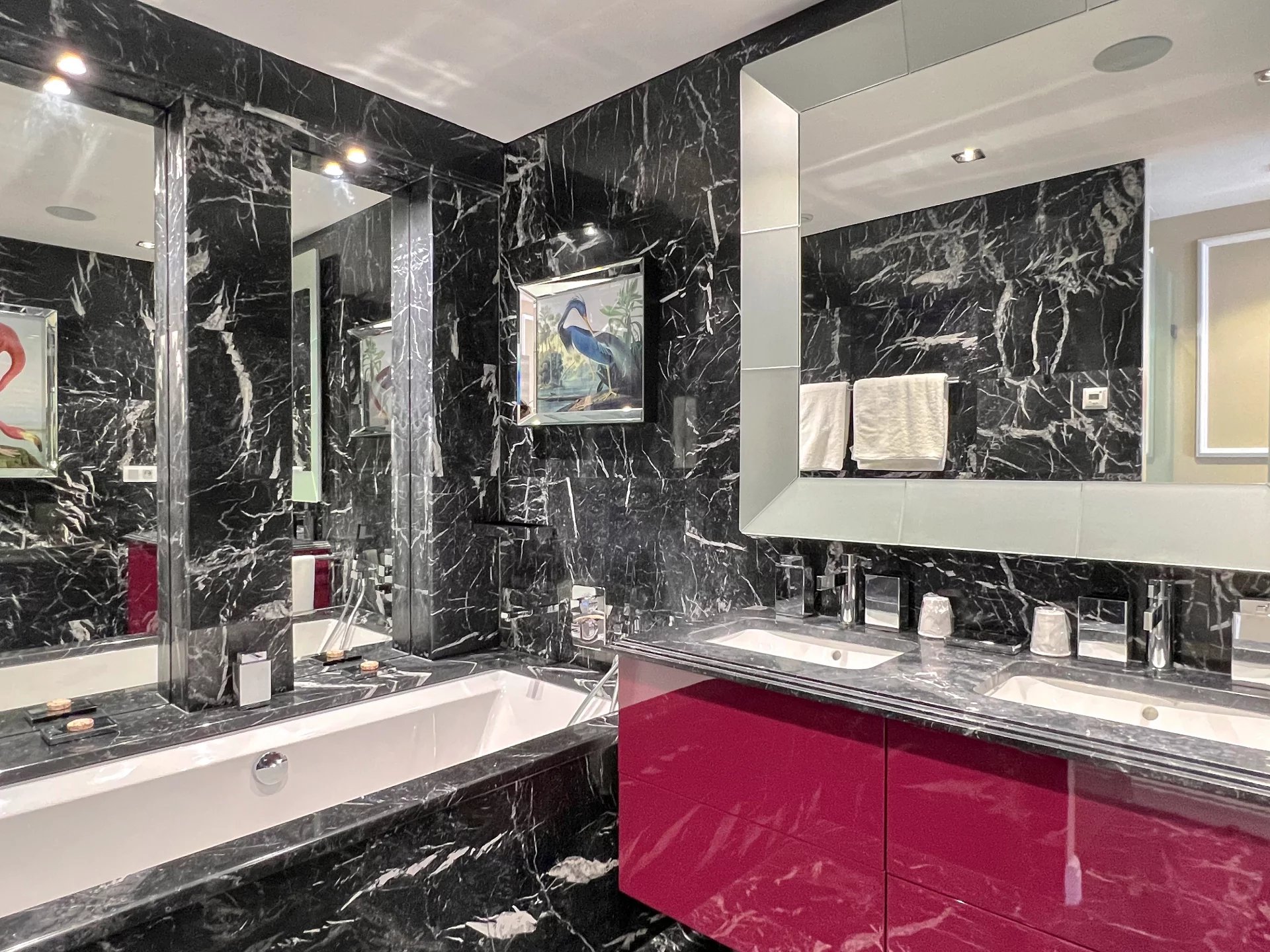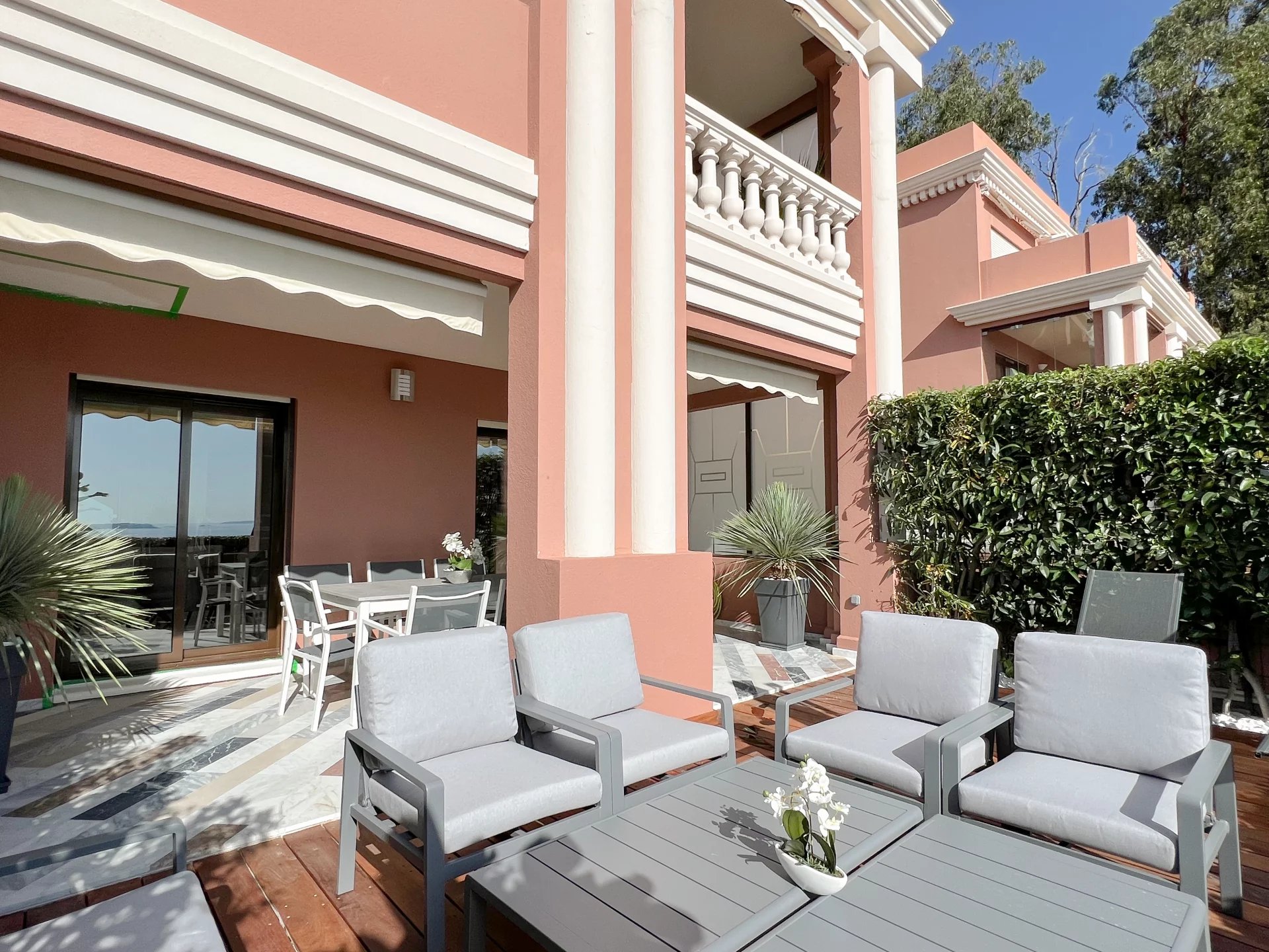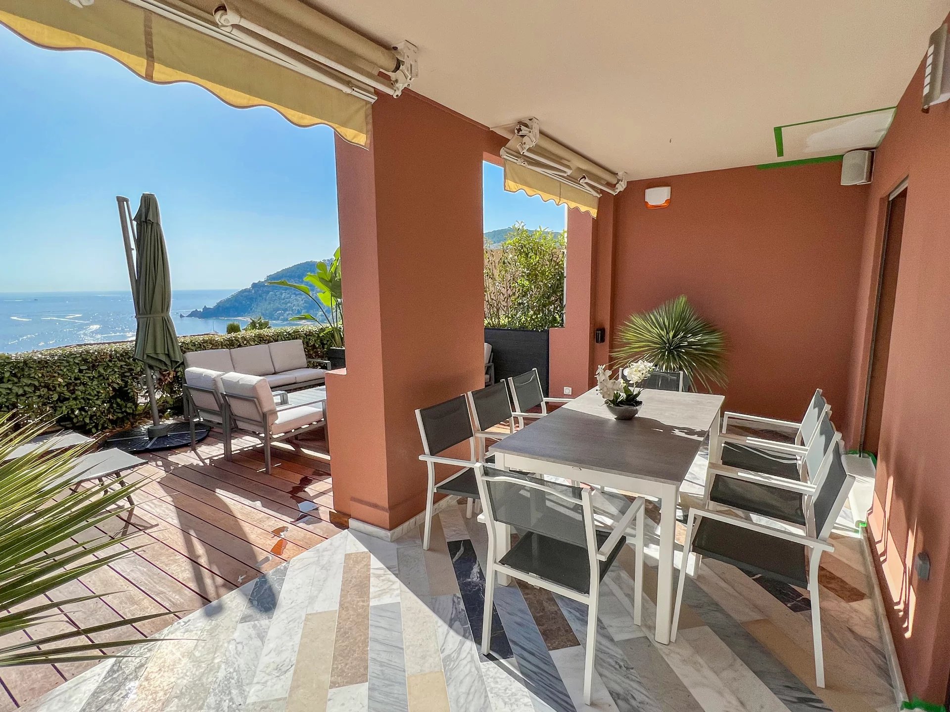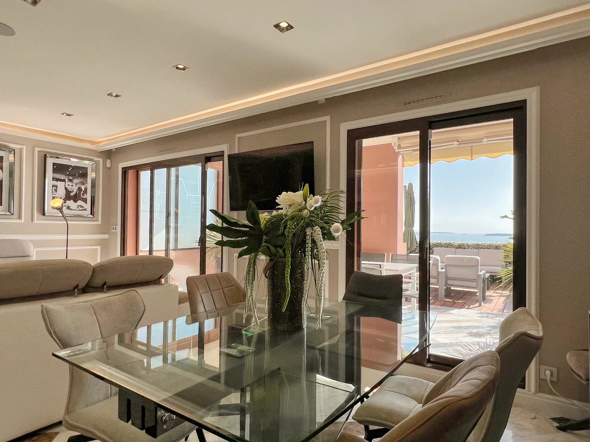 In a prestigious residence with swimming pool and caretaker, walking distance from the village, beaches, restaurants and the port of Theoule-sur-mer, fully renovated 4-room duplex apartment with sea view.