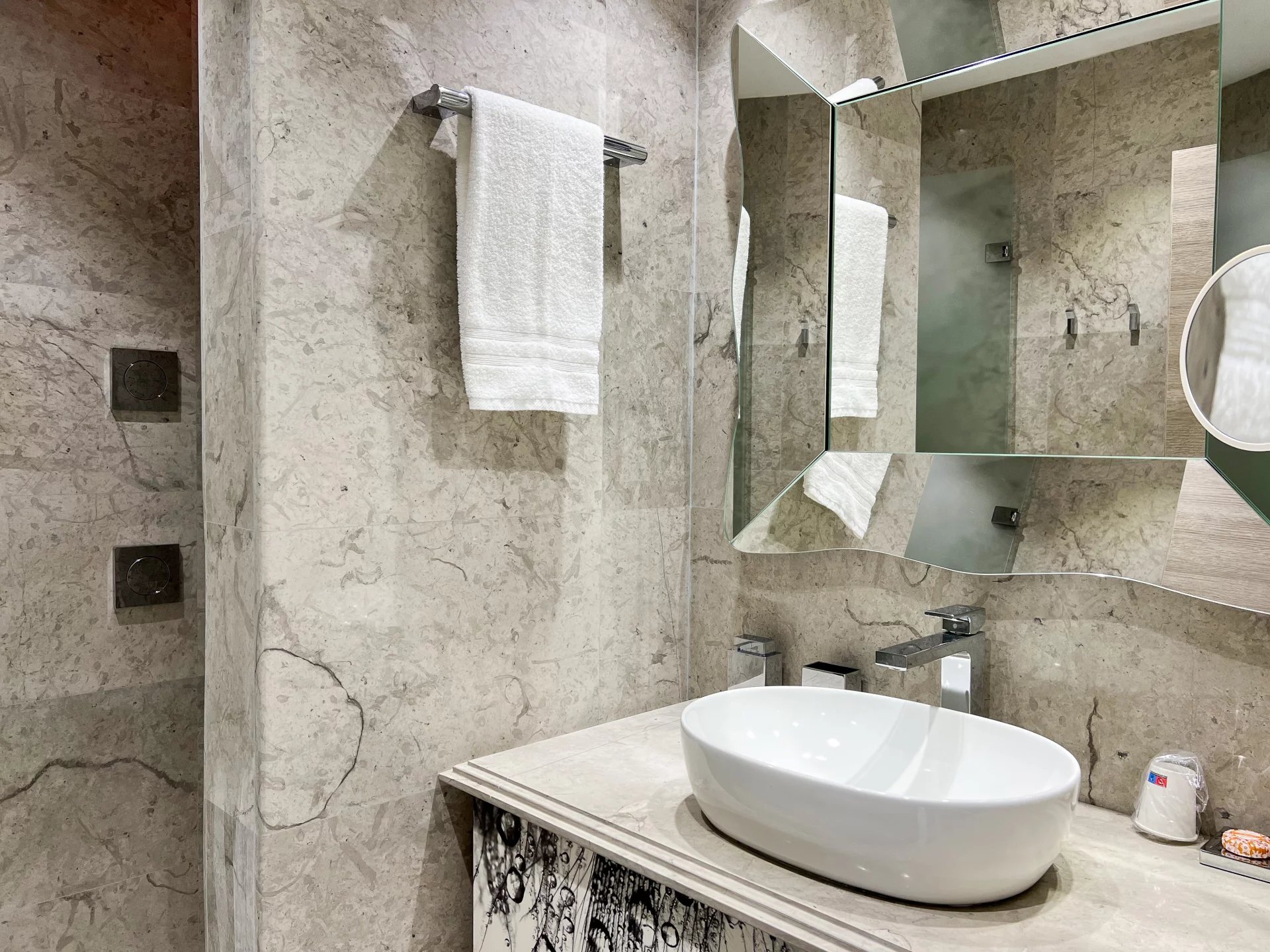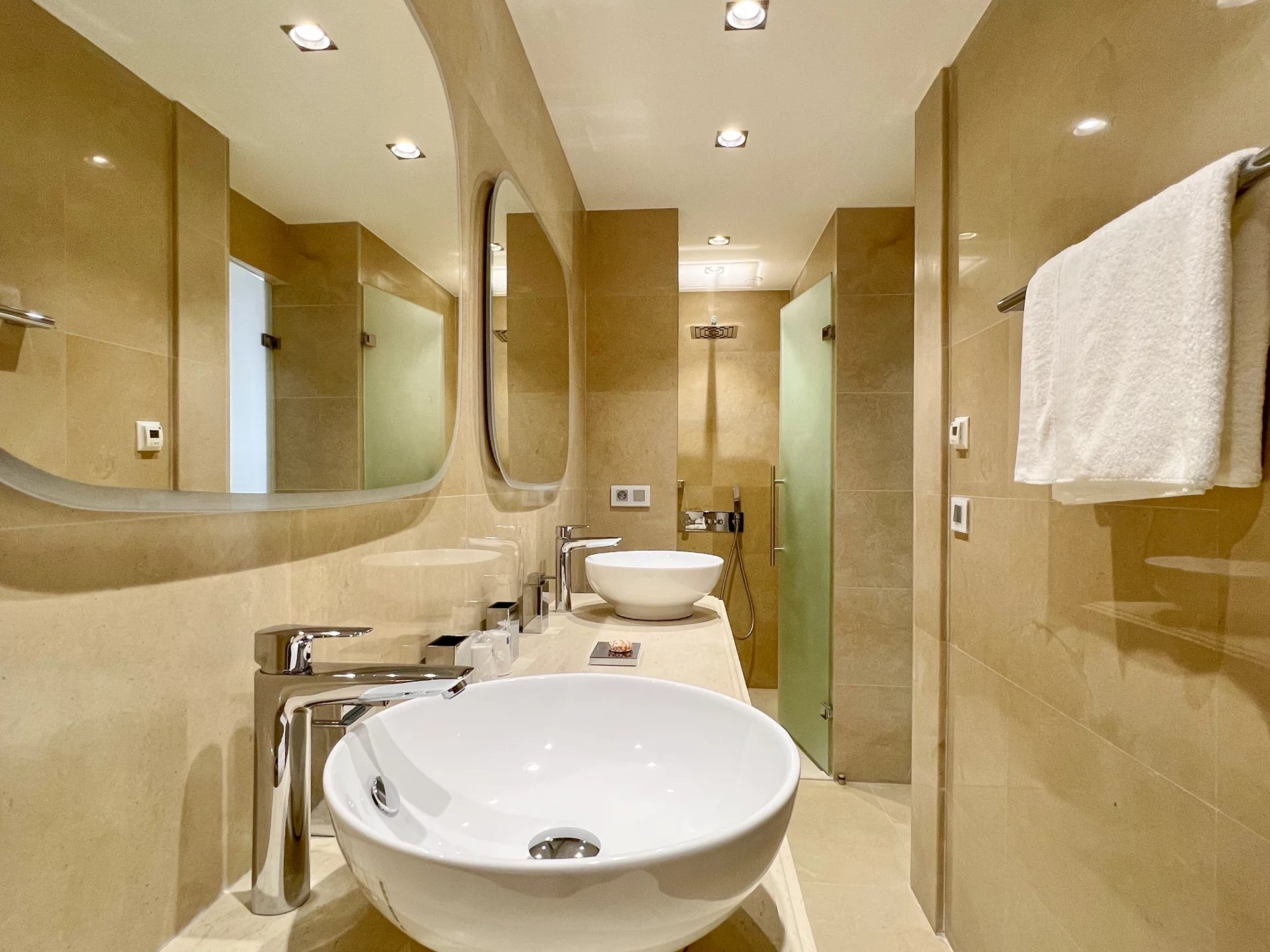 The sleeping area upstairs consists of 3 bedrooms with their bathrooms, one of which has a dressing room, all enjoying the sea view.