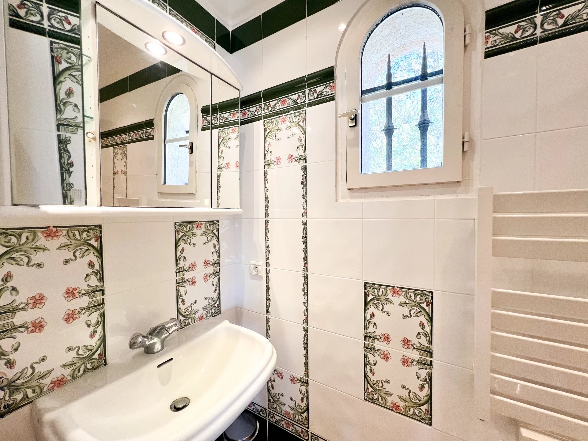The garden level offers a tranquil fourth bedroom with en-suite bath, opening directly onto the expansive pool terrace, where the sparkling waters of the Bay of Cannes stretch out before you.