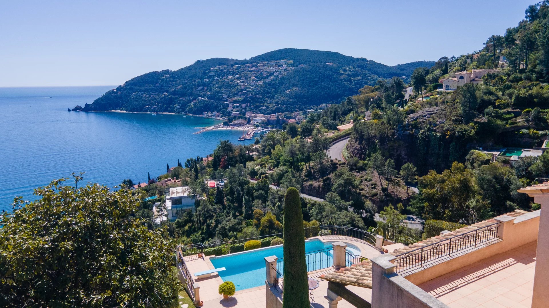 Nestled within a renowned and secure private estate in Theoule-sur-Mer, just moments from the village, marinas, beaches, and fine dining, this exceptional villa presents a rare opportunity to own a sun-drenched retreat overlooking the Bay of Cannes.