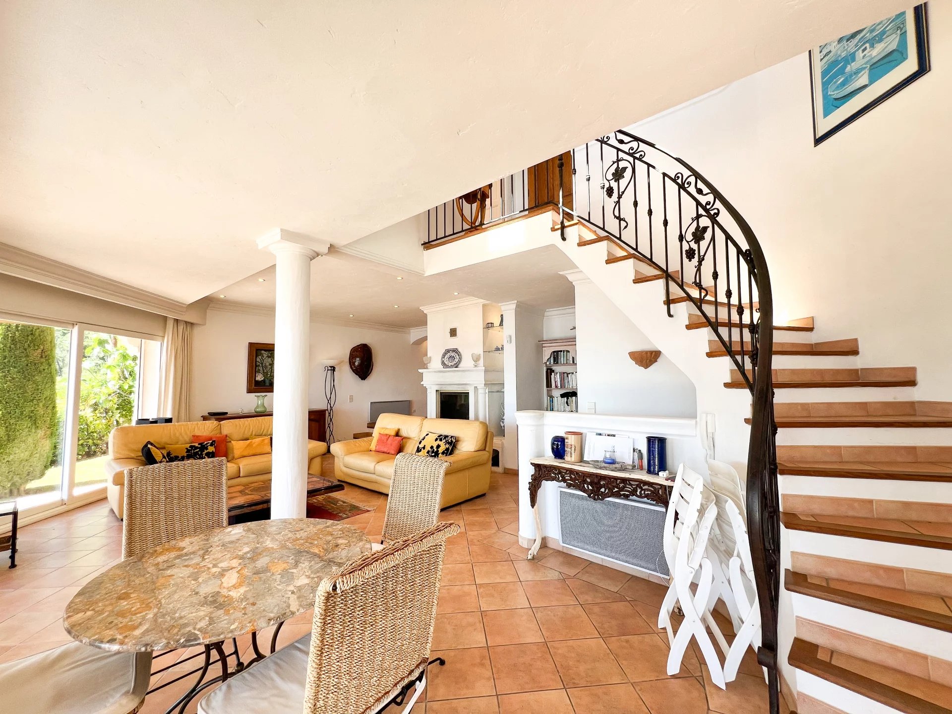 – A spacious double living room with a fireplace, opening seamlessly onto a semi-covered terrace ideal for indoor-outdoor entertaining.