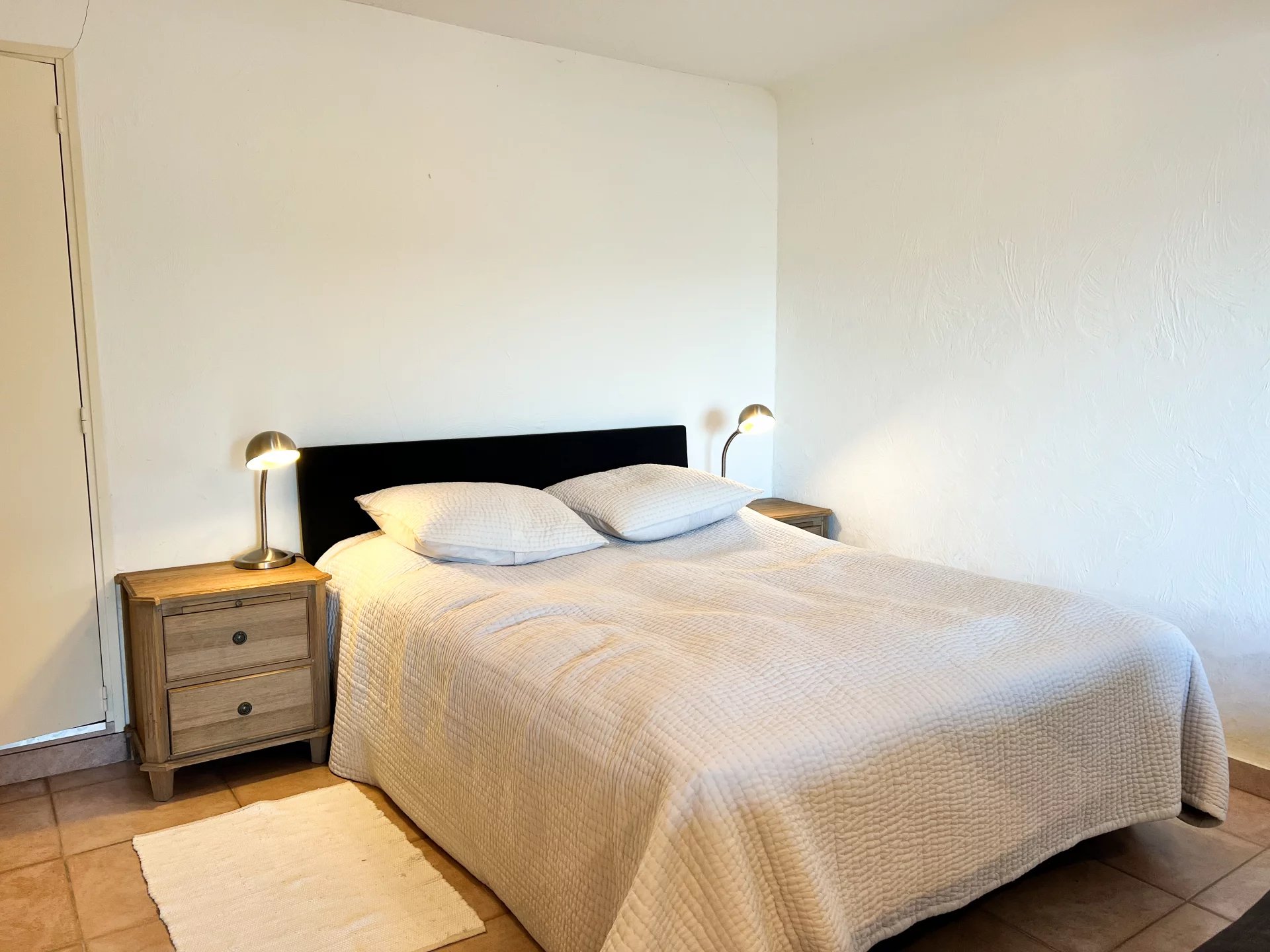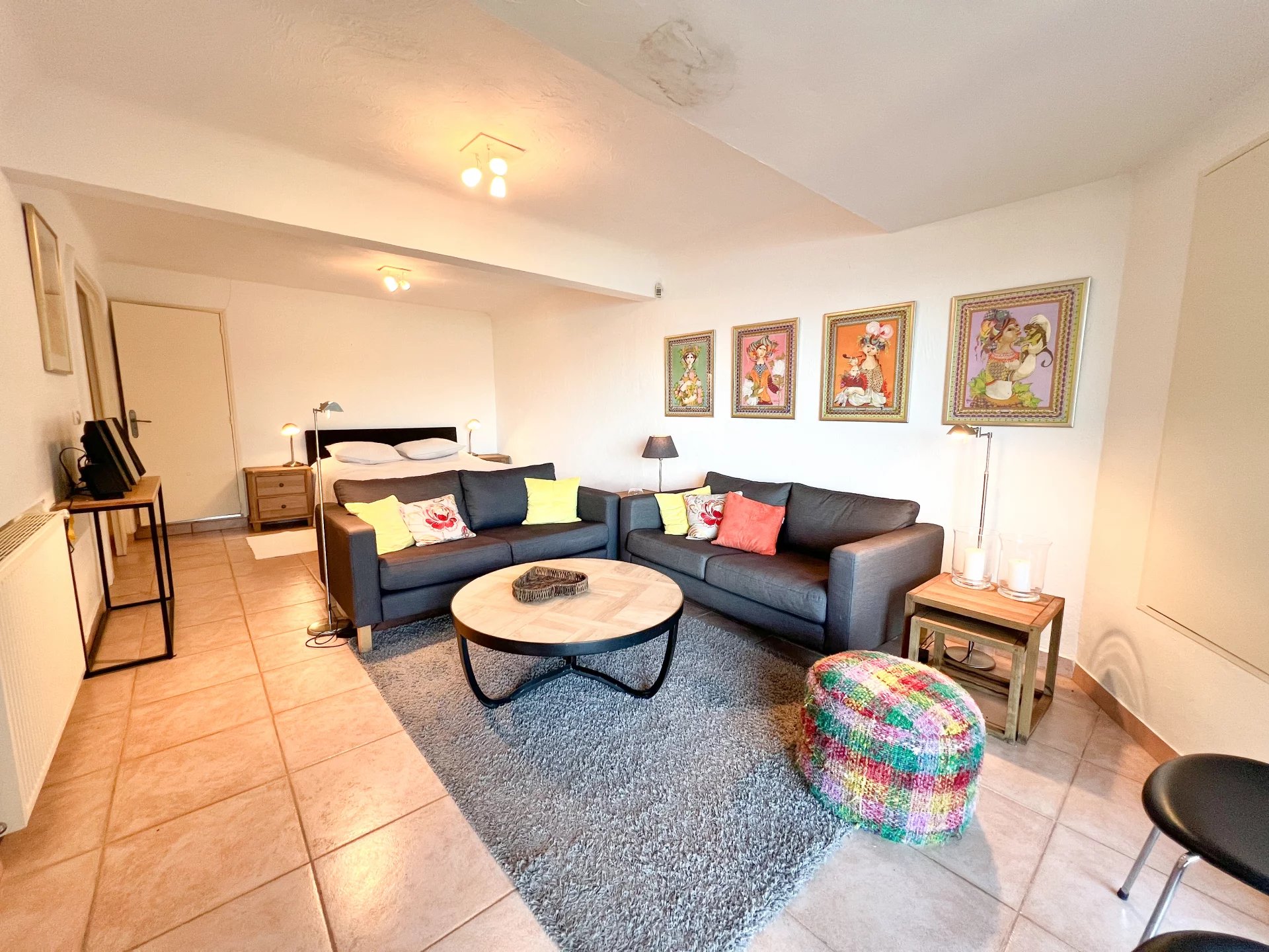 On the ground floor, an apartment with bedroom and bathroom, kitchenette area and storage space.