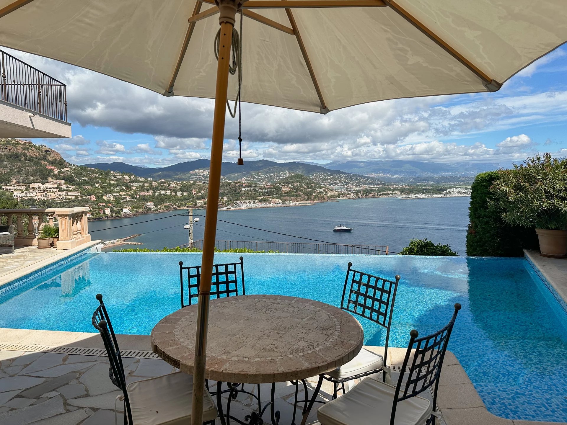 Provencal villa built on 3 levels enjoying a panoramic sea view over the entire bay of Theoule and Cannes, within walking distance of the sandy beaches and the restaurants in Theoule village, 15 minutes drive to Cannes Croisette.