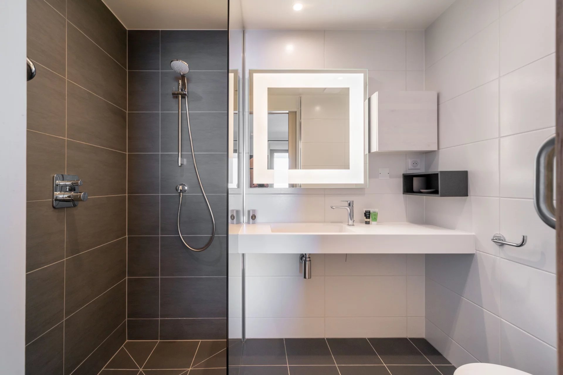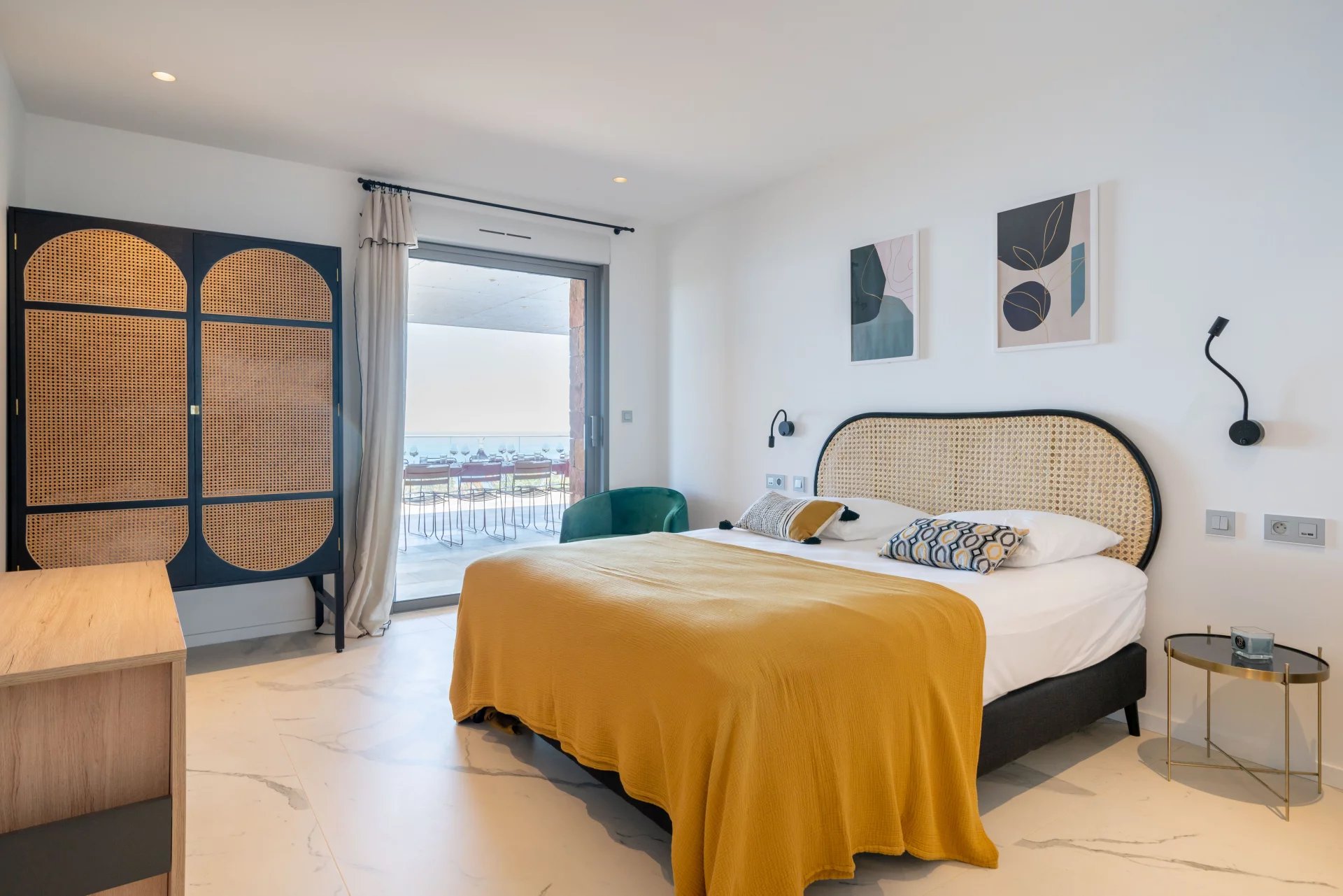 On the first floor, a generous living space opens onto a terrace, accompanied by an open-plan kitchen, dining room and master bedroom with dressing room.