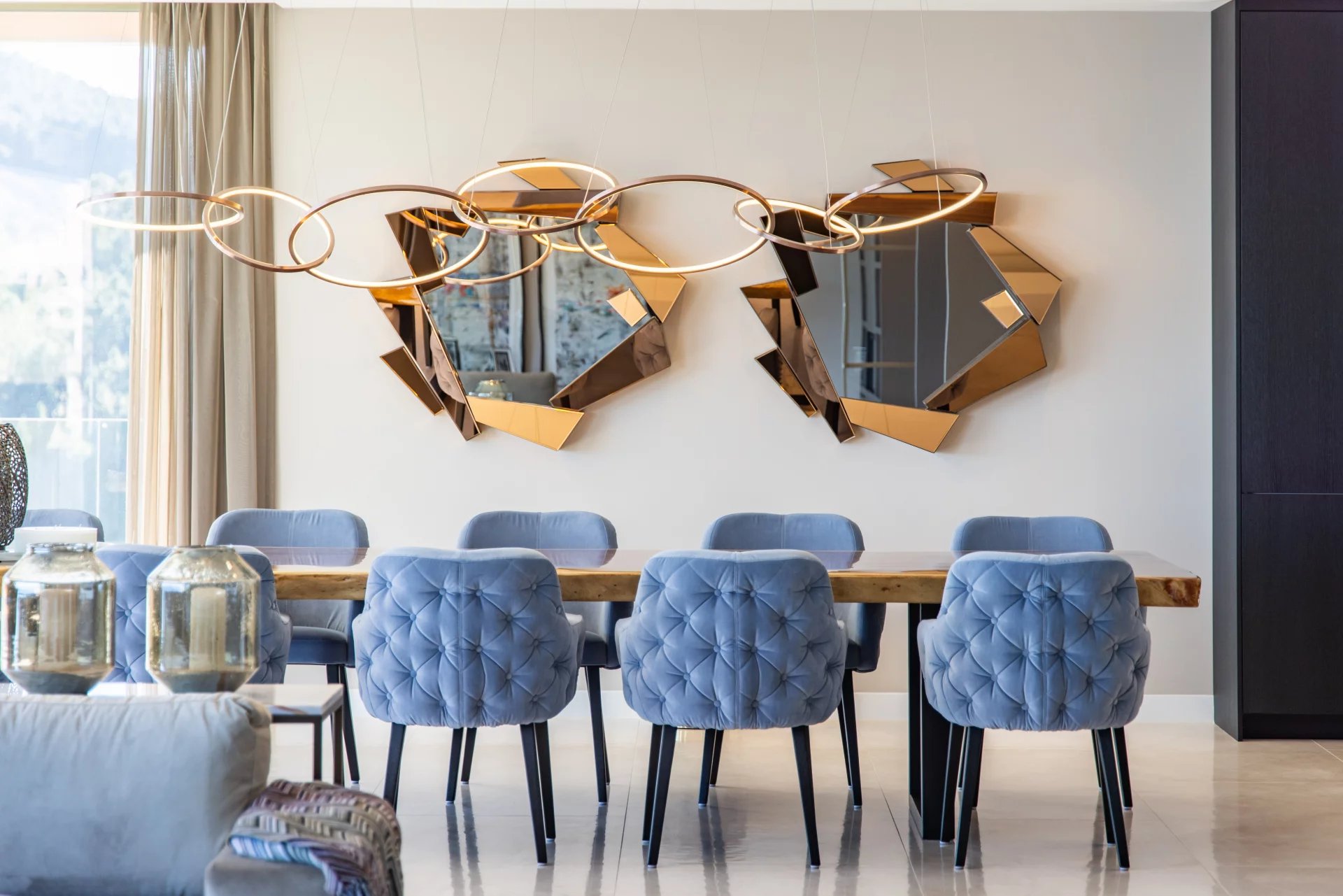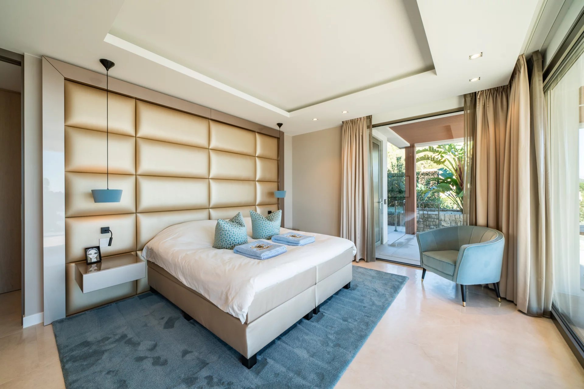 The property includes a total of 7 en-suite bedrooms, each with its own bathroom and/or shower, dressing room, a reception room and a dining room, a large dining kitchen and second dining room, a bar area and wine cellar. At the swimming pool level, a relaxation area with gym, sauna and media lounge, a large terrace surrounds the swimming pool.