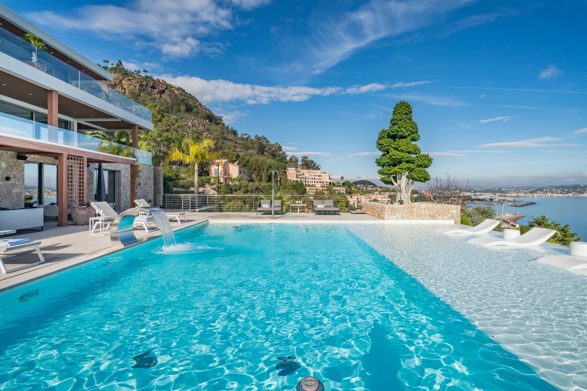 Exceptional property located in the heart of the Bay of Cannes, facing the Lérins Islands, enjoying a breathtaking view of the sea, the ports, the mountains and the Esterel, a few steps from the beaches and shops of the village of Théoule sur Mer .