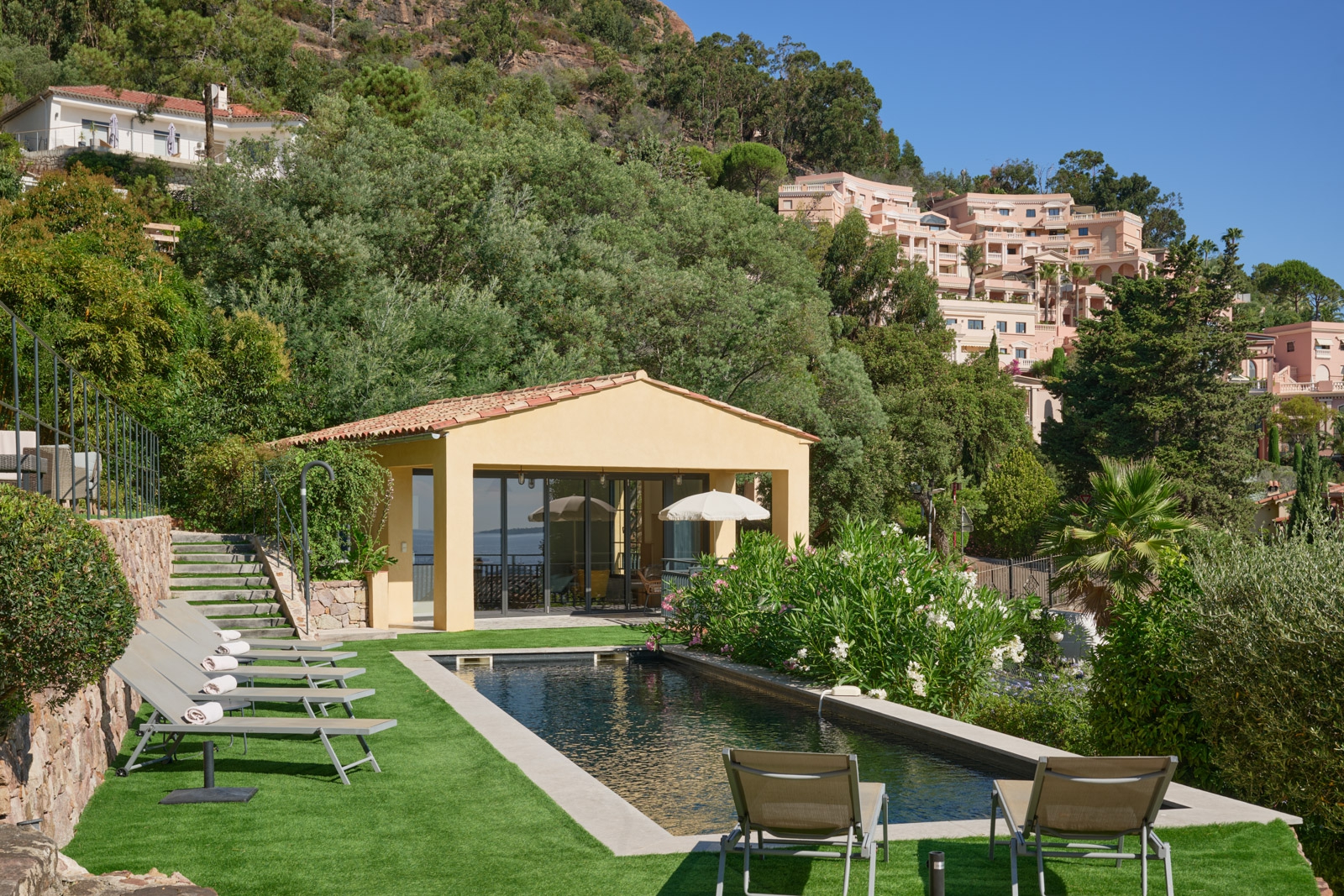 This is a rare opportunity to acquire an exceptional home in one of the Côte d’Azur’s most desirable locations, the beautiful beaches, shops and restaurants of Theoule are just a short stroll away, as well as the incredible Chateau de Theoule luxury hotel.