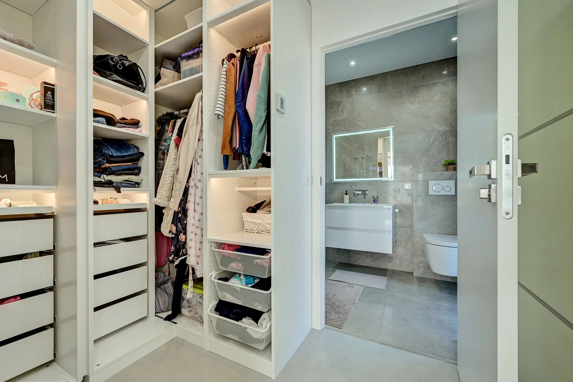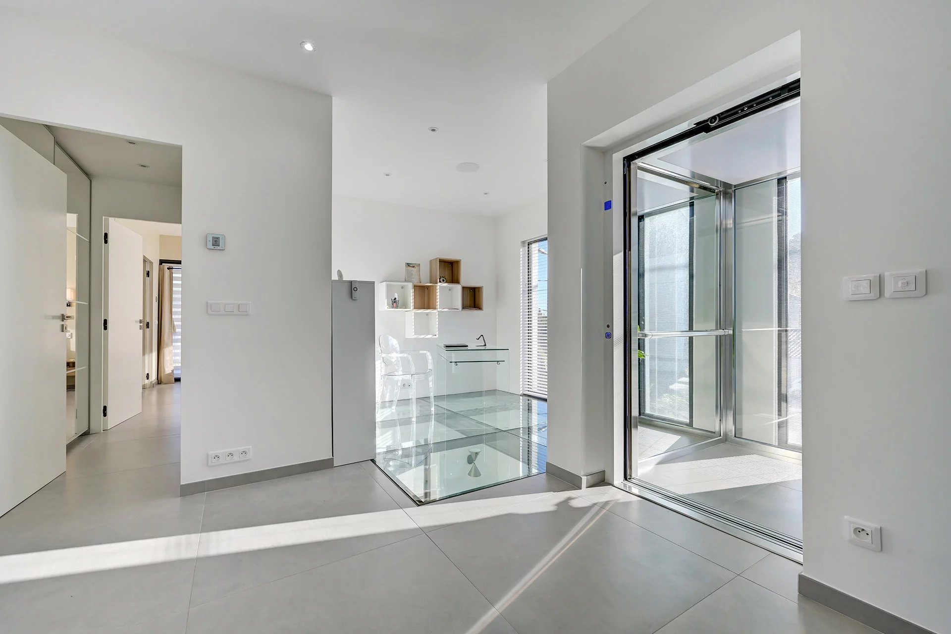 The ground floor offers a first guest bedroom with bathroom and cupboards as well as a toilet. Upstairs, three bedrooms offering comfort and elegance, including a sumptuous master suite with dressing room and private shower room, a shower room, an office space and a Japanese toilet. An elevator serves all levels, for optimal convenience.