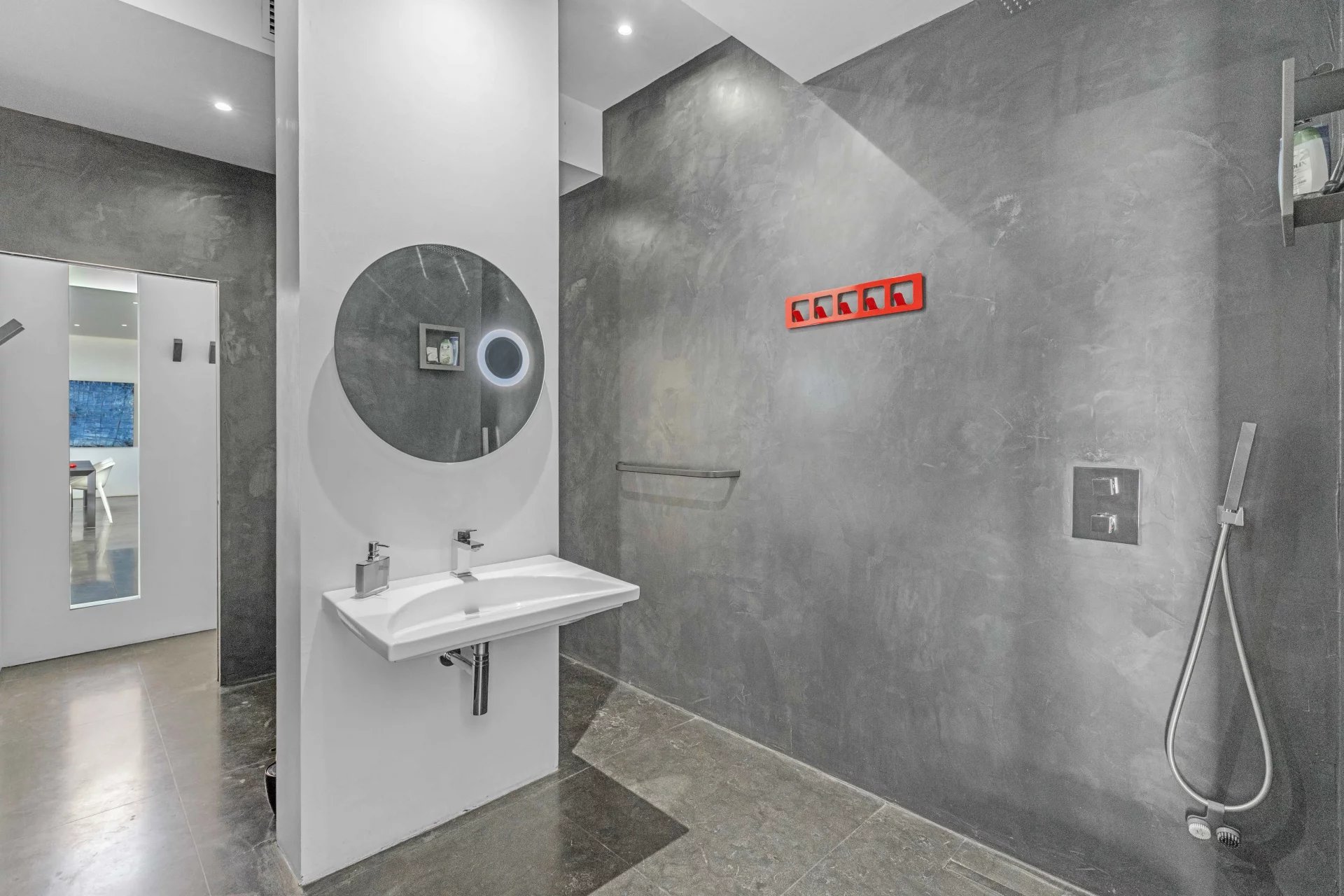 The heart of the home features a generous 120 m2 living area, enhanced by expansive sliding glass doors, opening directly onto a 200 m2 terrace and an infinity-edge mirror pool, creating a harmonious flow between interior and exterior spaces.