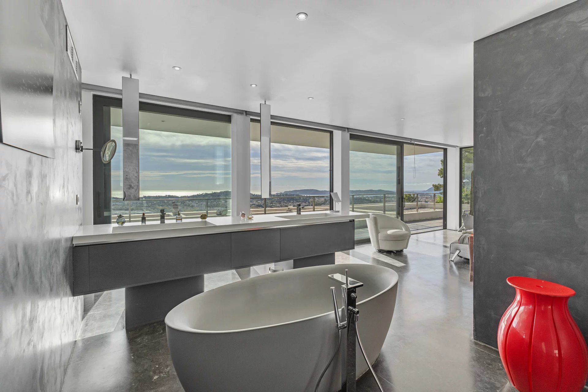 Perched on the heights of Toulon, this contemporary villa of over 300 m2 unfolds on a landscaped 4,000 m2 plot, offering a unique 360 degree panorama encompassing the sea, city, and surrounding hills.