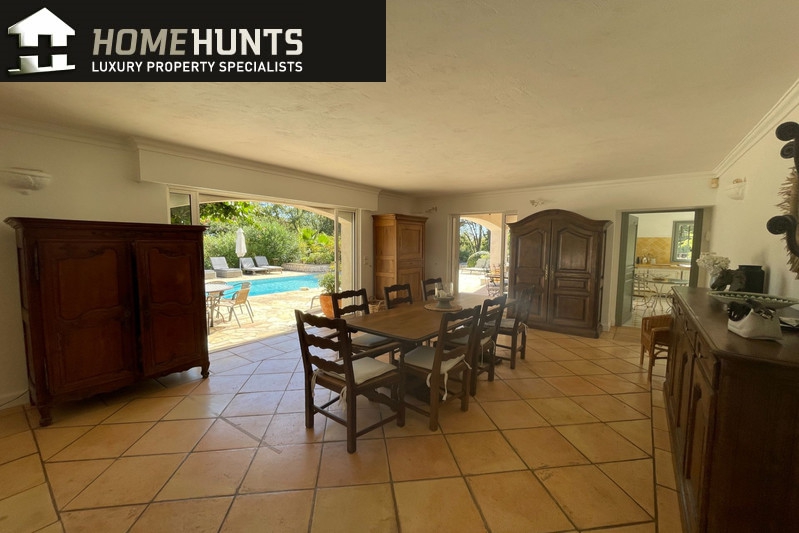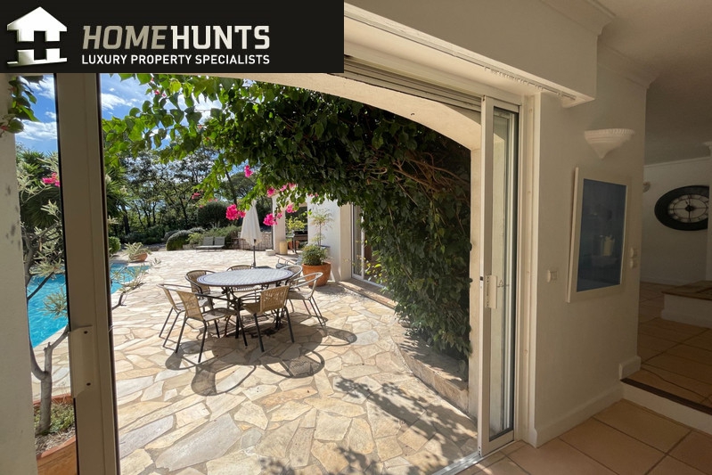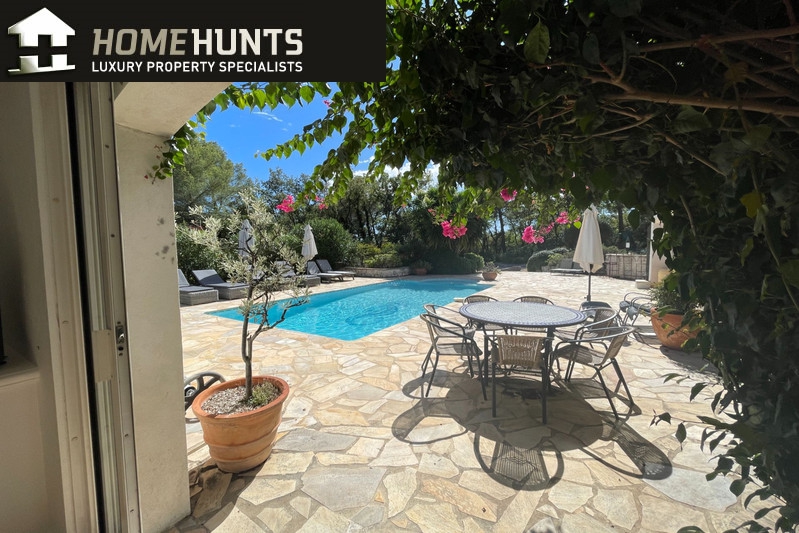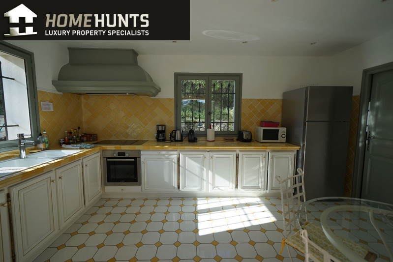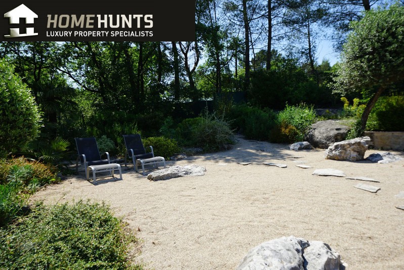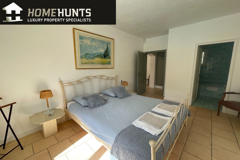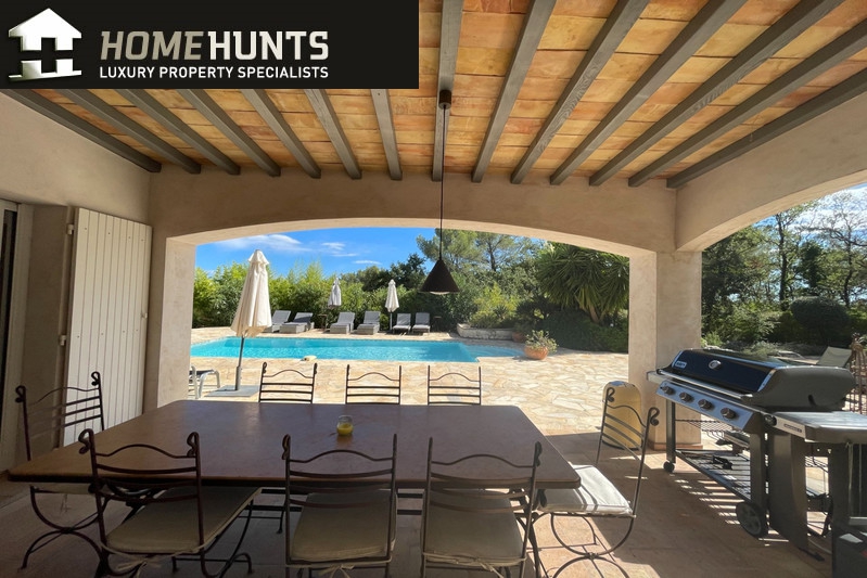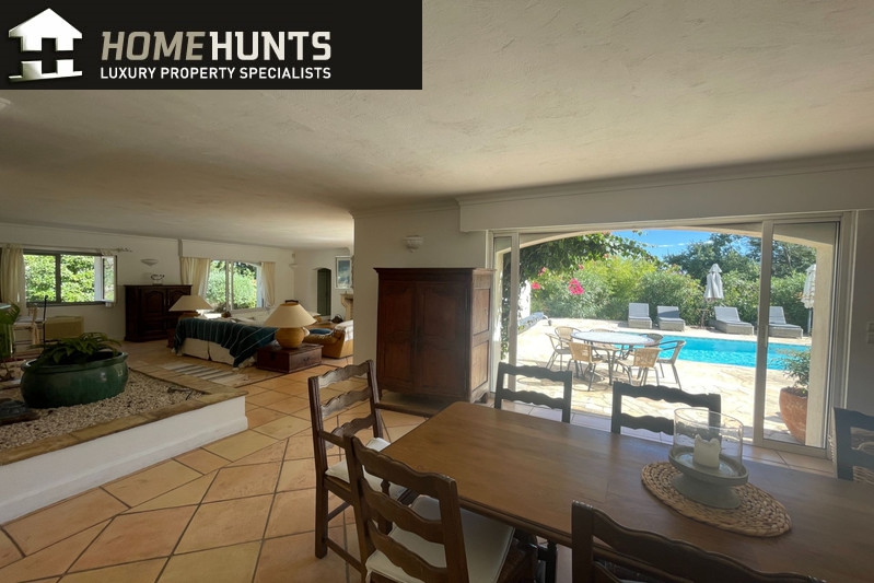Quiet, 2 km south of the village, superb villa (1995) 200 m2 living space on 2500 m2 enclosed with trees in two large flat terraces.