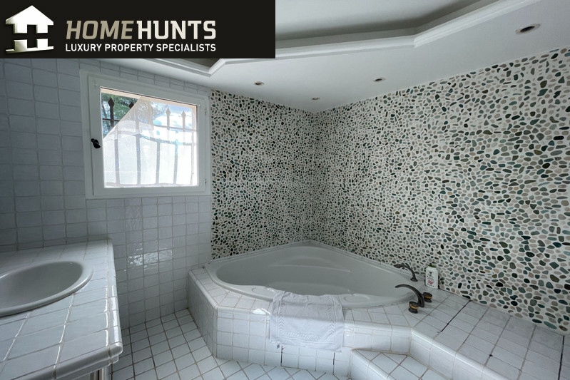 Upstairs : Large bedroom three, bay window onto large solarium terrace Large bathroom with large oval bathtub, separate toilet. Bedroom four: French window onto solarium terrace, walk-in shower room, cupboard.