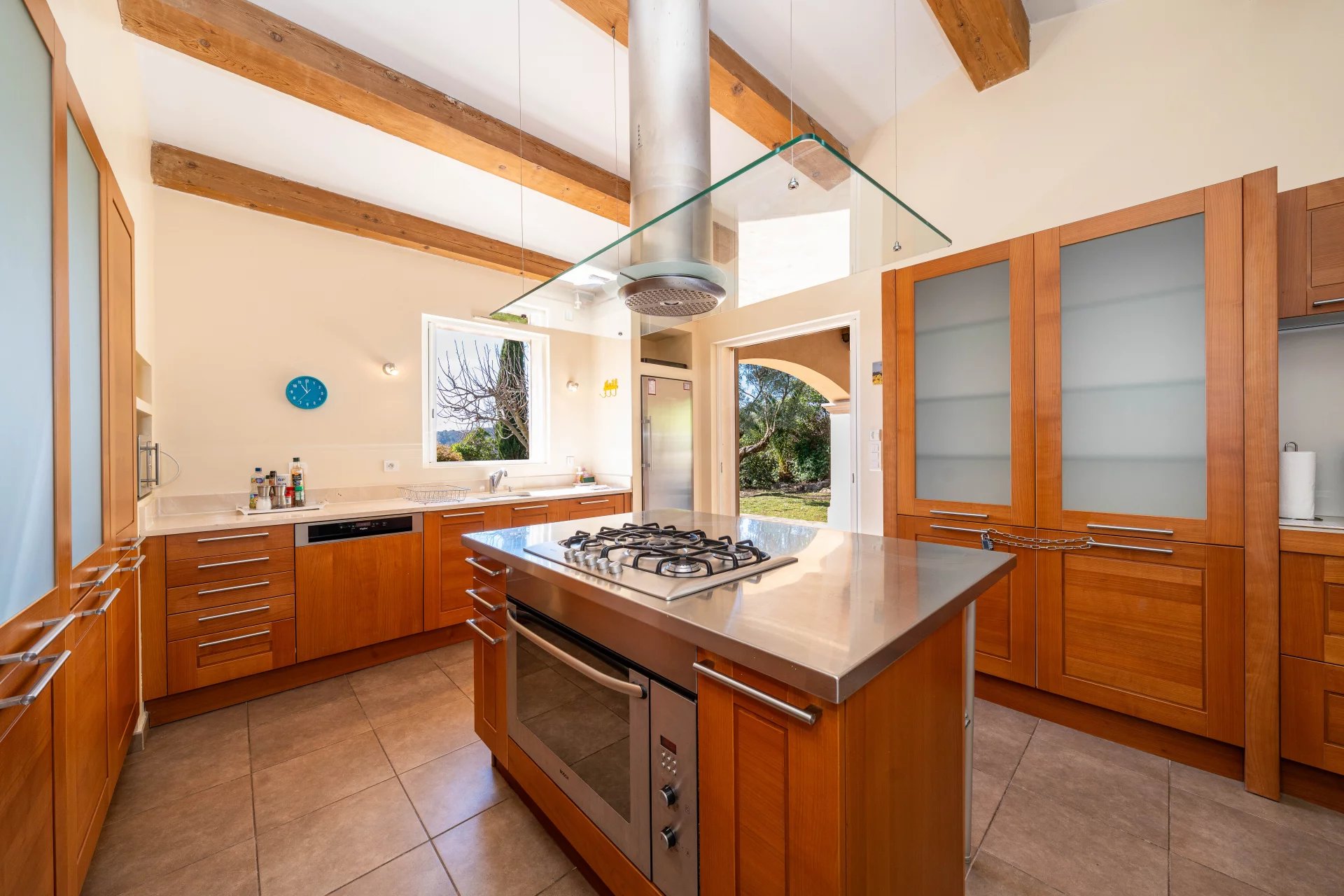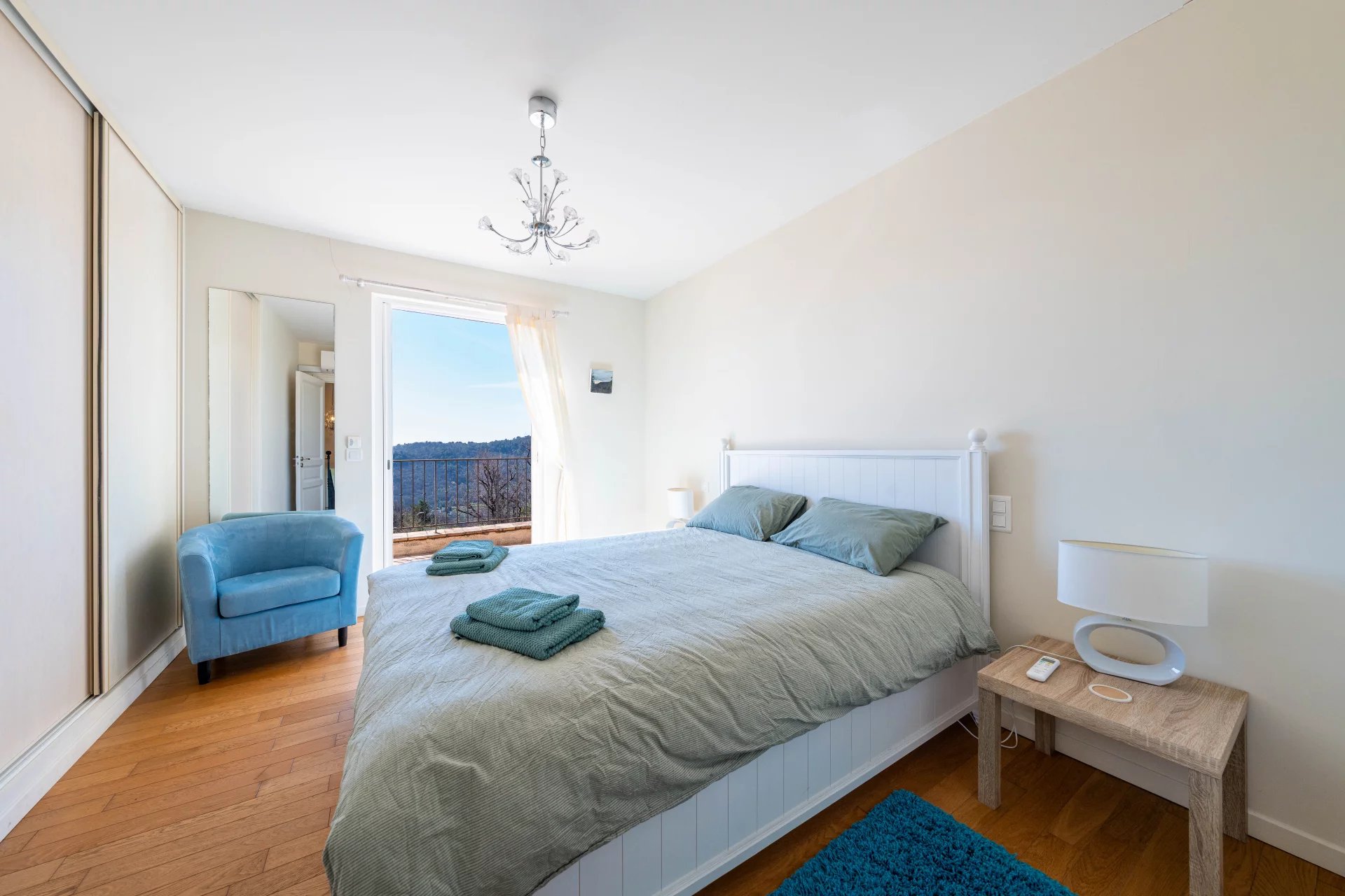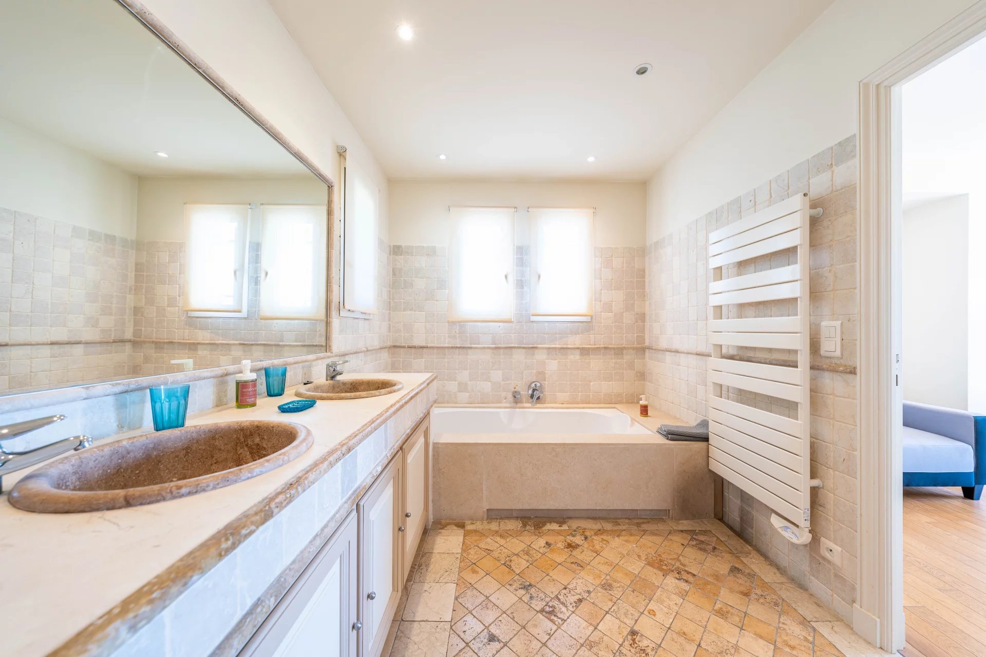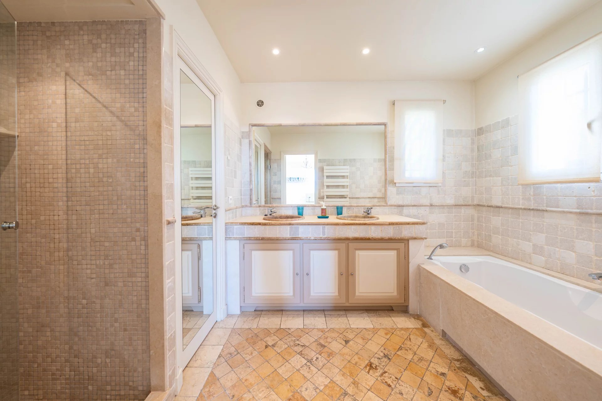 – Upstairs: a master bedroom with en-suite bathroom and dressing room, 2 bedrooms, a bathroom. Each bedroom opens onto a south-facing terrace.