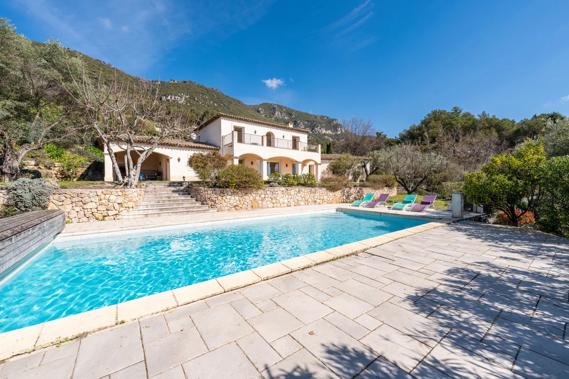 Beautiful 2400m2 plot of land planted with Mediterranean species with 11×5 meter mosaic swimming pool.