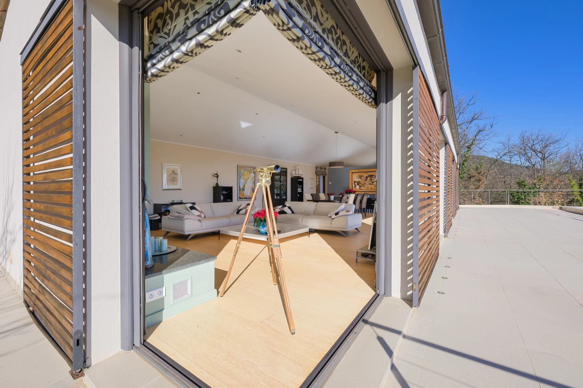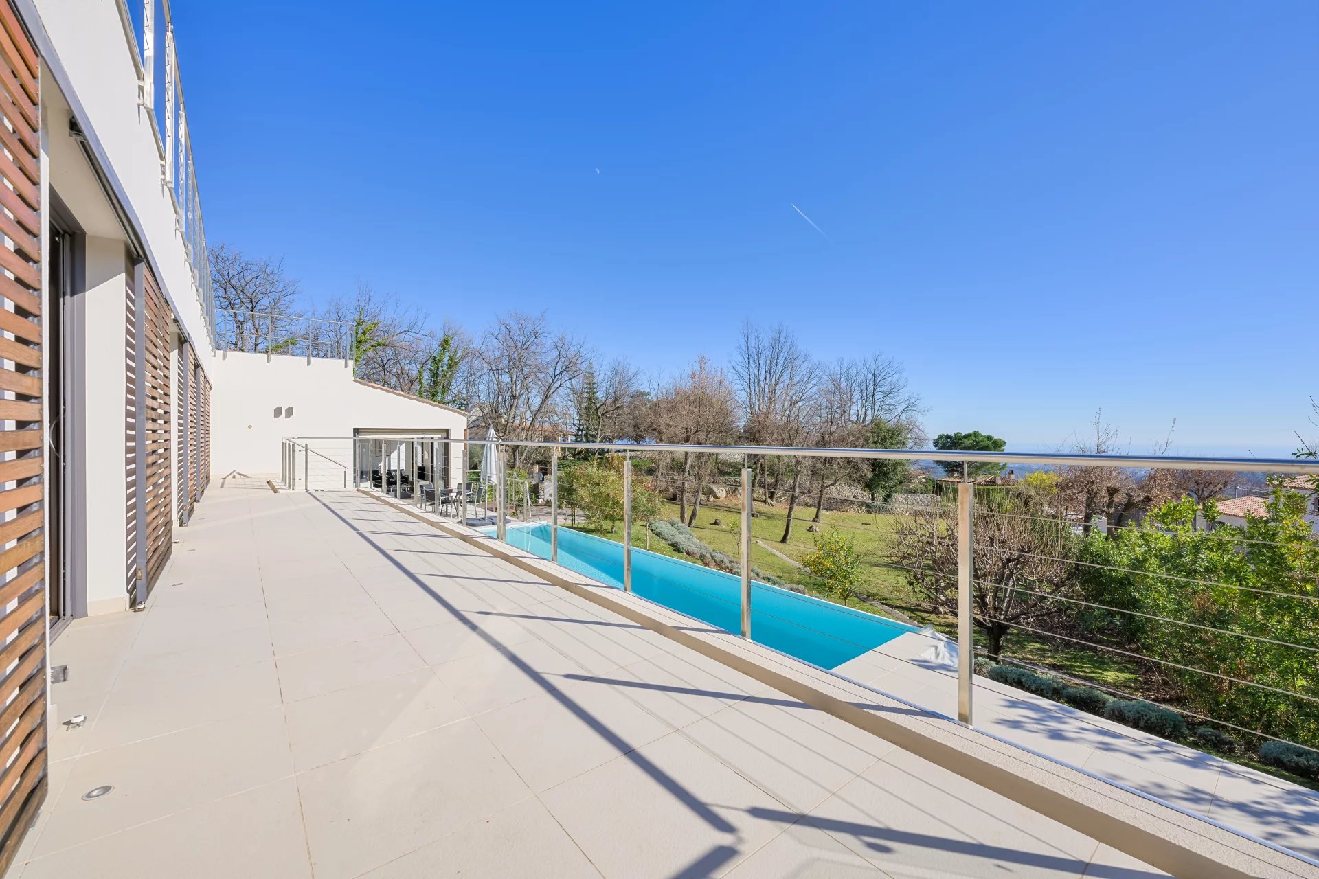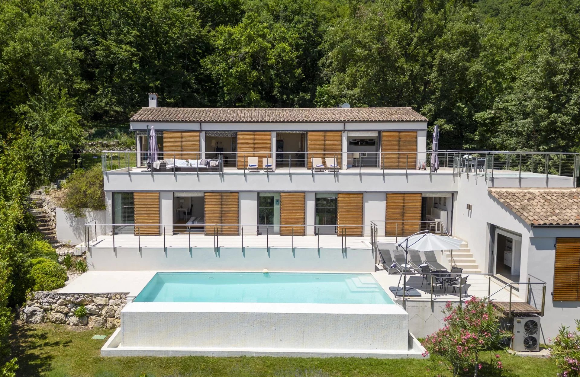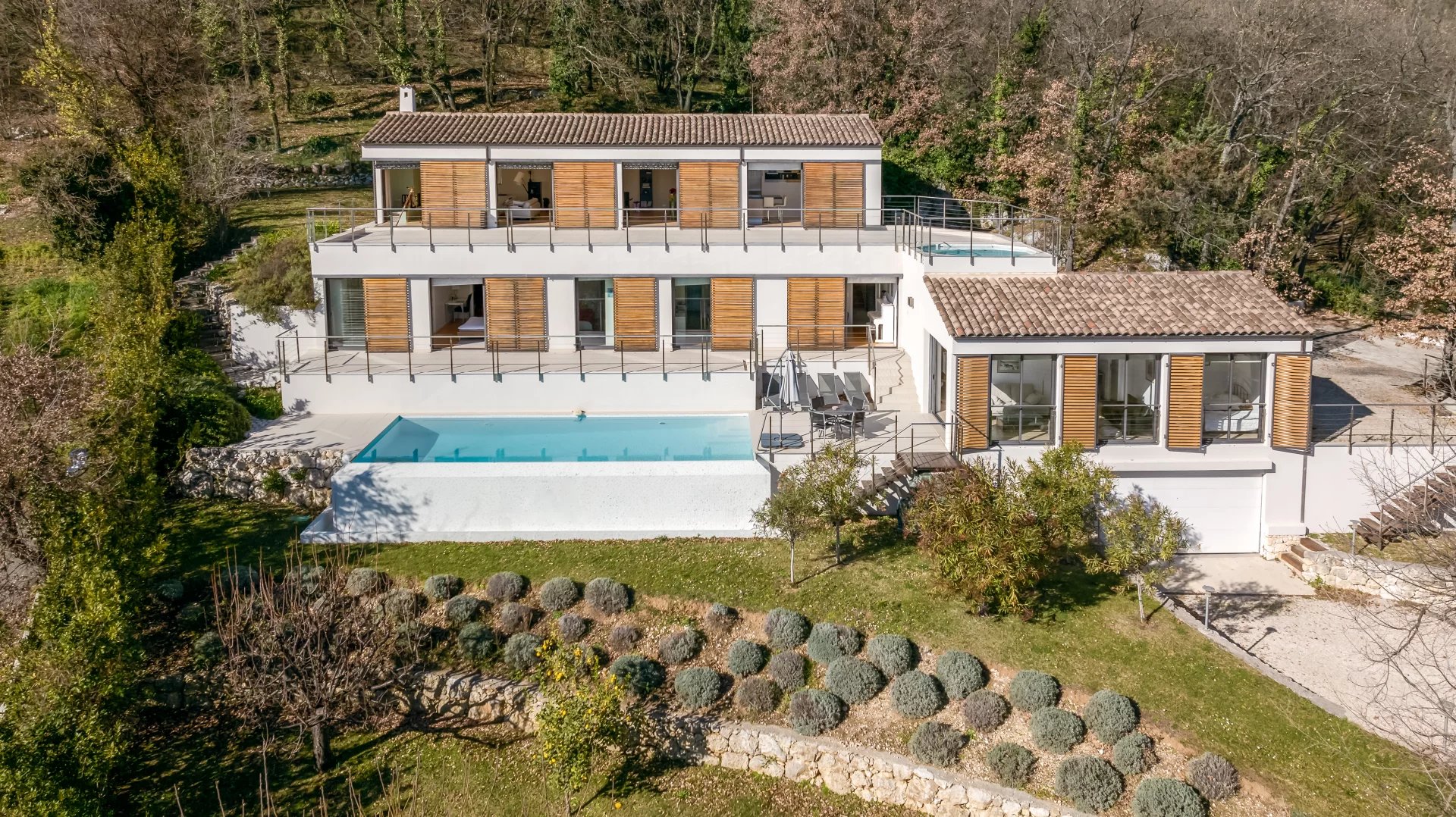 Located near the charming village of Tourrettes-sur-Loup, this stunning modern villa combines contemporary elegance with high-quality materials.