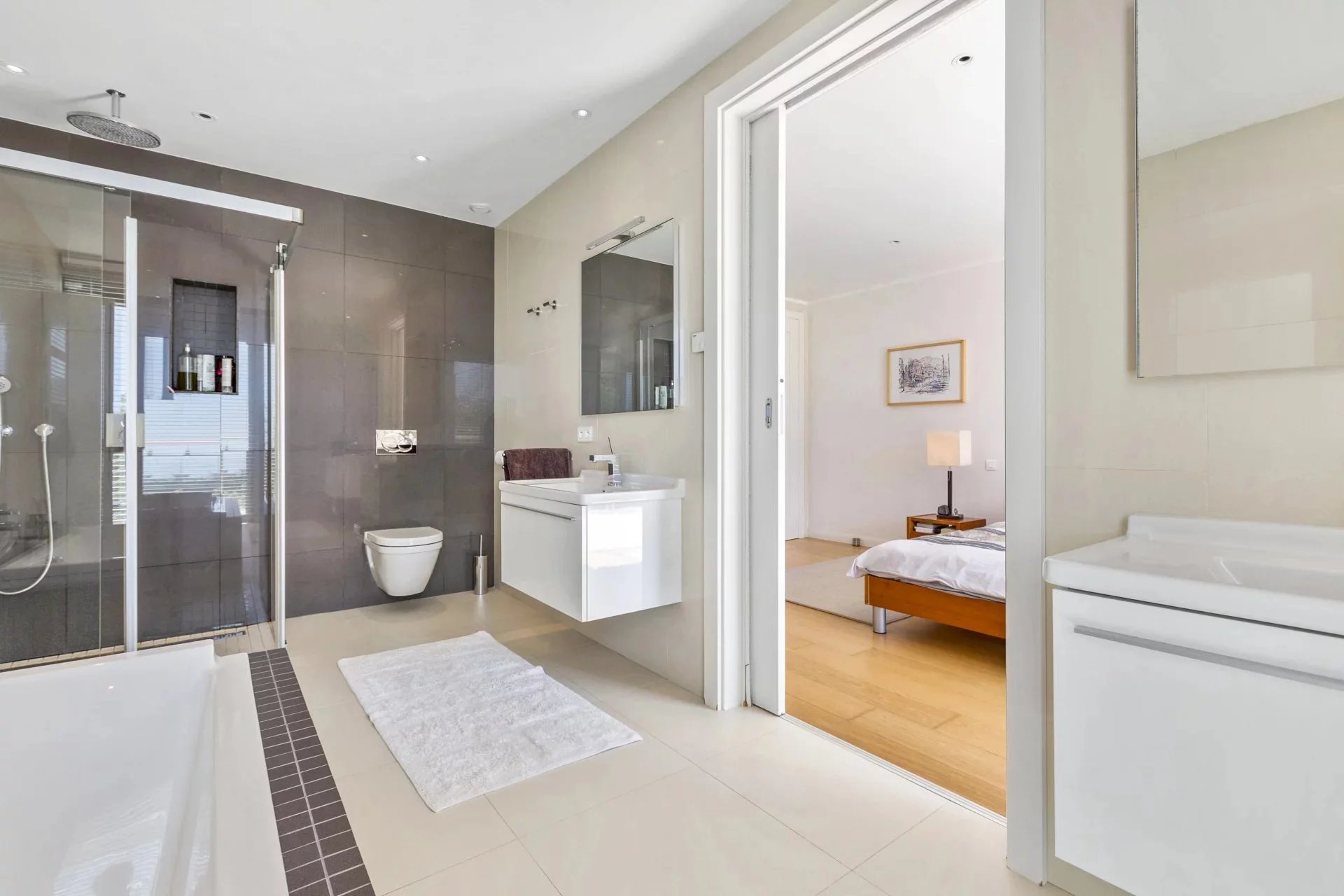 On the lower level, the night area includes three elegant suites, one of which is a luxurious master suite with a large dressing room and a full bathroom. The two additional bedrooms each feature their own shower rooms and toilets. A fourth bedroom, with an independent shower room and guest toilets, completes this level. All these rooms open onto a large terrace leading to the pool, offering stunning views.