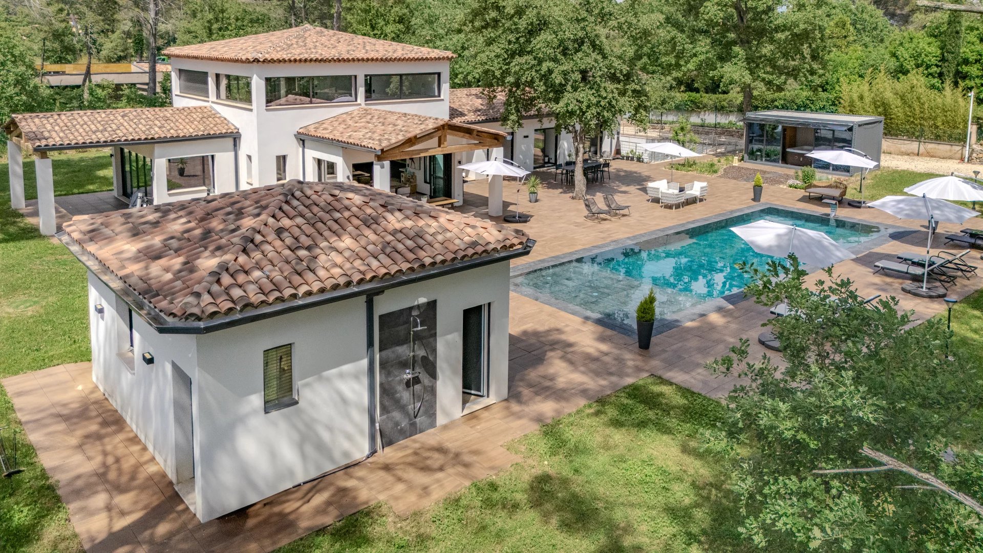 In a sought-after residential environment, in absolute calm and close to the prestigious Terre Blanche estate, discover this contemporary architect-designed villa built in 2023, with a total surface area of approx. 543 m2, set on a 4,200 m2 flat plot.