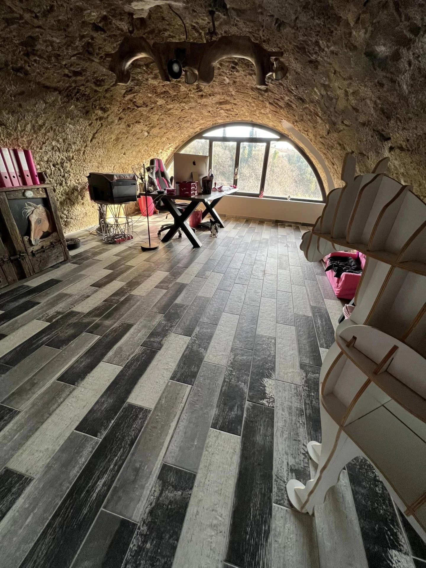 – Split level, an office (28 m2) convertible into a bedroom with a view of the river