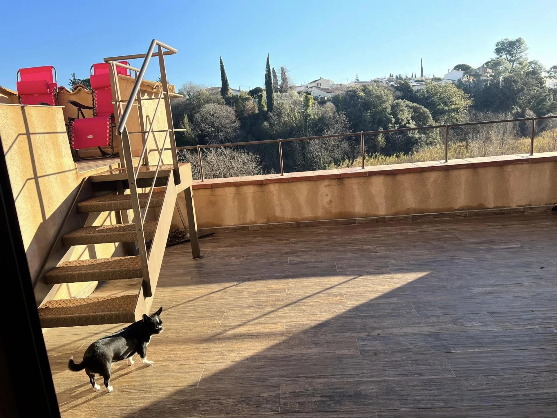 – The first floor is fitted out with a kitchen, a bedroom, a bathroom, a shower room, a dressing room, a mezzanine. This 100 m2 space can easily be rearranged and transformed into several bedrooms. Everything opens onto a magnificent terrace (20m2)