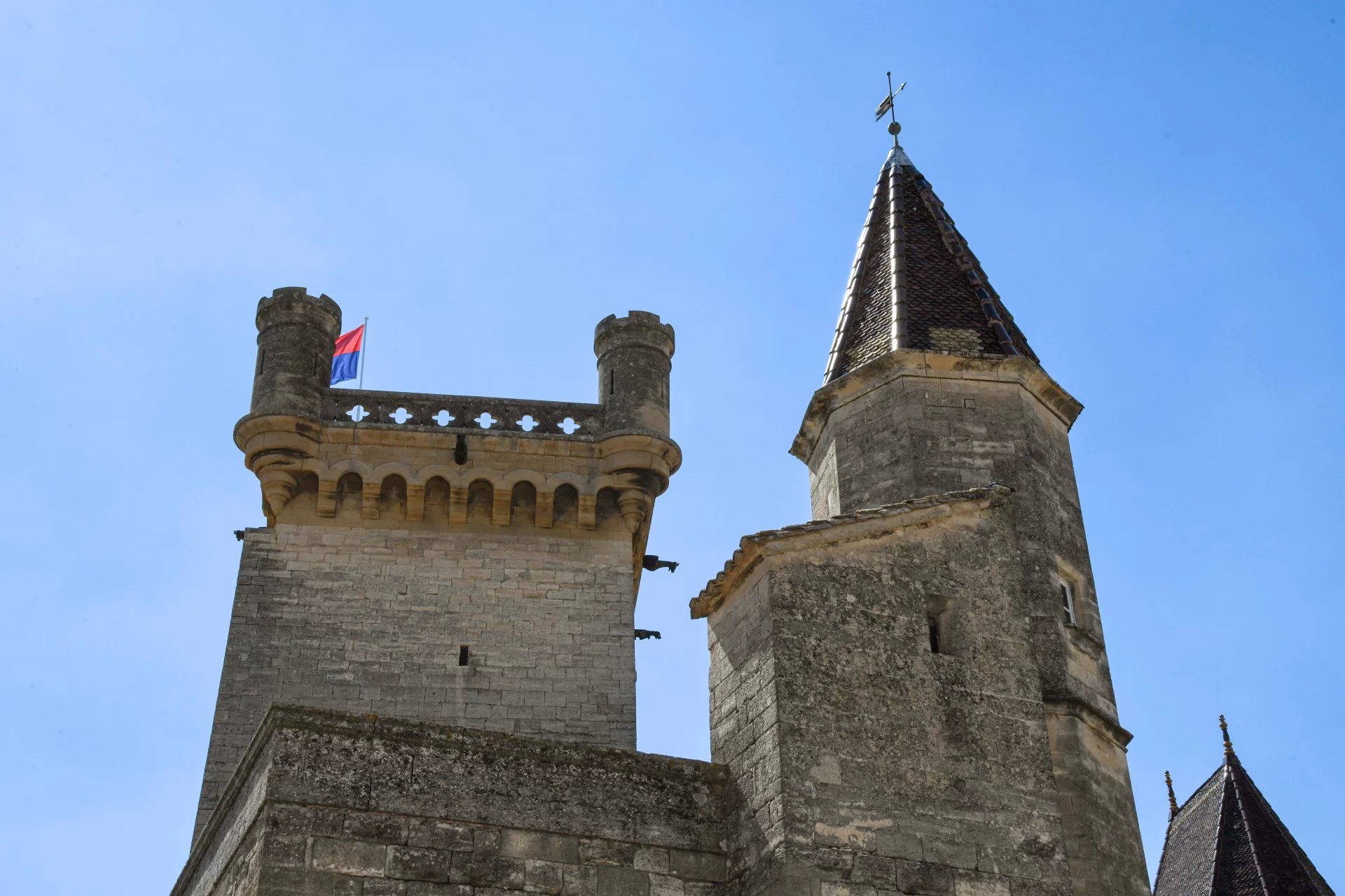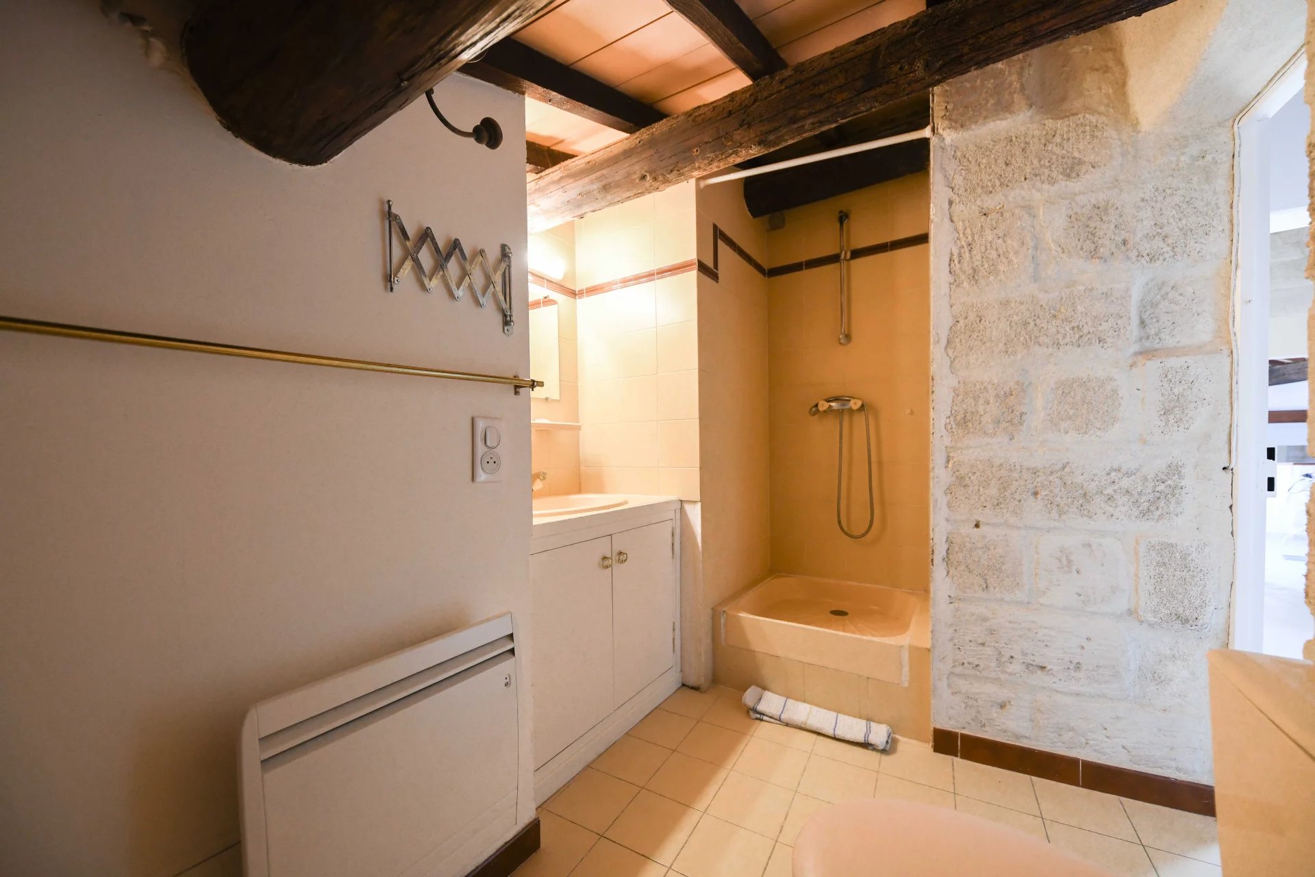 On the second floor of a typical Uzes stone building, the entrance hall provides useful storage space. The large window offers a first view of the duchy, the king’s tower and the rooftops of the town.