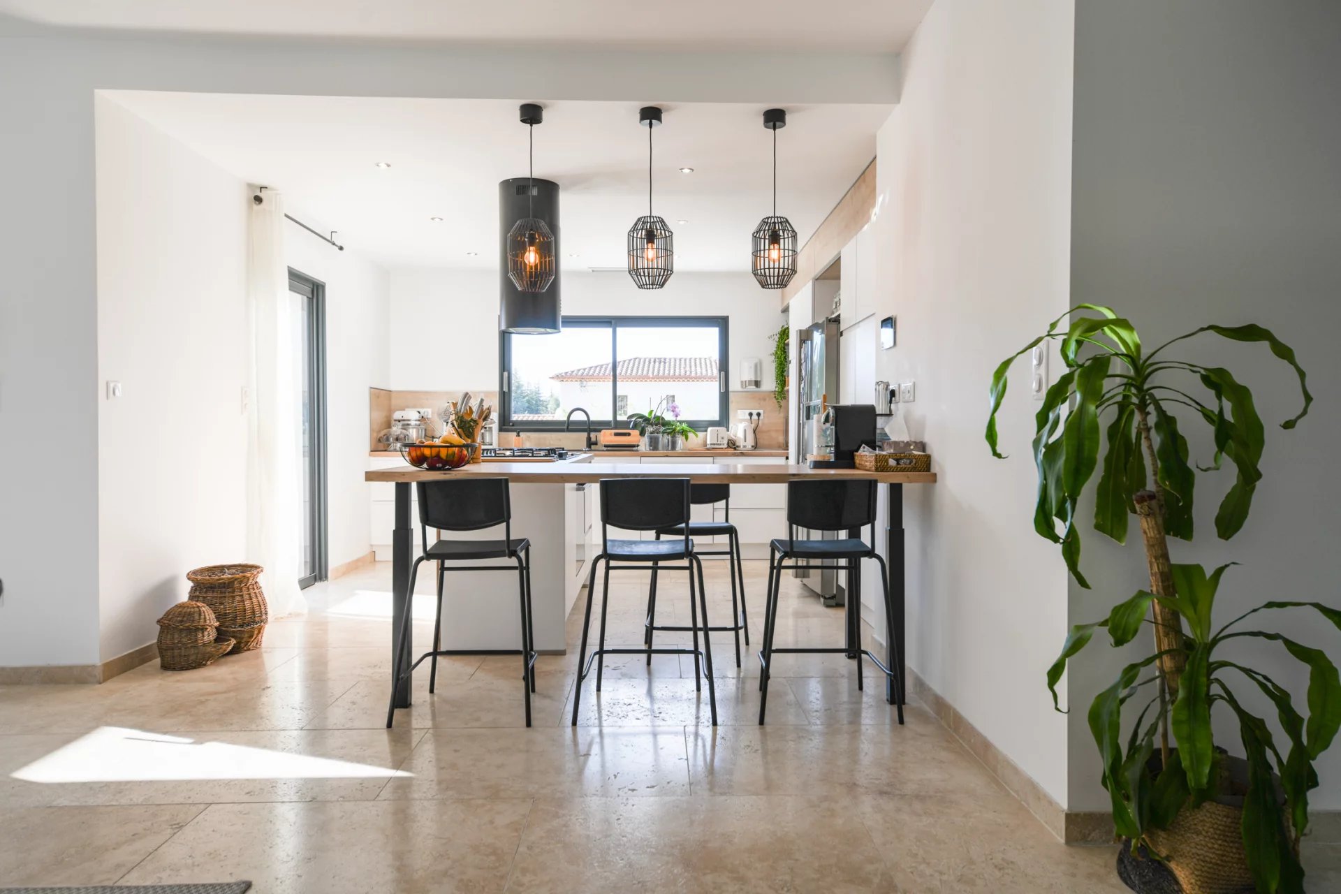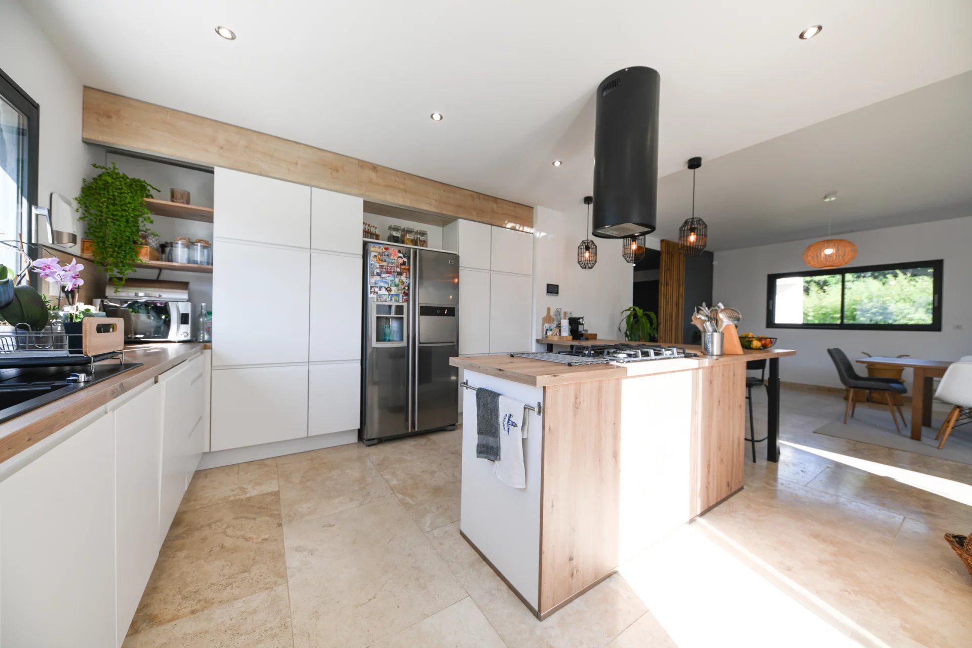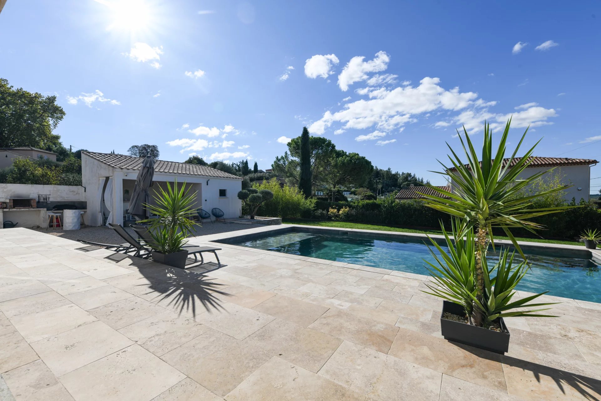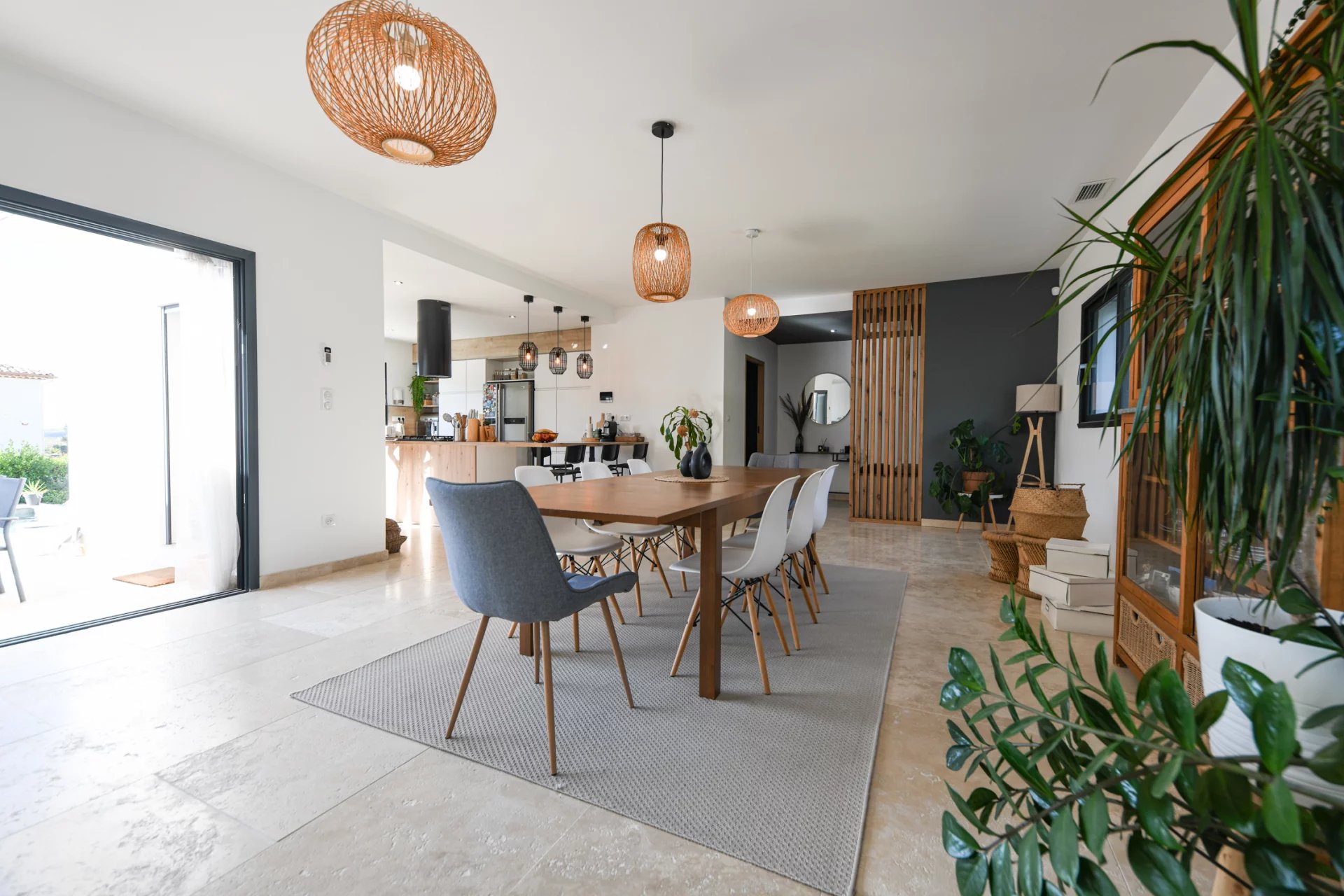 Built in 2021, this property consists of an entrance serving a double living room of 70 m2 traversing and bright overlooking the terrace and pool, a kitchen, three spacious bedrooms, one en suite, separate toilet and additional bathroom, Cellar, laundry room and spacious “garage” of 32 m2 (heated and insulated) offering the possibility of creating a fourth bedroom or workplace.