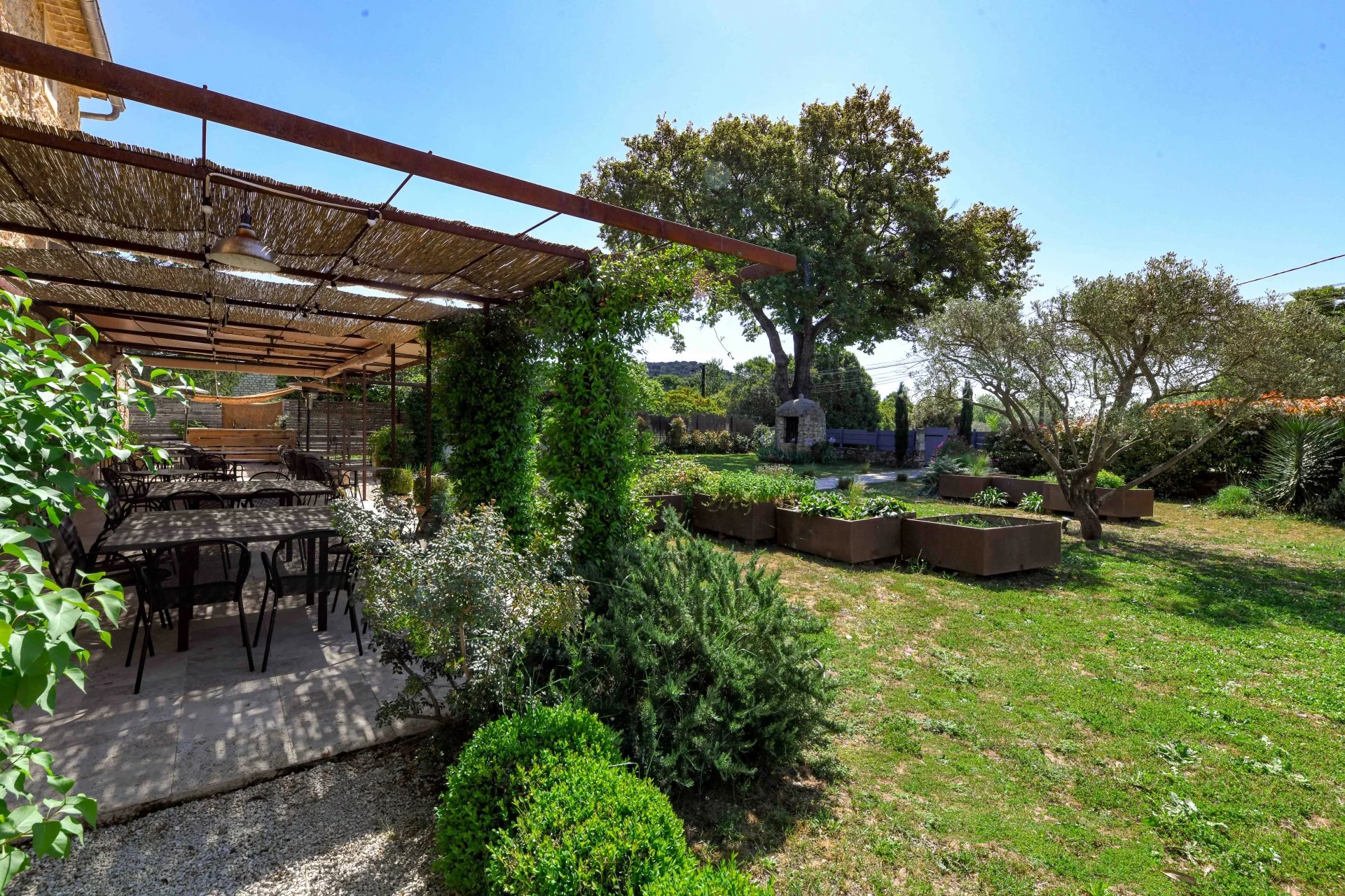 The 1,705 m2 garden surrounds the property, giving it privacy, and features large lawns, major trees, attractive flowerbeds and a well.