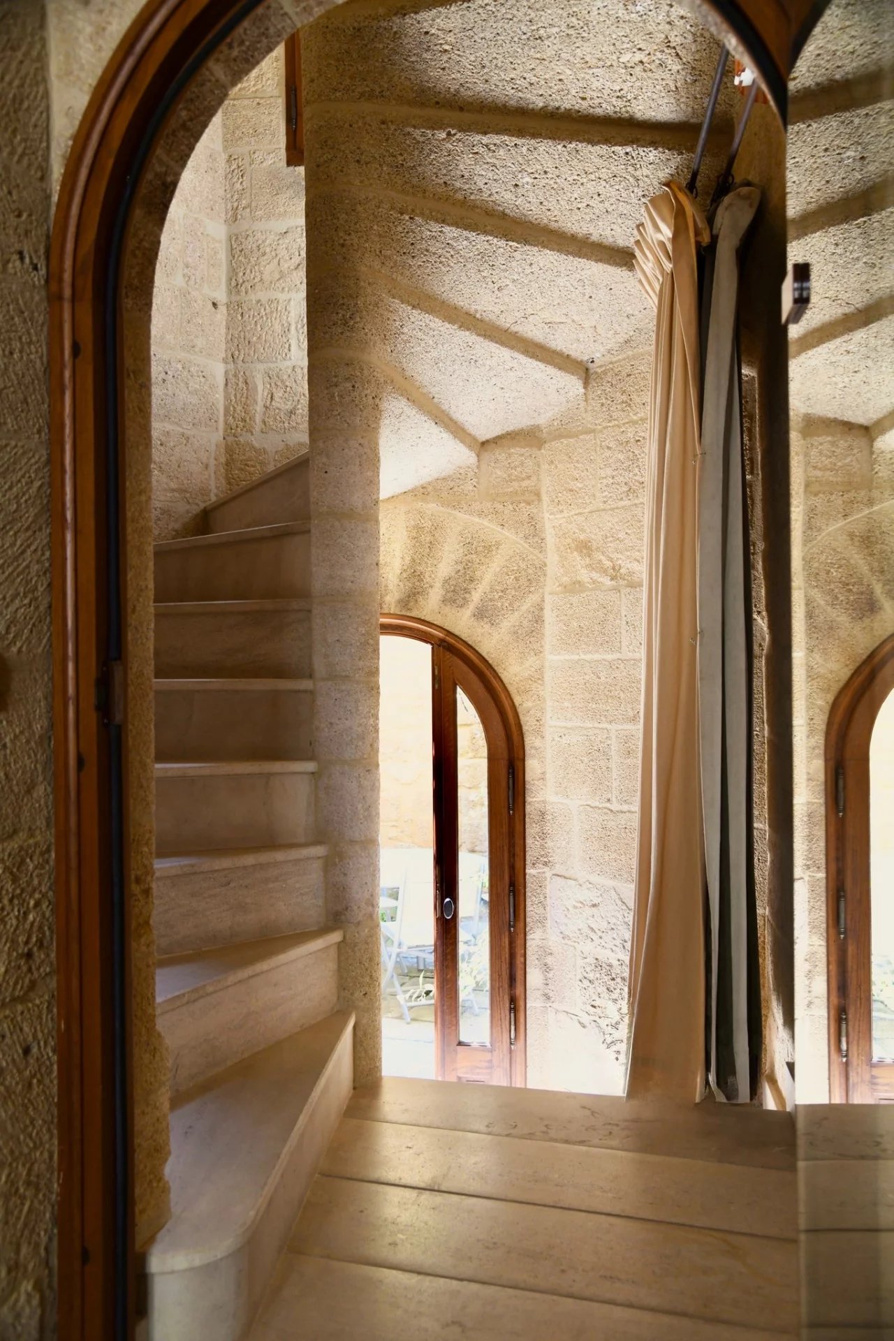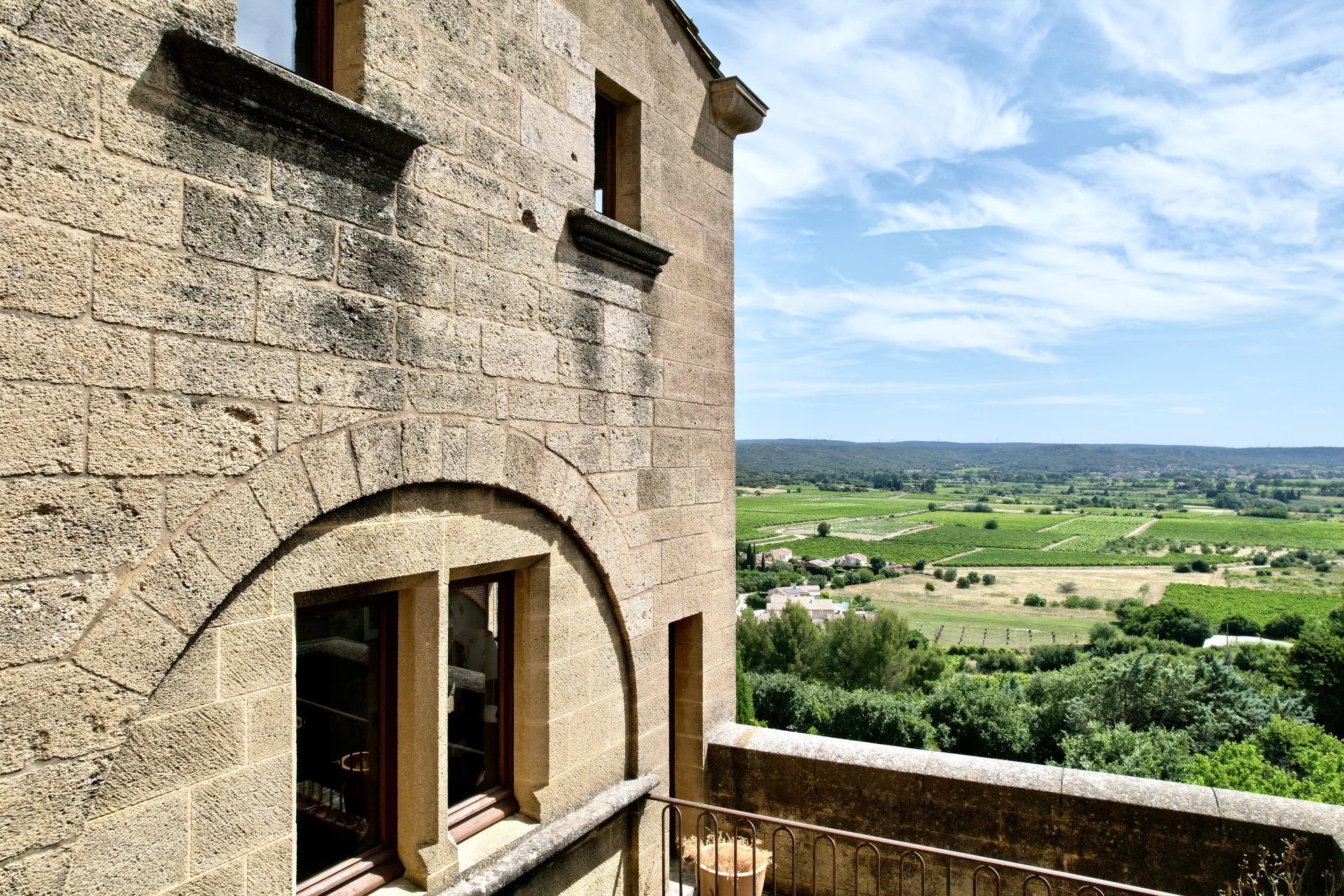 From the spiral staircase or the lift, the first floor offers a second living area. Two lounges of 43 and 25 m2 offer spacious accommodation and old-world charm: mullioned windows, ceiling beams, solid wood parquet flooring and terracotta floor tiles. Unique views over an unspoilt panorama, the landscaped courtyard, the surrounding countryside, vineyards, farmland, hills and the Alpilles. A wrap-around balcony provides a small, refreshing outdoor space from the large lounge overlooking one of the village’s ancient gateways.
