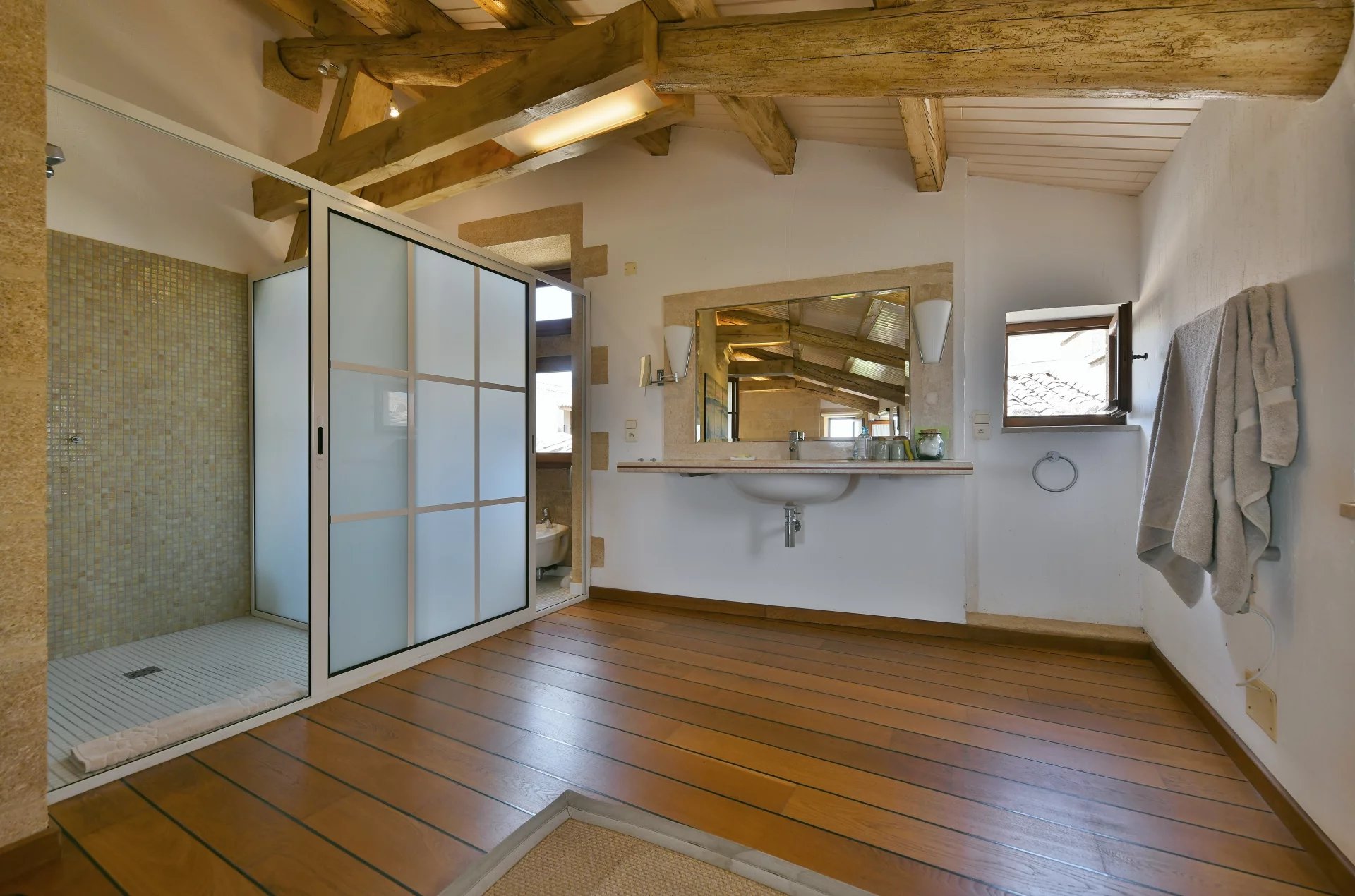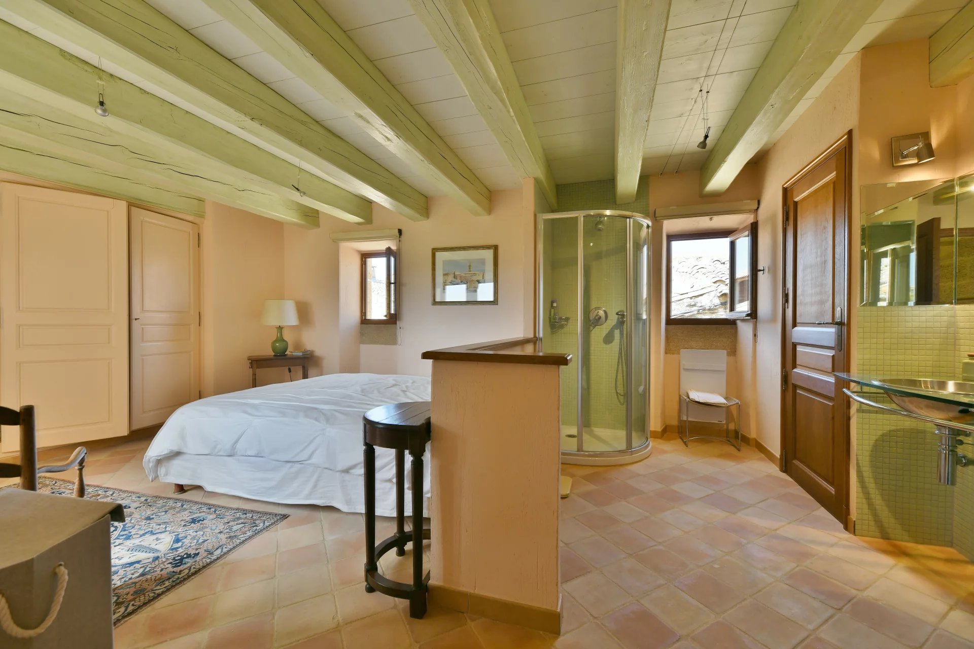 On the second floor, there are two suites and a bedroom with breathtaking views. The first suite, the main one, accessible by lift or main staircase, offers a comfortable volume of over 42 m2 divided into two open spaces, a bedroom overlooking the valley, countryside and hills and the large bathroom on the old village side. The second 25 m2 suite offers a bedroom opening onto a bathroom and a dressing room with storage space. The third bedroom offers the same views as the master suite.