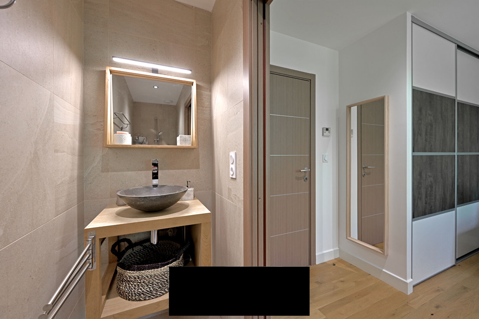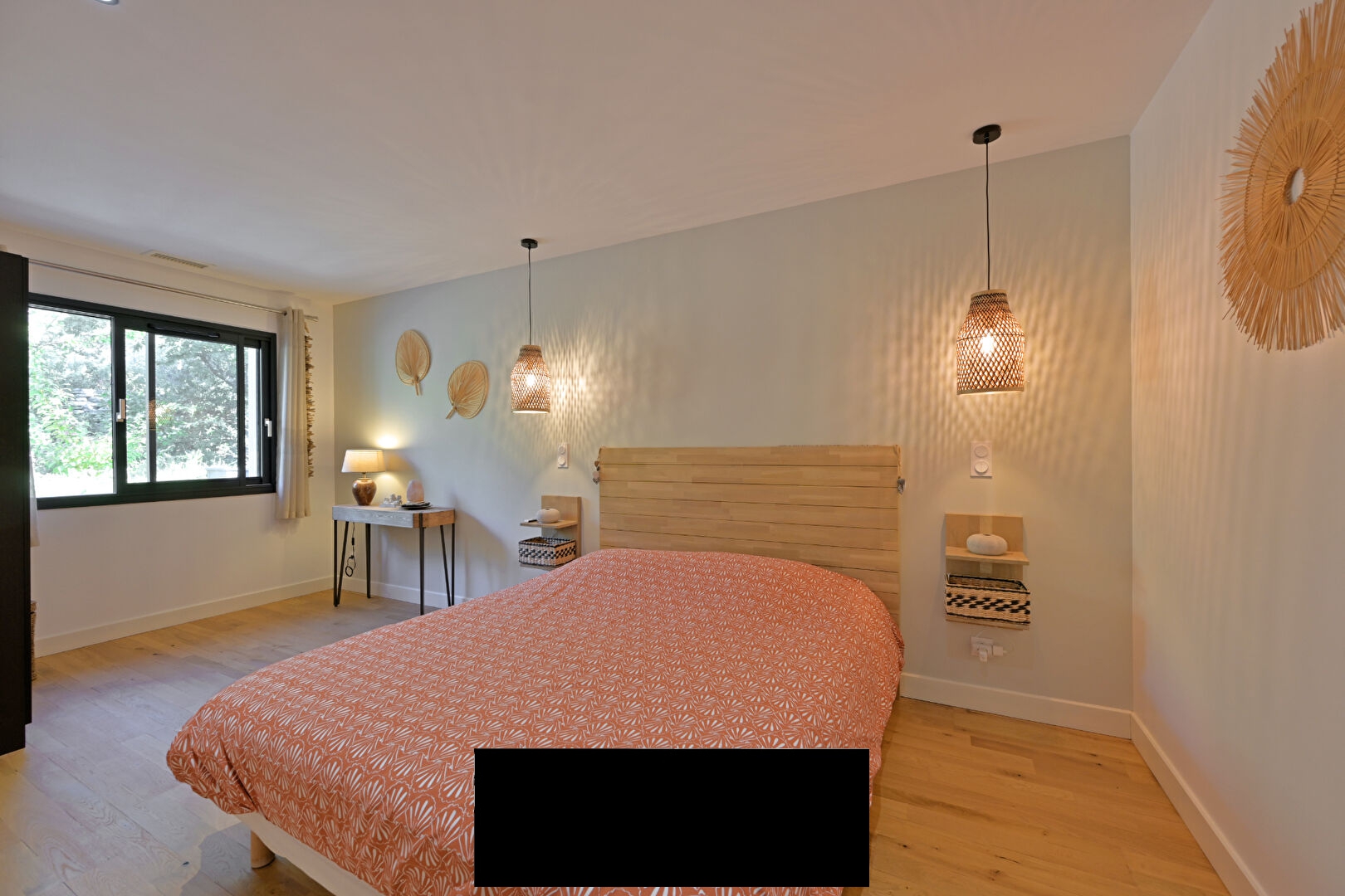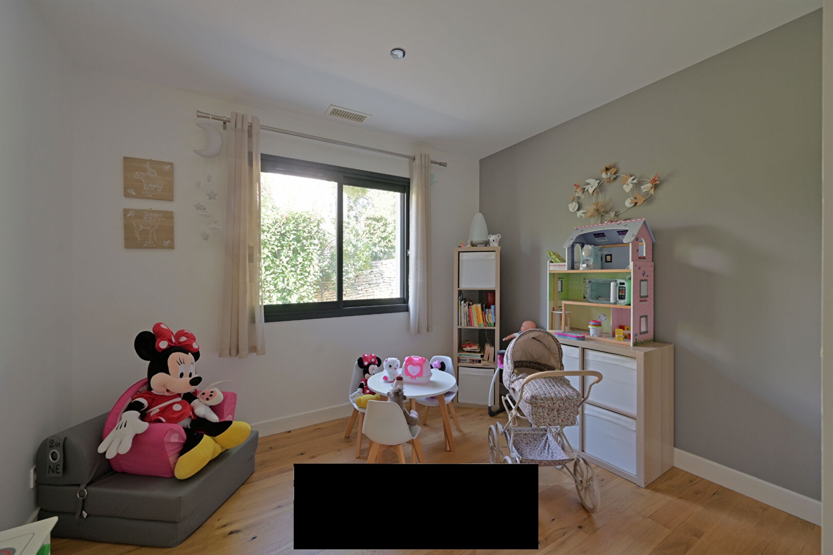 Modern comfort is elegantly integrated: ducted heating and air conditioning, electric roller shutters, fitted wardrobes, solid oak parquet flooring in the bedrooms, pocket doors, videophone, motorized gate… A laundry room, a workshop, a motorcycle garage and a garden shed complete this ensemble that is as functional as it is aesthetic.