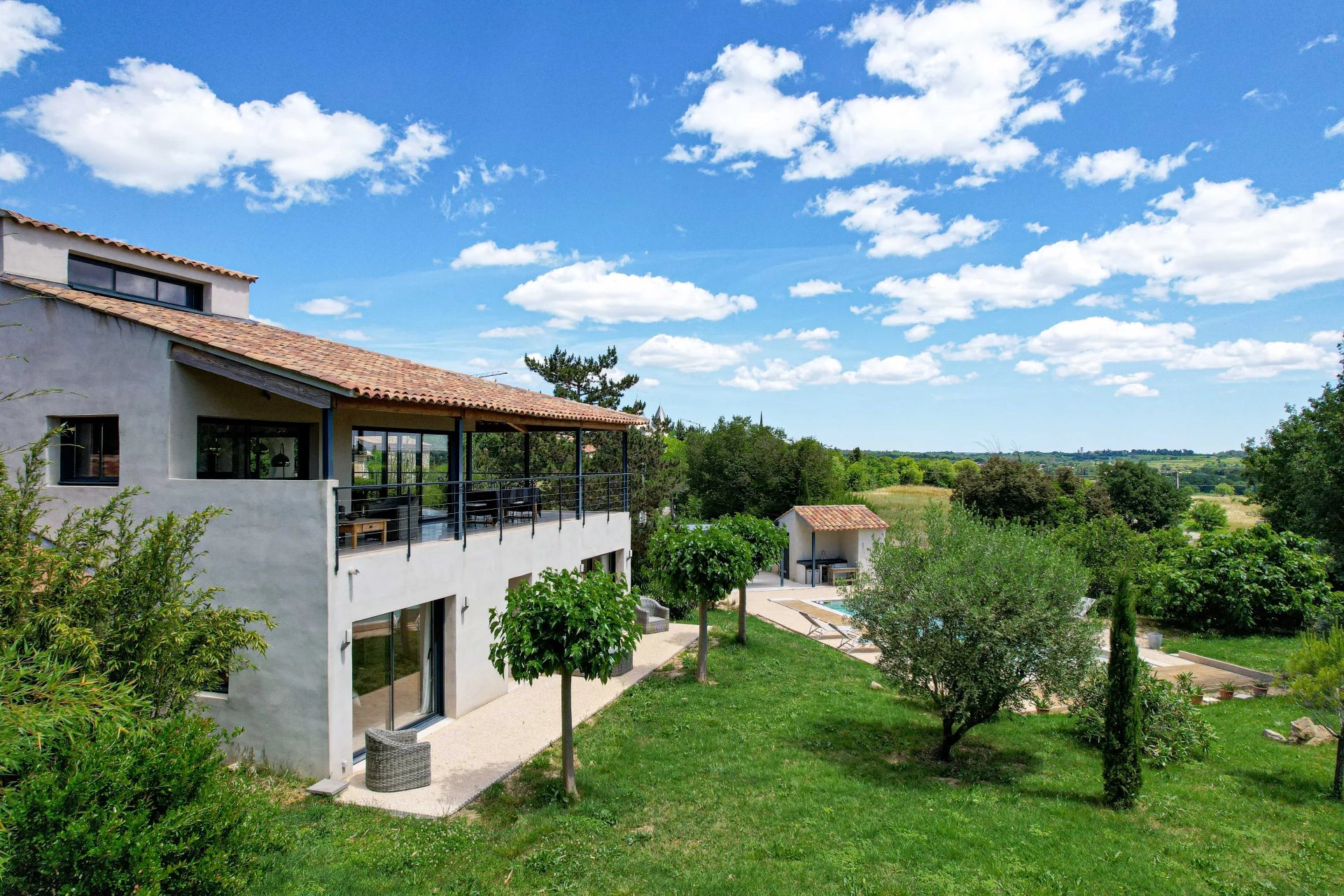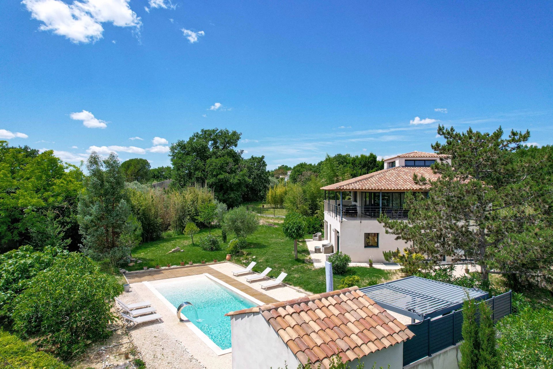 In the heart of a beautiful natural setting and close to the center of an authentic, sought-after village, this contemporary property boasts top-quality features.
