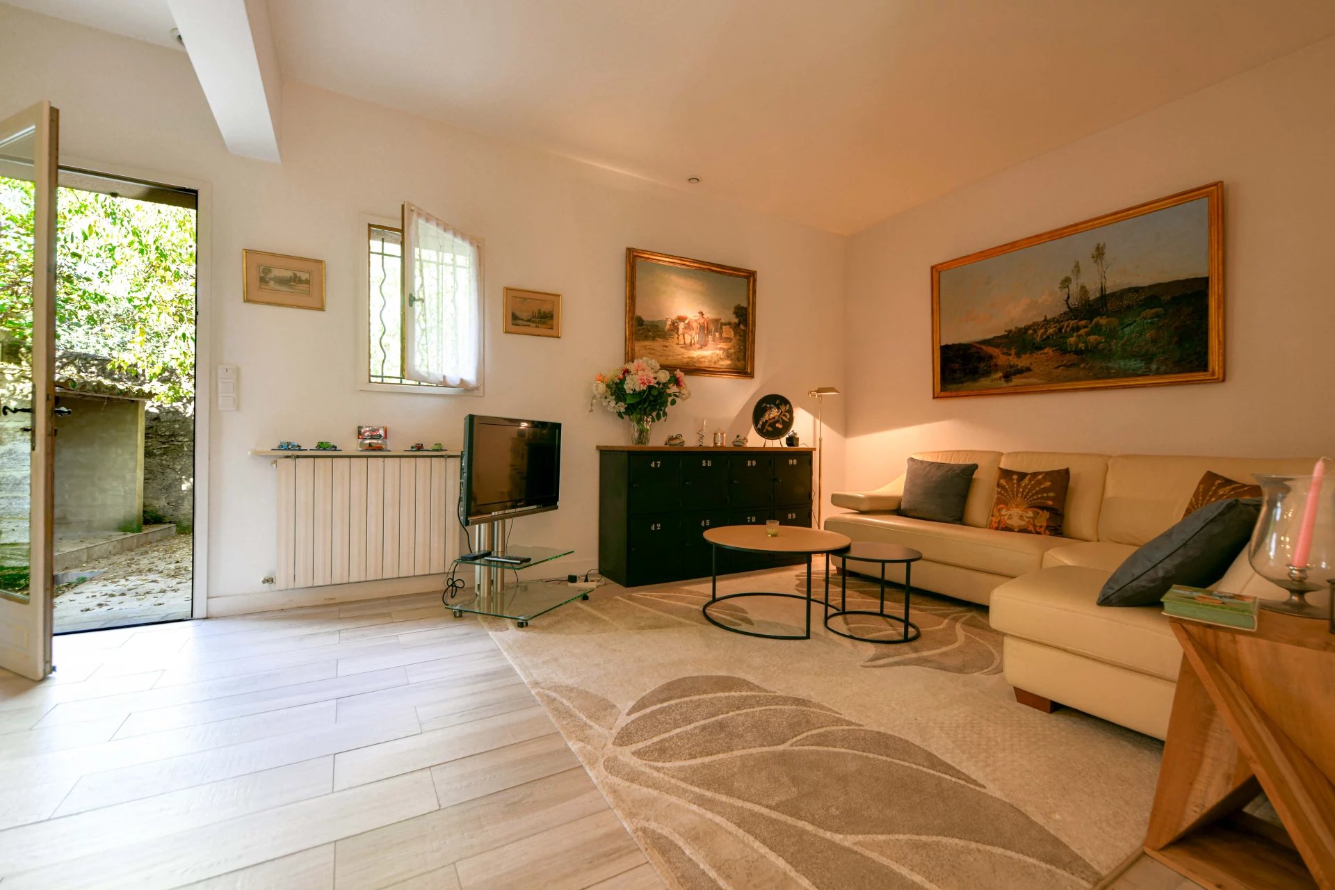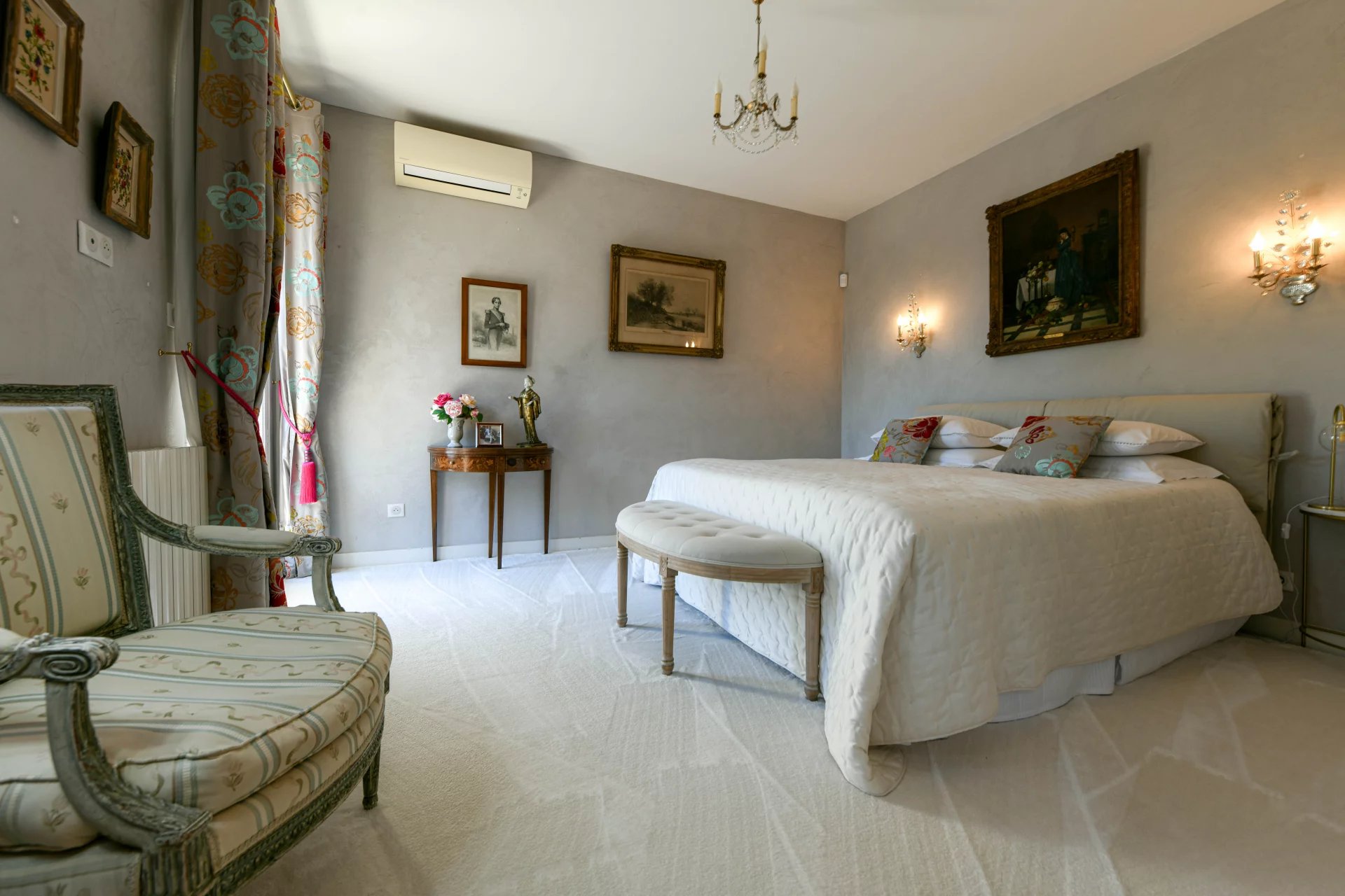 On the ground floor, the entrance hall welcomes you into a 73 m2 reception room comprising a vast lounge, dining room and fitted kitchen. This light-filled room opens out onto the terrace, swimming pool and garden. Utility room and scullery. Then there is a beautiful guest flat comprising a lounge, a fitted kitchen and two superb bedrooms (with direct access to the garden), with storage space and en suite bathrooms. This flat communicates easily with the main property.