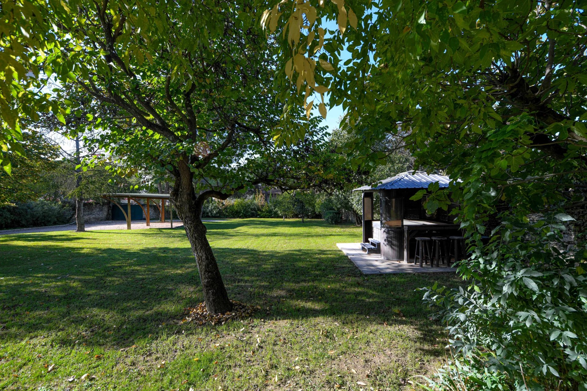 The landscaped garden with its 1,833 m2 of trees offers beautiful views over the Mas. Swimming pool area (8.5 x 4 m). The garden has a stone garden shed, a shed, a well and an underground cellar. Carport and automatic gate.