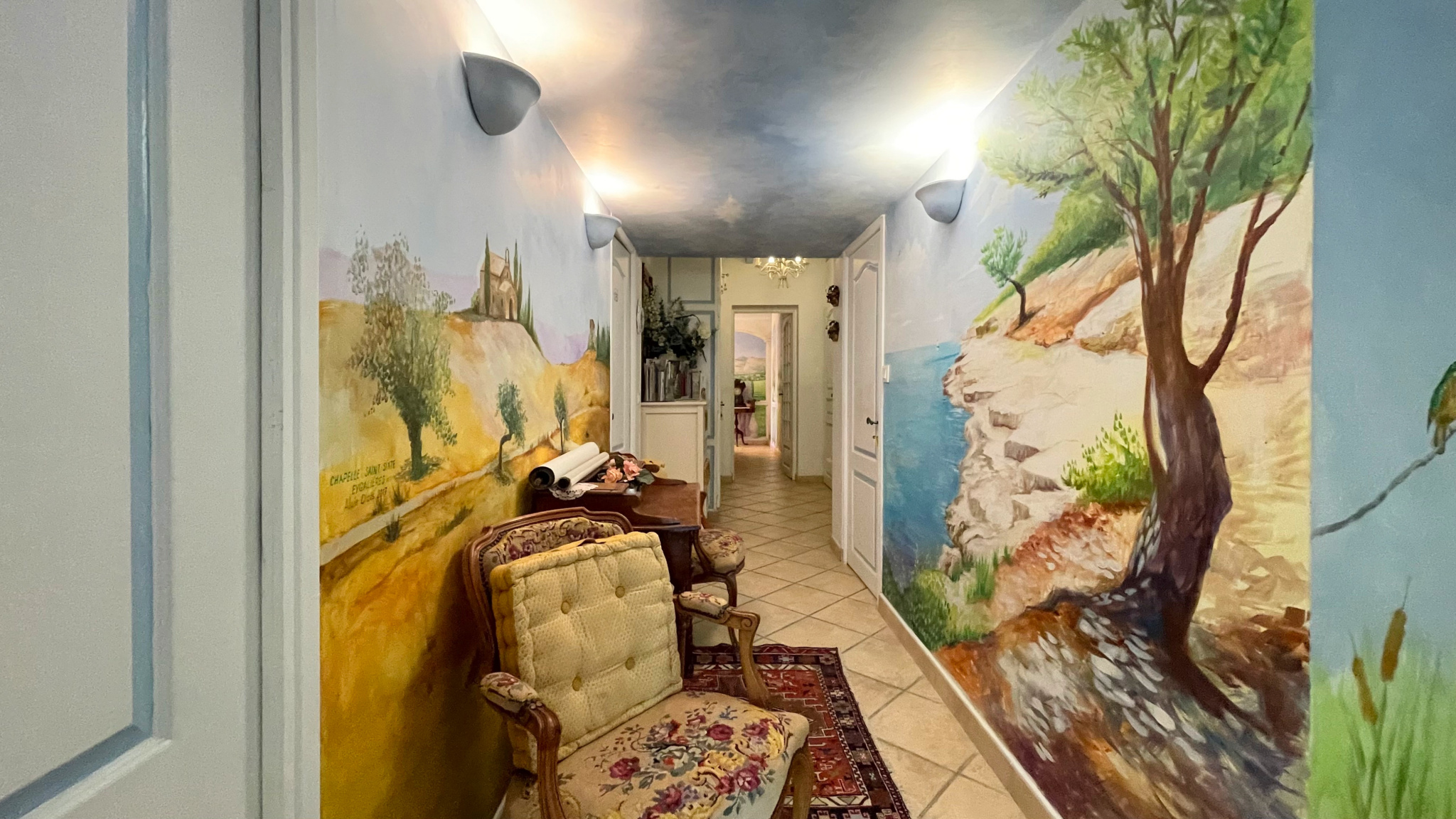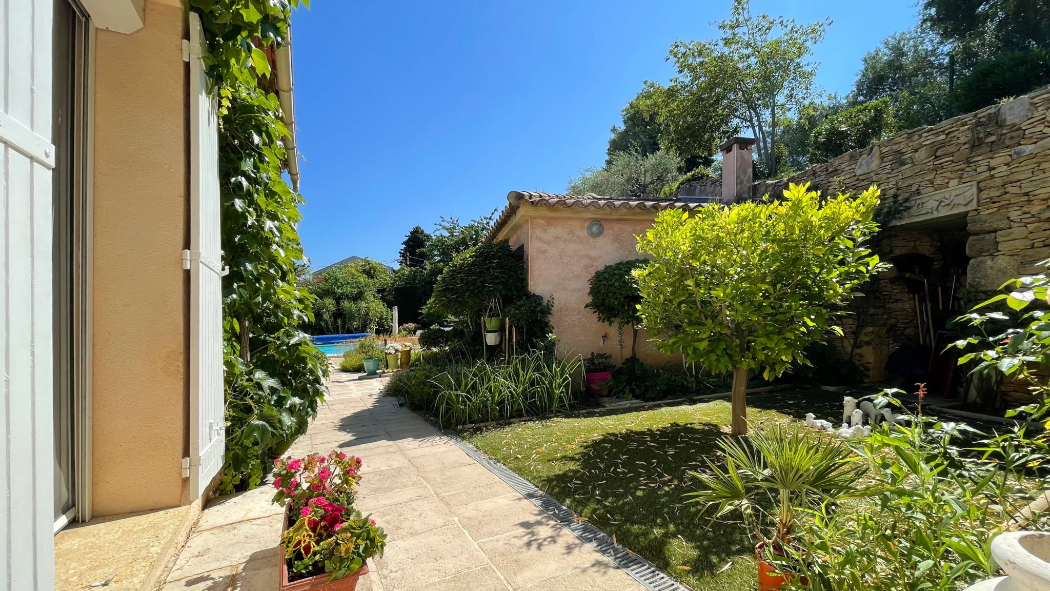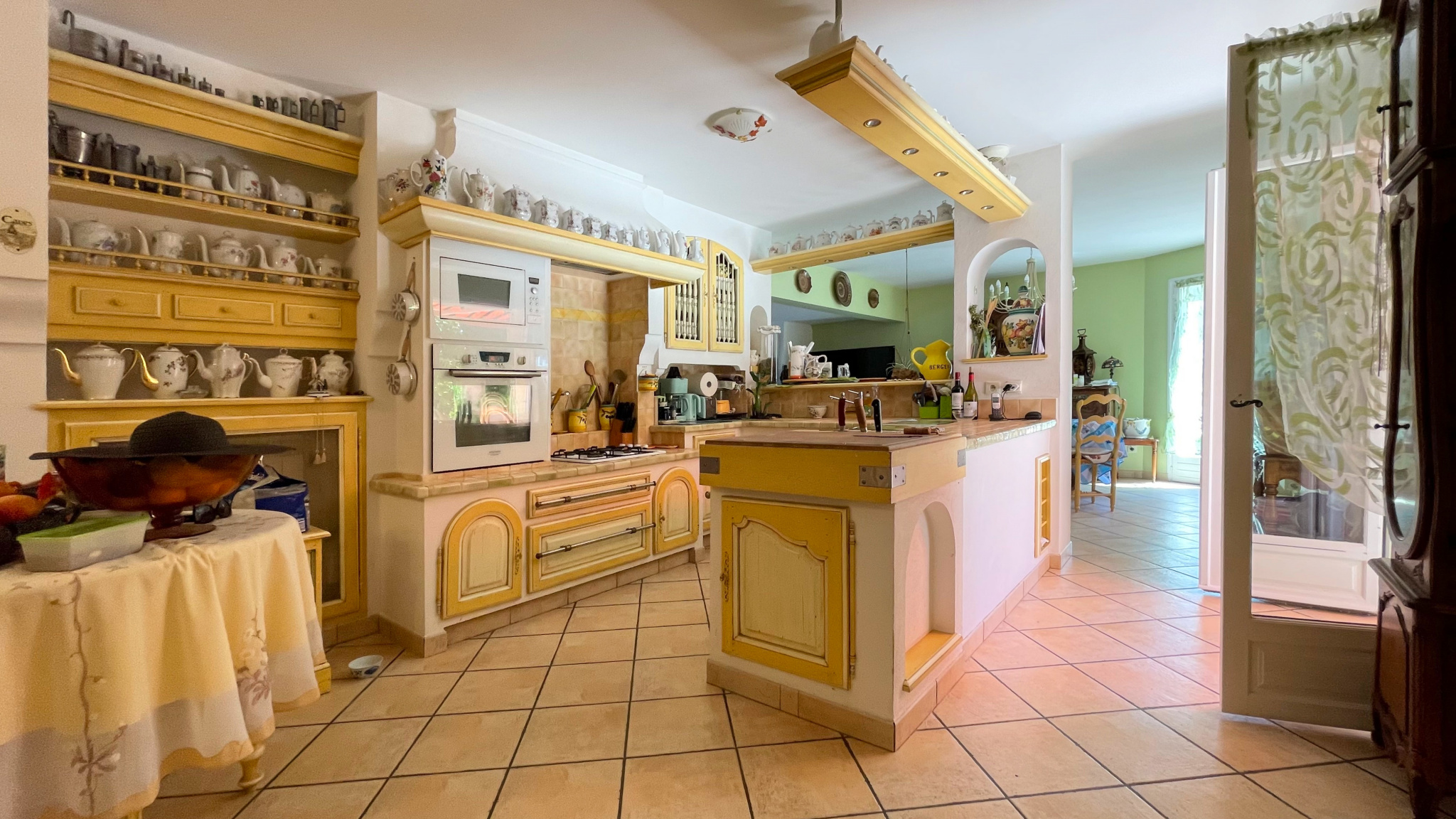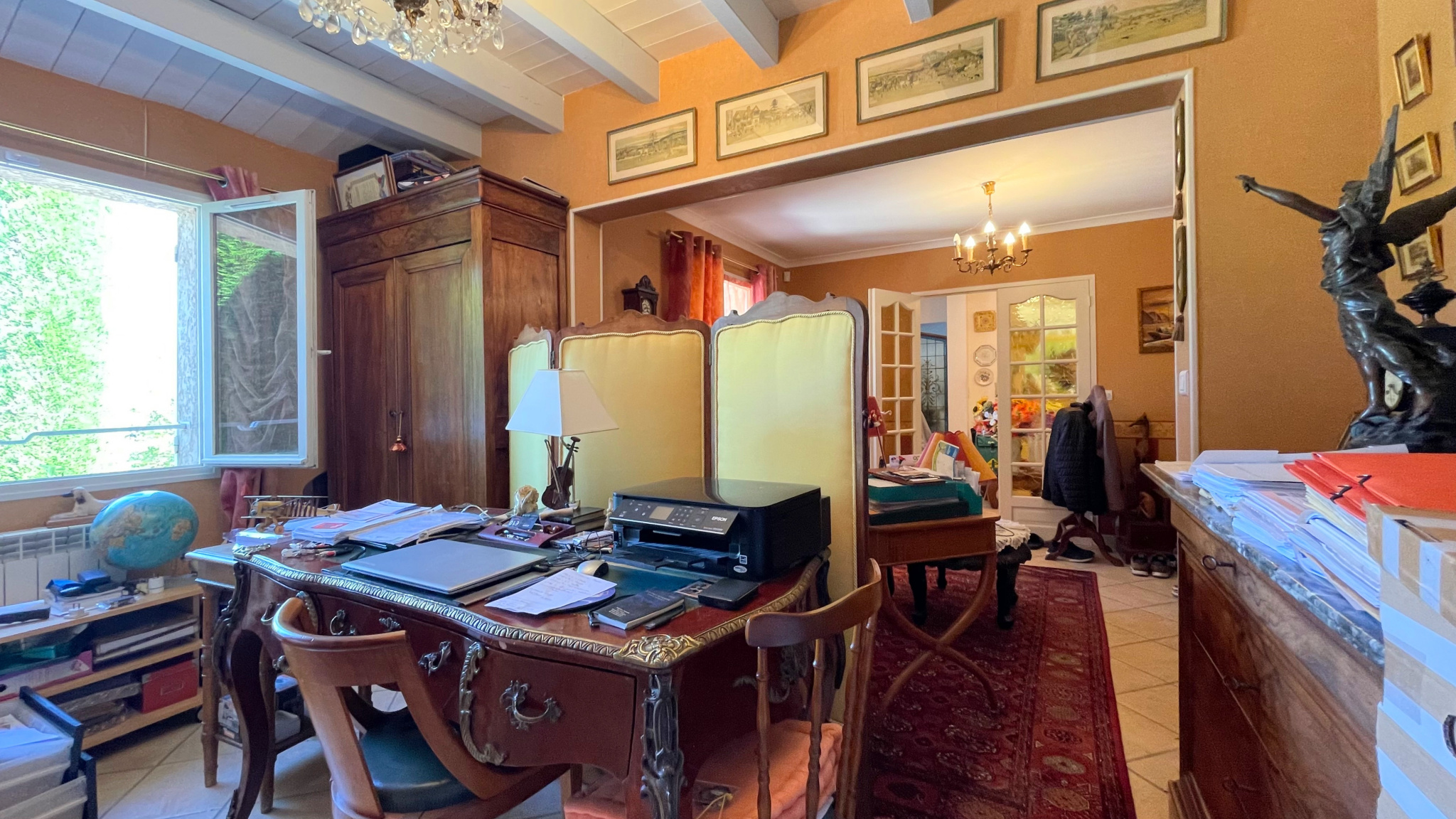 The main part consists of a large entrance hall, a spacious living room with a traditional fireplace, a large equipped Provencal kitchen, the real heart of the house, opening onto the dining room. Oriented East-West, the building benefits from exceptional light throughout the day, with direct access to the garden and exterior terraces from each French window. This part includes a master suite with bathroom, a double office convertible into an additional bedroom, and a second part of the house accessible from the entrance hall, offering a bathroom, two bedrooms with mezzanine, a bedroom en -suite with shower, equipped kitchen, ideal for a gite or to receive loved ones in complete independence.
